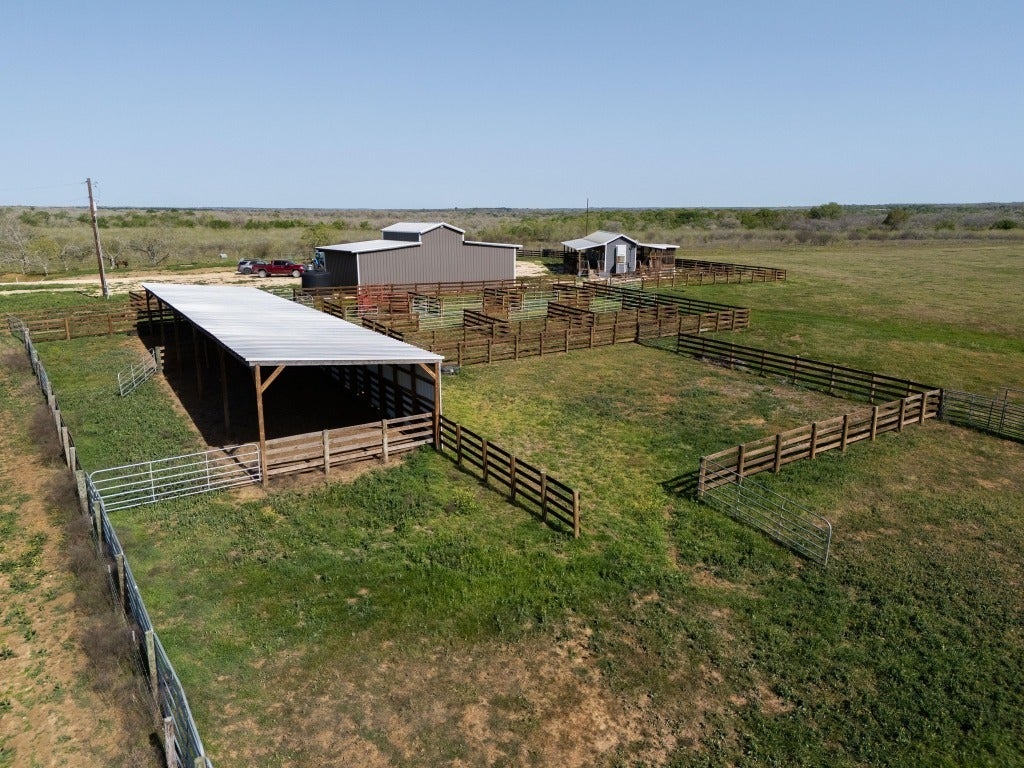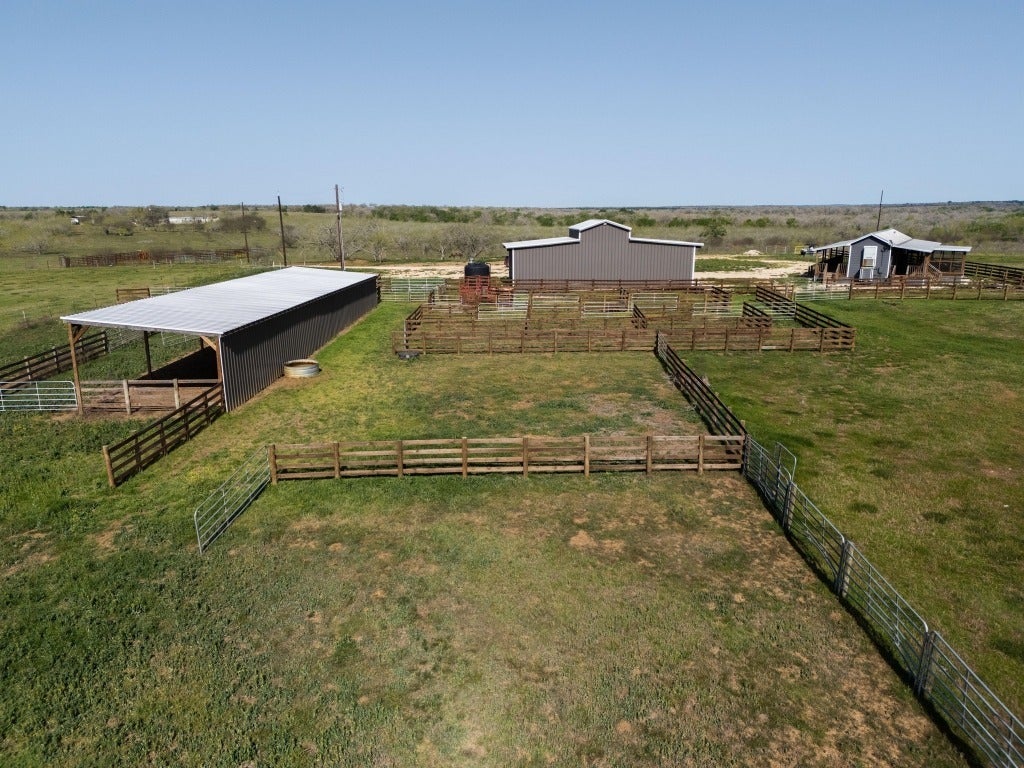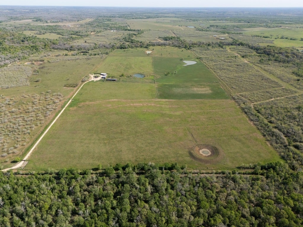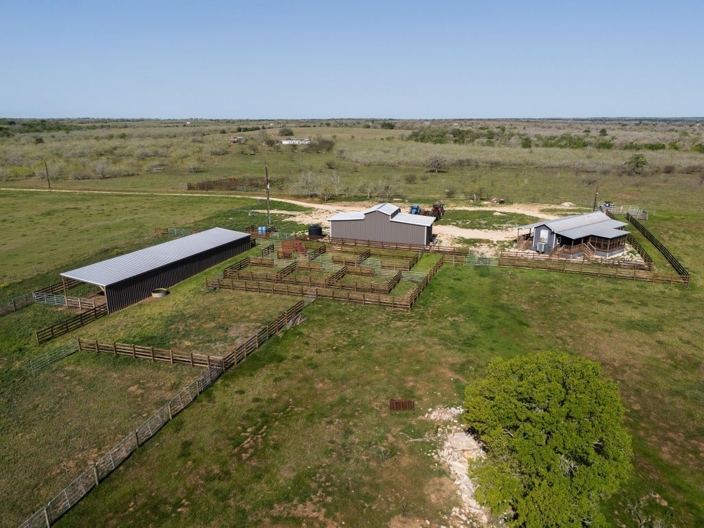 Prime 122.65 Acres in Gonzales County UNRESTRICTED and AG EXEMPT property with stunning panoramic views that has been immaculately maintained as a Longhorn cattle ranch. Conveniently located just 3.5 miles north of Waelder and I-10, this turnkey cattle and hay ranch requires minimal investment to start operations and offers great hunting and recreational opportunities. Farmhouse Perched on a hilltop, the cozy 672 sq ft farmhouse features 2 bedrooms and 1 bathroom. Furnished for convenience, simplicity, and comfort, the screened-in back porch offers breathtaking long-distance views of two ponds and the surrounding countryside. Other Improvements A metal storage building with a concrete foundation provides ample space for equipment, feed, and tools. The property is fully fenced with cross fencing and lanes for easy cattle movement between pastures. Additional features include a loafing shed, corrals for cattle management, and irrigation lines supplying water to each pasture, Tifton hay fields, and five ponds. Land The property boasts varied elevations, from 380 ft at the front to 410 ft at the house, and down to 350 ft at Copperas Creek. This elevation change creates amazing views of the property and the rural countryside. Utilities: • Power: Connected to the house and storage building. • Water: Provided by a well, supplying the house and irrigation system. • Septic: Installed and connected to the house. • Internet: Provided by GVEC. Wildlife The property has abundant wildlife, including white-tailed deer, turkeys, and doves. Location Situated 3.5 miles north of Waelder, the property is: • 60 miles from downtown Austin. • 82 miles from downtown San Antonio. • 123 miles from downtown Houston. Leases There is an existing water lease that will convey with the property. Minerals The sellers plans to reserve all owned minerals