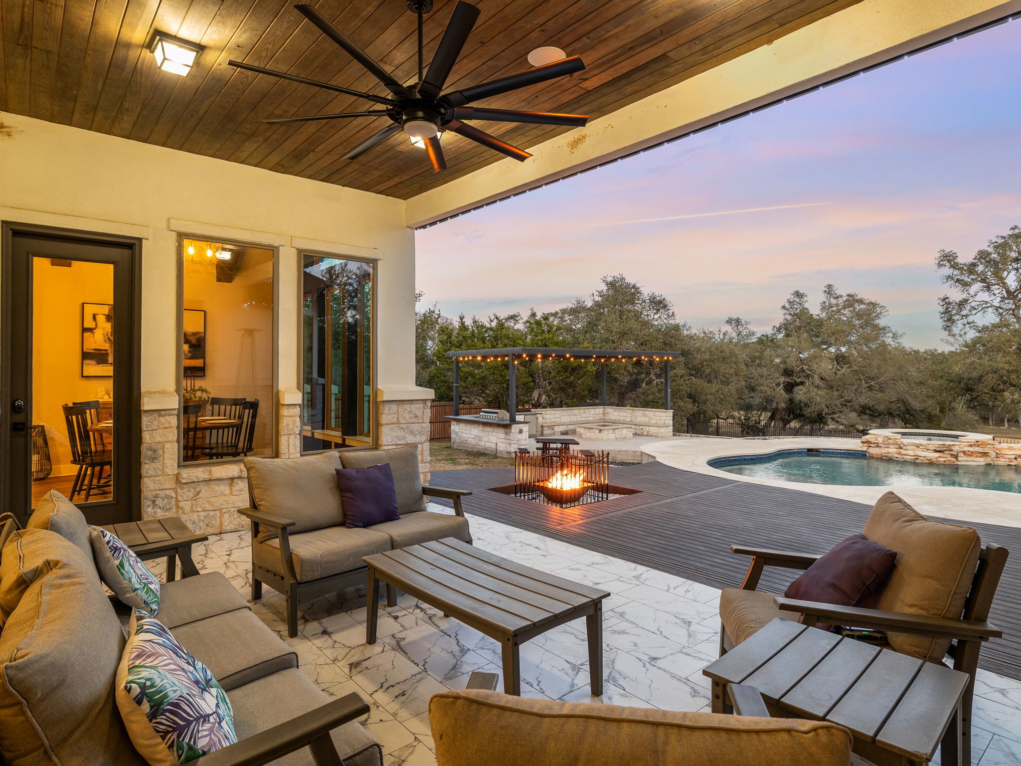 This is a rare opportunity for buyers seeking true Hill Country resort living with privacy, acreage, and turn-key amenities. Located on 3 acres backing to Onion Creek in Ruby Ranch, this estate is designed for elevated entertaining and comfortable family living, offering expansive indoor and outdoor spaces, a chef-ready kitchen, flexible bonus areas, a private office, and a resort-caliber backyard featuring a heated jumbo pool and spa, sports court, pickleball, volleyball, and a fully equipped outdoor kitchen. Ideal for executive buyers, multigenerational households, or discerning clients relocating to the area who want lifestyle, space, and long-term value. Properties of this caliber and setting are rarely available and leave a lasting impression upon arrival. This home is in a secure gated community on a cul-de-sac. A huge bonus, it has an RV pad with electrical hook up. Another great bonus: 3 car garage with A/C and heat. This great property is Located minutes from Driftwood, this resort-style home provides easy access to award-winning wineries, destination BBQ, and boutique shopping in the heart of the Hill Country. This home is owner occupied, please schedule through showing time service. community gate code 2353