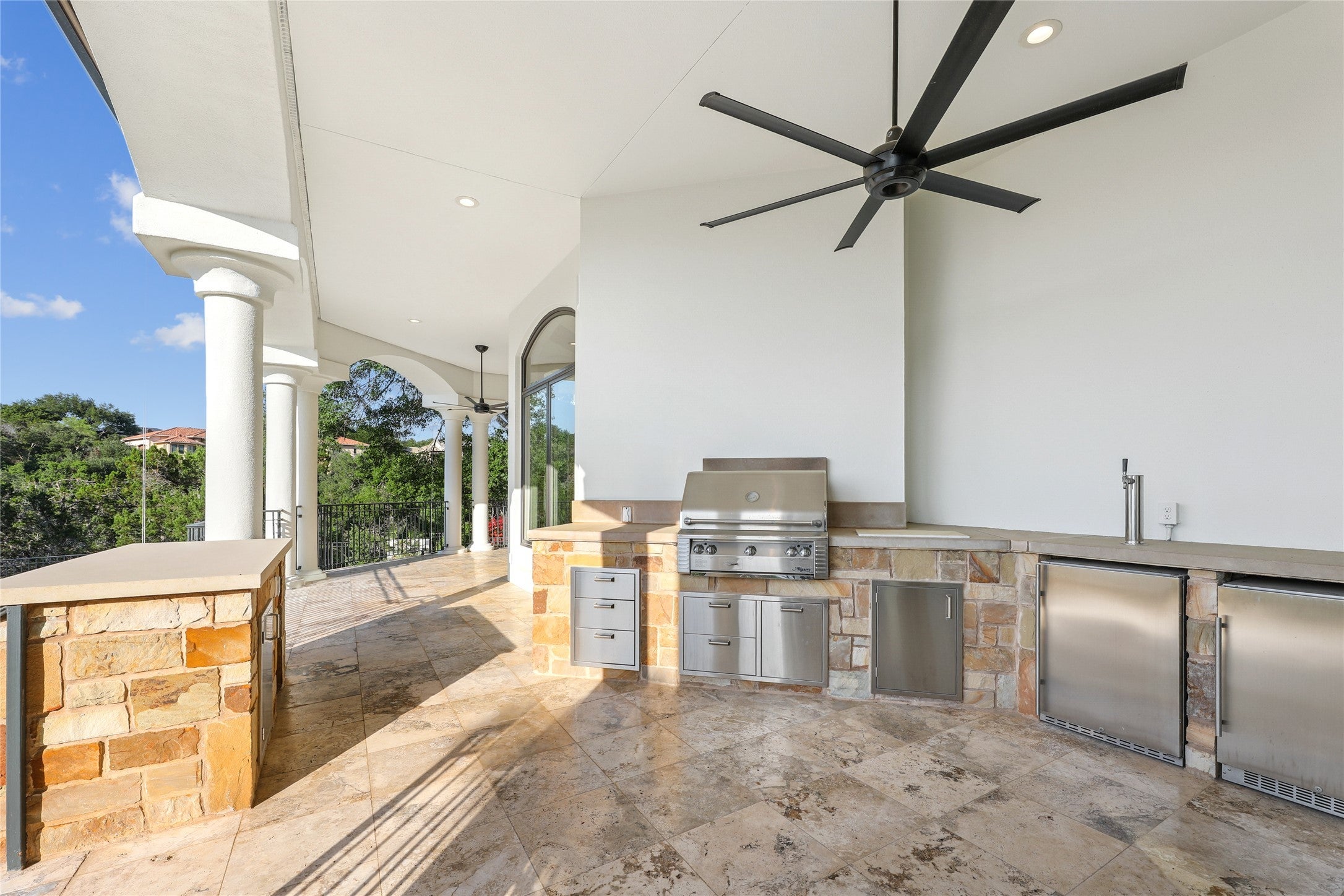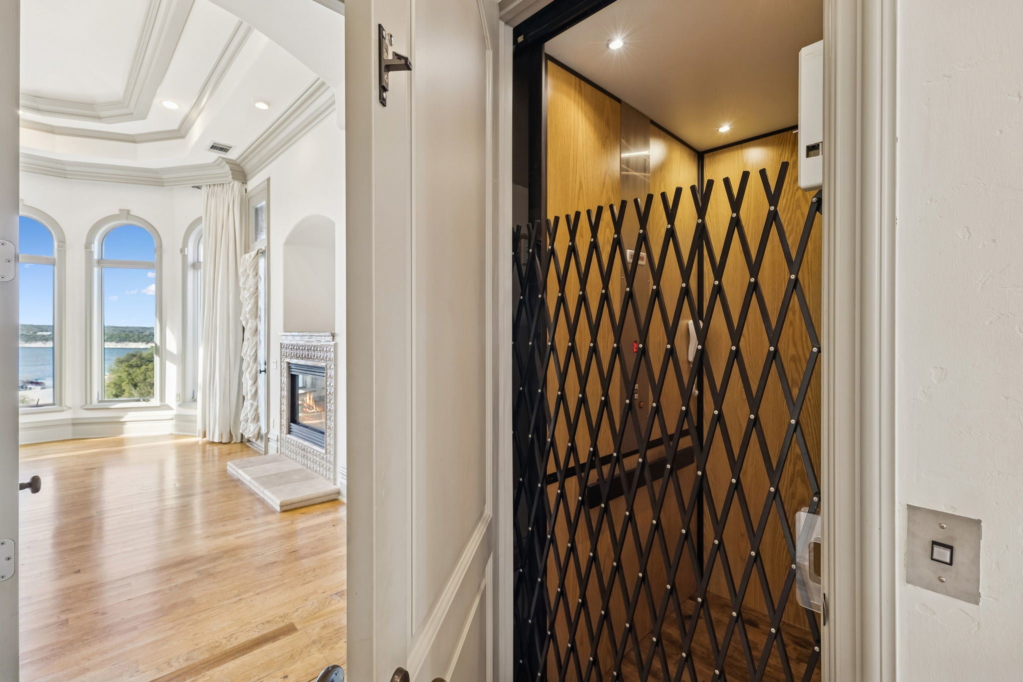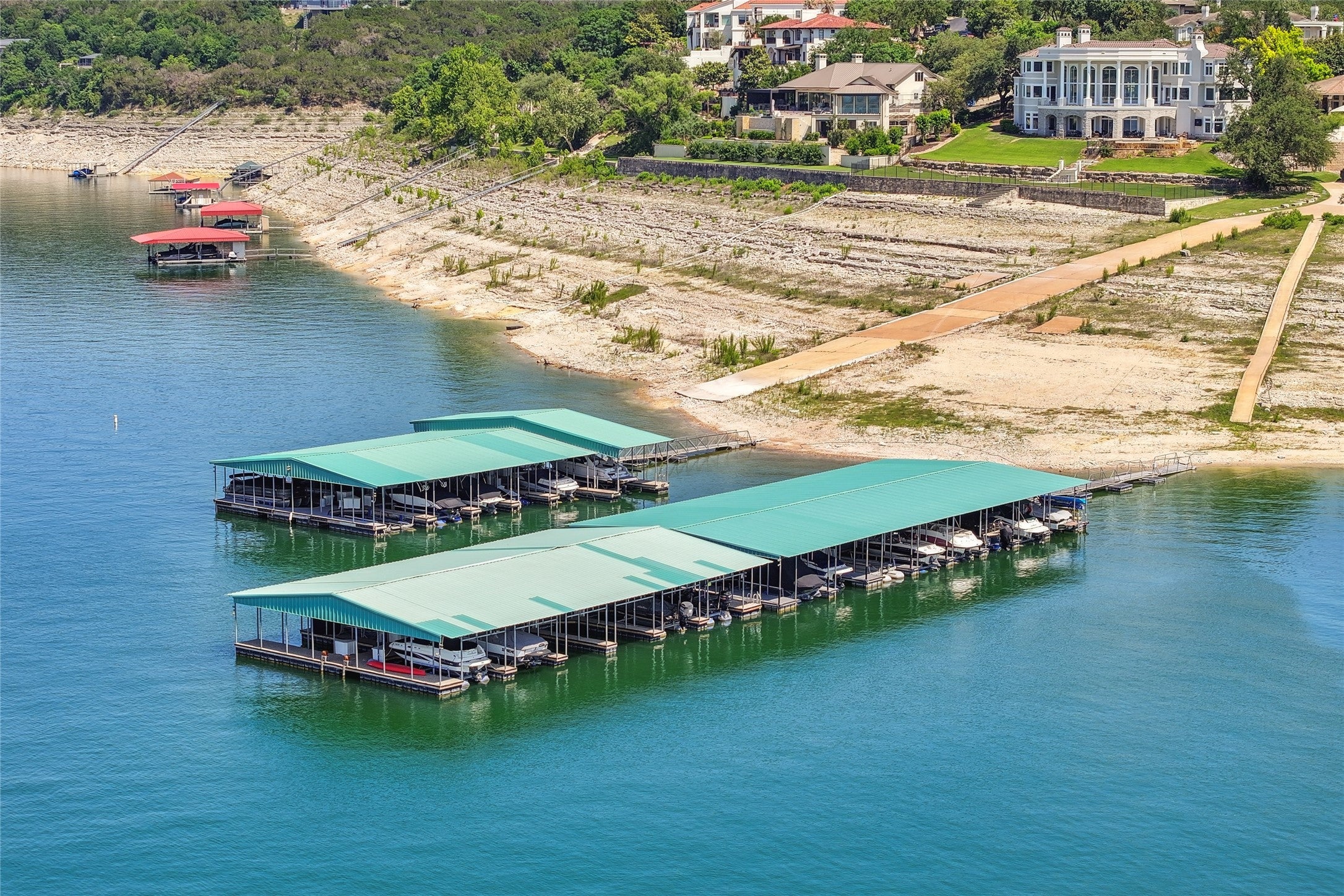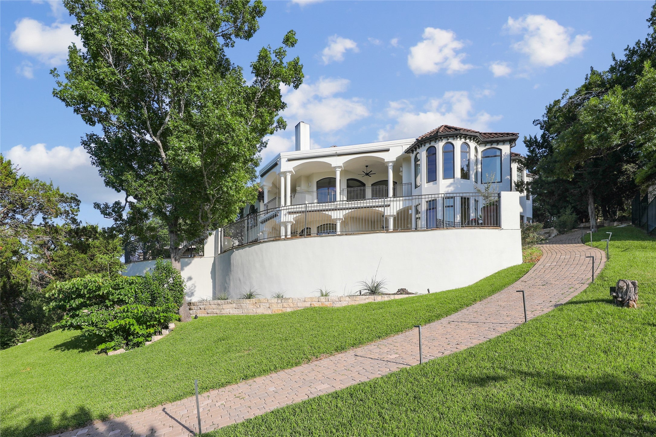 Lakefront Italianate masterpiece with stunning Lake Travis views from almost every room in the house. 1.5 manicured acres within the prestigious Vineyard Bay neighborhood. Old world craftsmanship and an absolute commitment to the architectural vernacular. Beginning with the imposing handmade arched double entry doors, rich and lavish woodwork is woven throughout in the form of custom beams, luxurious crown molding, coved, domed and coffered ceilings... a rich, robust vocabulary that flows from room to room, the warmth of wood subtly juxtaposed against the ‘cool’ elements of the hand plastered walls, travertine floors and marble columns. Similarly the forms expressed throughout the home, each room its own elegant expression brought together into a thoughtful symphony of form and material. Coved, barrel vault and domed ceilings, multi-level tray ceilings framed with intricate crown moldings, coffered and beamed, each its own unique, intimate experience yet seamlessly part of the whole. Designed to be a true multi-modal, multi-generational lifestyle home. Completely viable independent living quarters on both floors with easy elevator access including two kitchens, living rooms and dining rooms, each with a full length veranda overlooking the lake and poolscape. Amenities abound - enjoy an afternoon on the sun soaked pool and pool deck, spend the day on Lake Travis via your private boat slip, hike down the lighted trail through the woods to the waterfront, enjoy prodigious sunsets over the lake from the expansive colonnaded double balcony, gather in the theater room for movie night or with friends and neighbors at the community clubhouse. The primary suite boasts spectacular lake views and double ensuite bathrooms. Stately home office. Wine room. Thermador appliances. Must-see elegant lakefront lifestyle estate in one of Lakeway’s premiere neighborhoods.