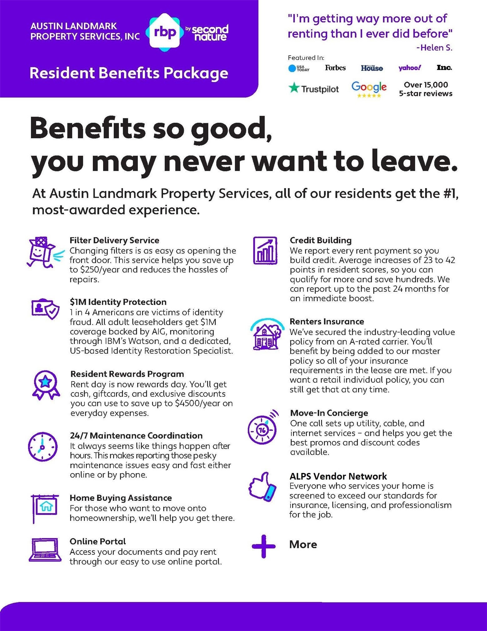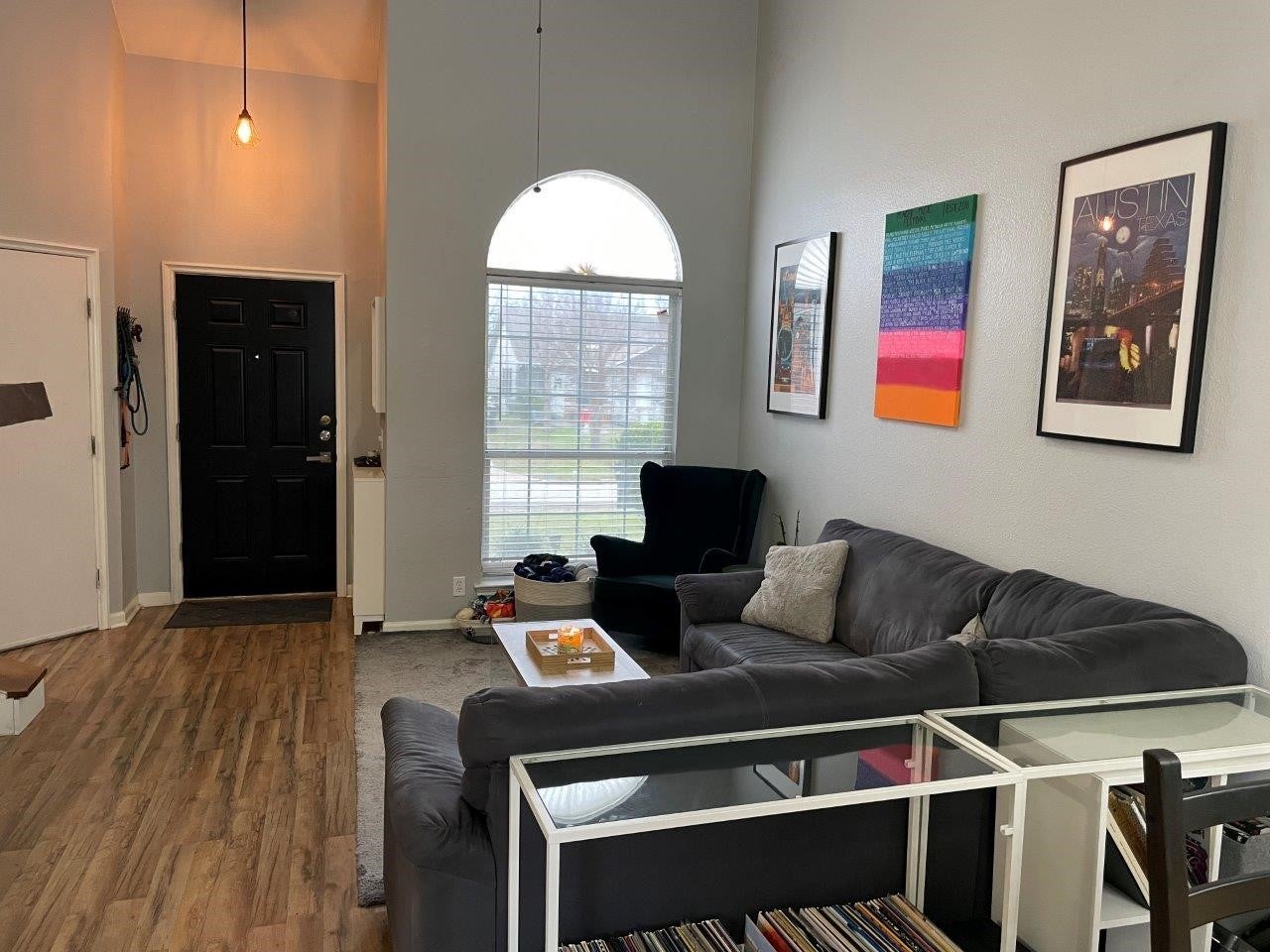 Cheerful 2 story home with a loft! This home has lots of open space and natural light coming through. The kitchen has beautiful butcher block counters and a view of the garden/yard area. The dining room is open to the main living room which has a fireplace. Down the main hall is the primary bedroom, half bath/powder room in hall, and laundry area. Up the stairs is a nice open loft area with closet, 2 bedrooms and a full bathroom. The garage features 2 car parking, and 2 more driveway parking spaces outside. Conveniently located 13 minutes from ABIA and 13 minutes to downtown with easy access to 290 E, I35, and 183. Quiet, private, established neighborhood with mature trees. Easy maintenance landscape with privacy trellises/vines and a peach tree that fruits in the summer. All leases will be enrolled in the ALPS Resident Benefit Program at a cost of $45.95/month. Details can be found on the picture/brochure included.