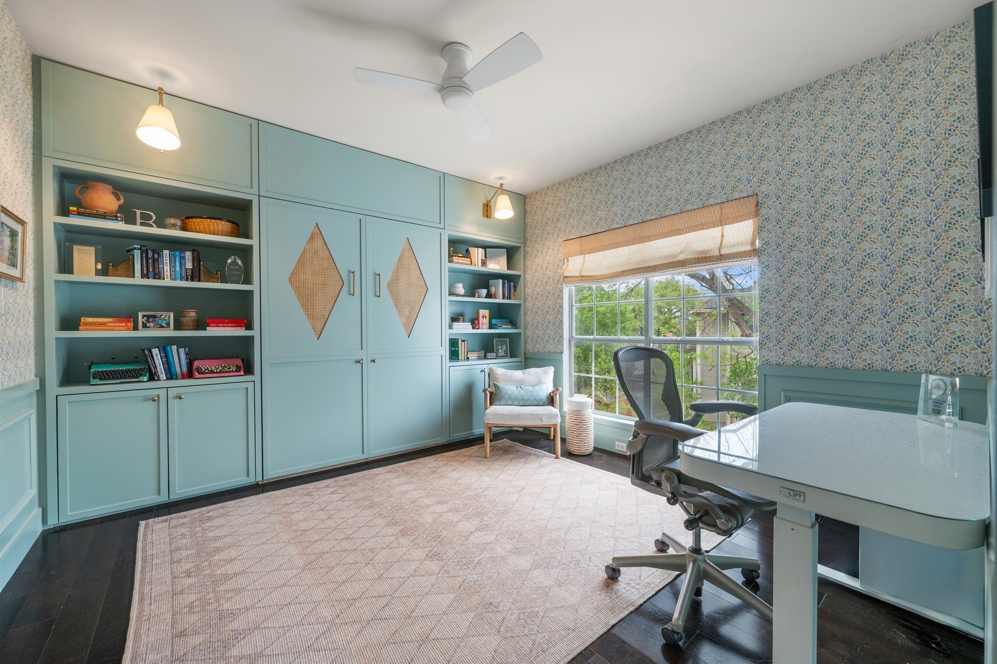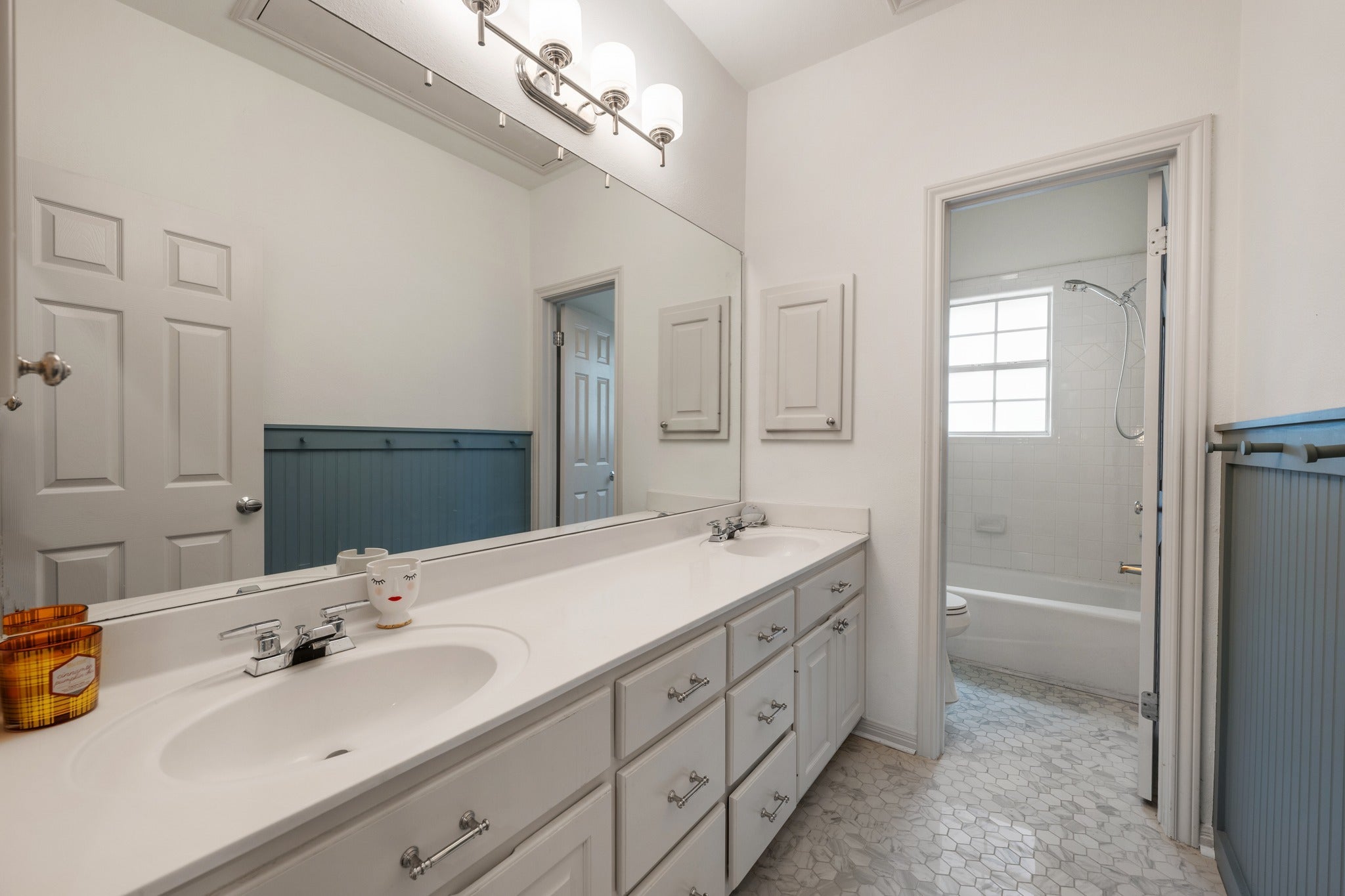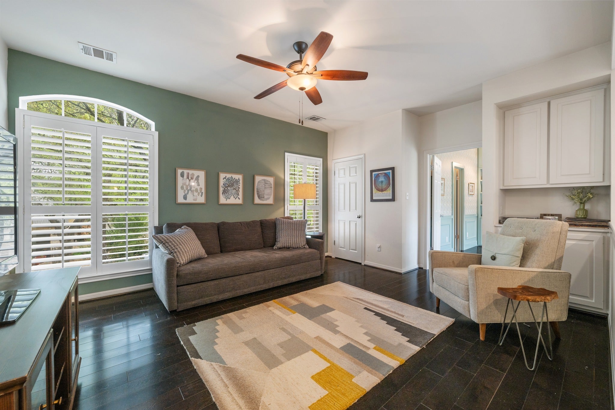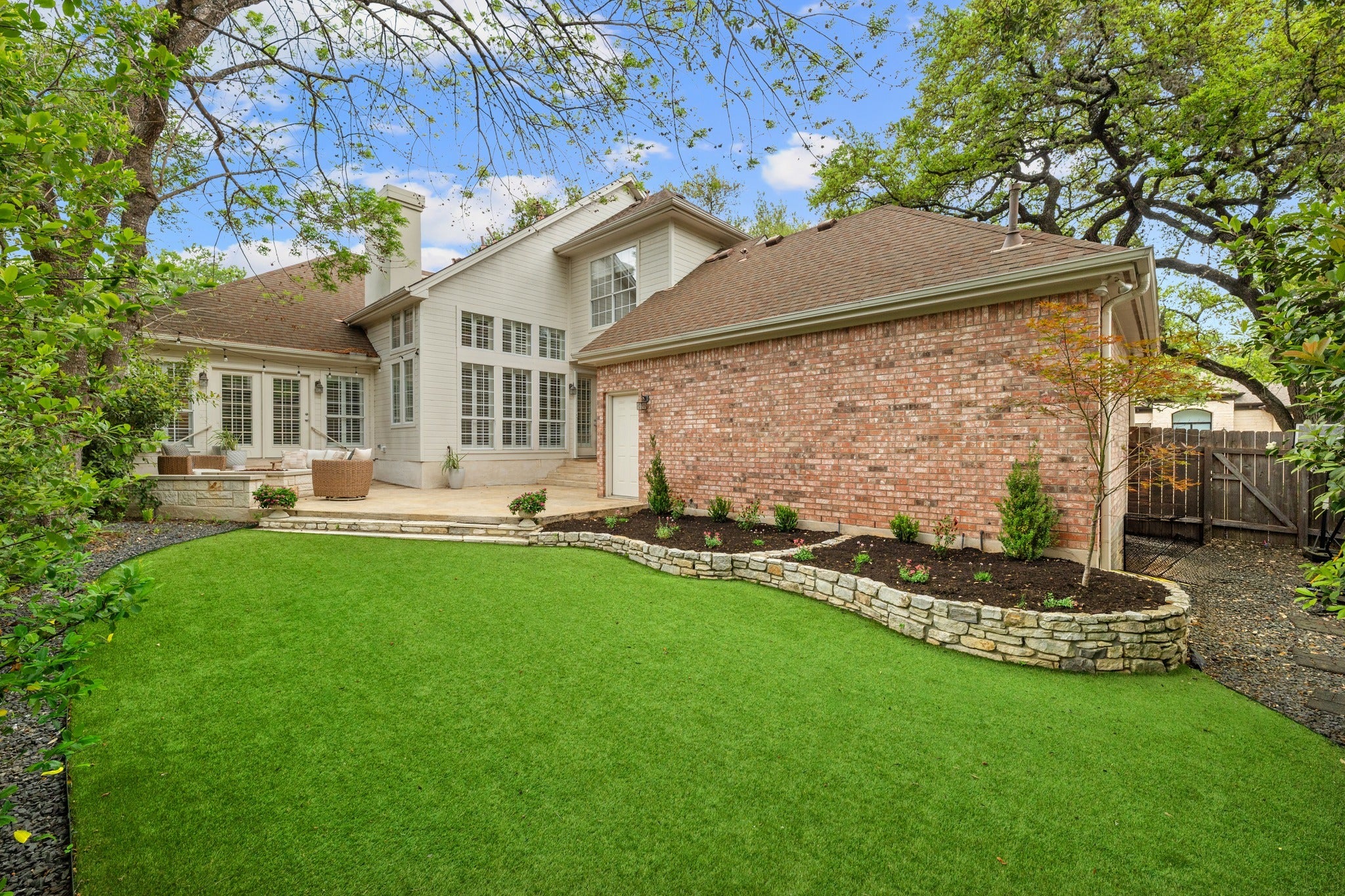 Rare opportunity to own a home in The Courtyard!. Located on the corner of a quiet cul-de-sac, 5909 Inter Council Cove offers ~3600 square feet of well-designed living space with 4 bedrooms and 3.5 bathrooms. The home has been well maintained and features a functional layout with recessed lighting, wood floors, modern tile, and a central living area anchored by a fireplace. The primary suite is located on the main level and includes a fully renovated bathroom with modern finishes, dual closets, a soaking tub, and a separate walk-in shower. Upstairs offers three additional bedrooms and a family room or second living space, including one bedroom with a Murphy bed and en suite bathroom that allows it to function as both a guest room and an office. The backyard has been improved with turf for low-maintenance outdoor living and includes a fenced yard with space to relax or entertain. Walking distance to Bull Creek and the gated neighborhood park, playground, nature trails, picnic/bbq areas, and water access to Lake Austin with kayak storage and launch. Zoned to highly ranked schools, this home offers a move-in ready option in one of Austin’s most coveted communities.