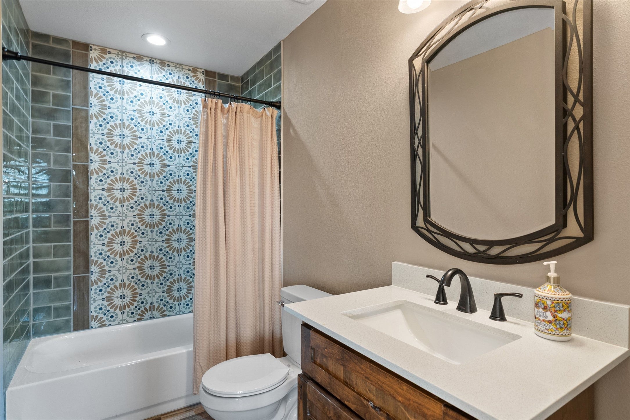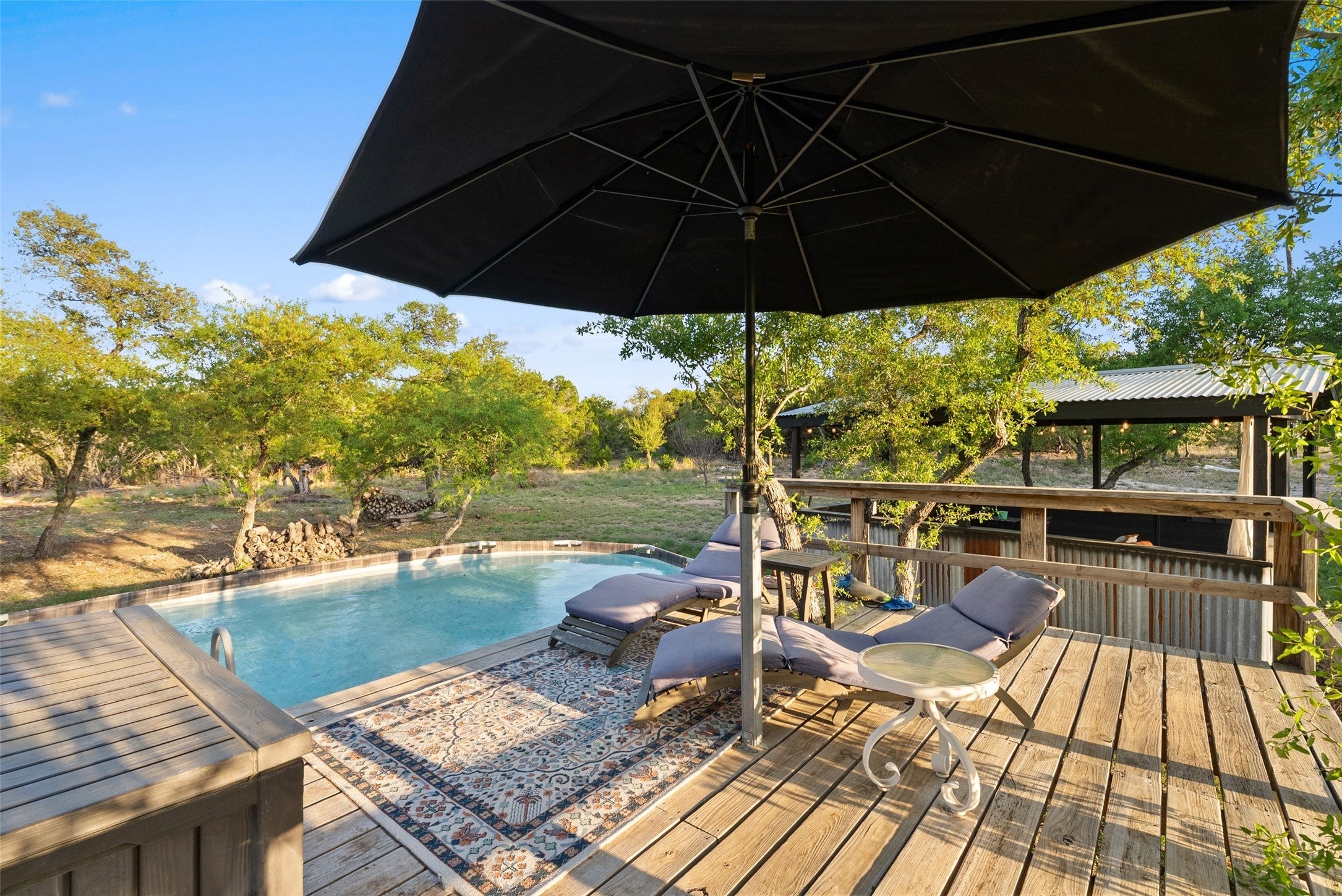Set across 10 scenic acres in Dripping Springs, this ranchette offers a rare blend of privacy, versatility, & panoramic Hill Country views. Tucked away on a private drive, this peaceful setting captures breathtaking sunsets, star-filled skies, & long-range views toward Reimers Ranch, with a 300+ acre conservancy behind the property. The main residence features an open-concept kitchen/living/dining area and covered front porch to take in sweeping views. The main home includes 2 BDRMs/2 baths, plus a flex room currently used as a gym, along with a 2-car garage. A separate entrance leads to a spacious garage apartment with a living area, wet bar/kitchenette, bedroom, full bath, & an additional room ideal for a study or private retreat. Originally designed to function as two Airbnb units, the layout offers strong income potential or multigenerational flexibility. Multiple expansion opportunities are already in place. A slab at the main house allows for future additions such as a covered porch, outdoor kitchen, screened-in living area, or expanded primary BDRM walk-in closet. A standout feature is the ±3,000 sq ft shop with six garage bays & soaring ceilings—ideal for car enthusiasts, hobbyists, or those needing significant workspace or storage. The workshop slab may provide a head start for someone wanting to build a main home adjacent to the current home. Additional improvements include a storage cabin, chicken coops, fruit trees, well water, & spigots extending to the road. The land is flat, usable, & partially fenced. Located 5–10 minutes from Hamilton Pool, Westcave Outdoor Discovery Center, & Reimers Ranch for swimming, hiking, horseback riding & rock climbing adventures & ~45 minutes to Austin, Johnson City, & Marble Falls. Enjoy the rare benefit of school choice between Lake Travis ISD & Dripping Springs ISD. Whether a private retreat, income-producing property, or long-term investment, this Hill Country offering delivers space, views, & flexibility.