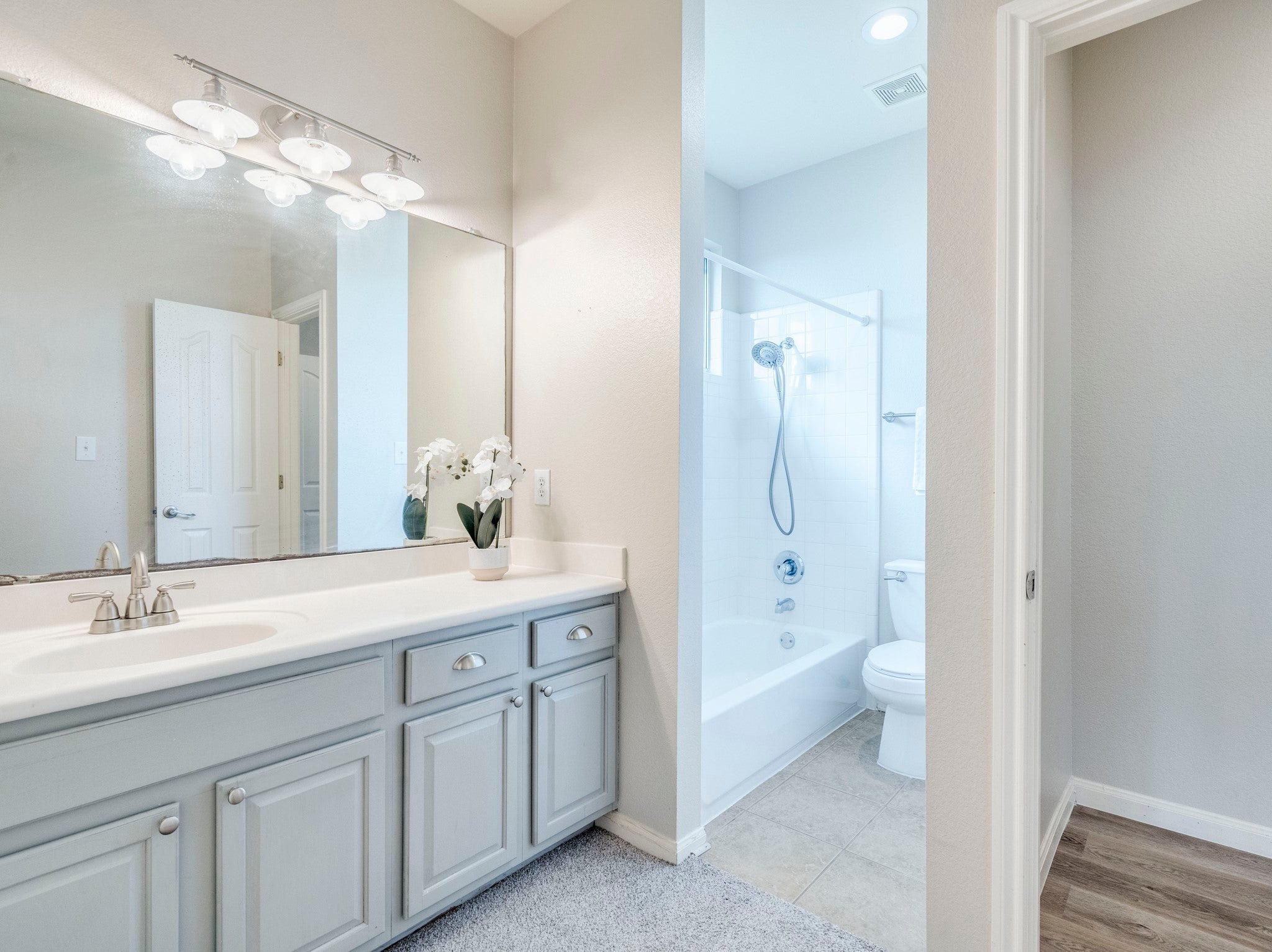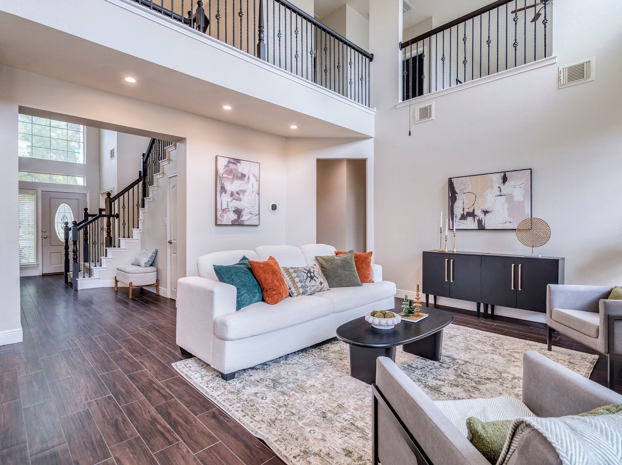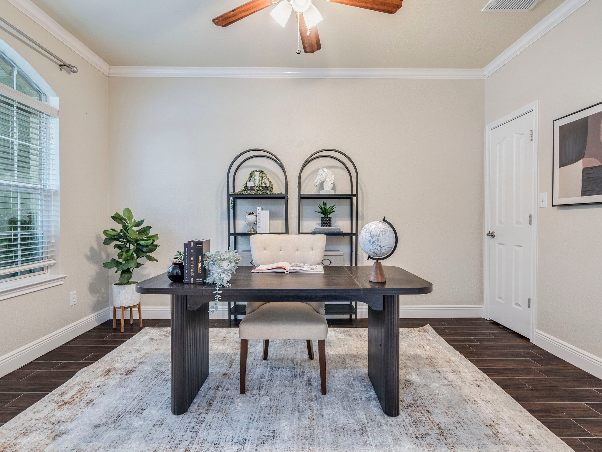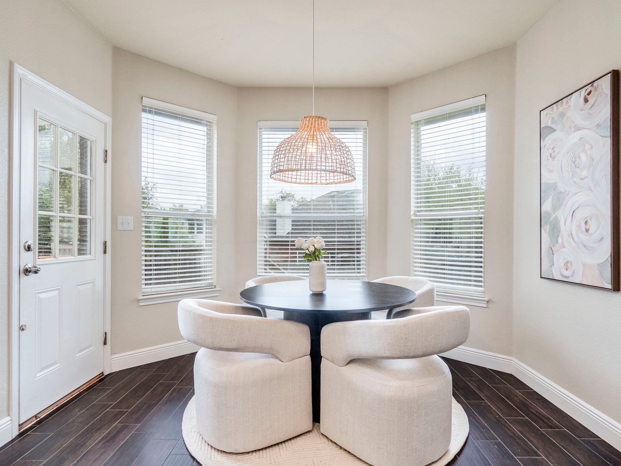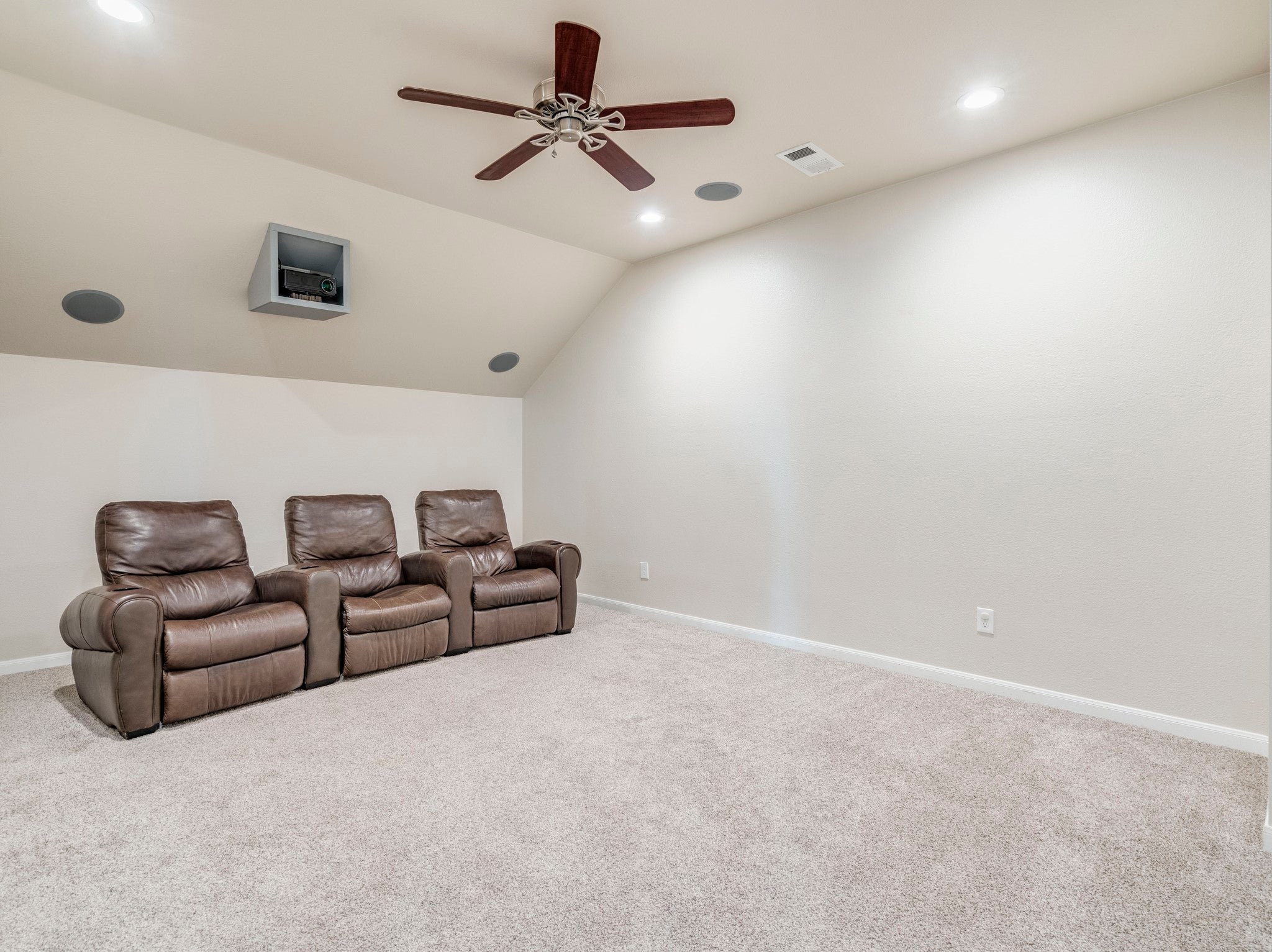 Located in highly sought-after Steiner Ranch, this stunning home sits on a spacious corner lot and offers exceptional curb appeal with brick & stone exterior and low-maintenance landscaping. The two-story entry, filled with natural light from the window above, opens to the sitting area & formal dining, and a dedicated office with French doors - all with tall baseboards and crown molding. Further in you’ll find the two-story living which is open to the kitchen & breakfast area, creating a bright and open never-miss-a-moment floorplan. The kitchen has been thoughtfully updated with sleek black granite countertops, white cabinetry, glass subway backsplash, SS appliances, double ovens, transom windows, ample storage & an eat-up island, perfect for gathering. The spacious breakfast area boasts a bay window & back deck access, while the white stone fireplace with custom mantle in the living area creates a warm and inviting vibe. The main level is further enhanced by low-maintenance wood tile flooring, & a plethora of natural light. Just off the living area, the primary suite offers a relaxing retreat with generous space and a cozy feel, an en-suite bath with dual vanities, soaking tub, separate shower, and a walk-in closet. Upstairs, 3 additional bedrooms and two full baths (one of which is a jack & jill) - plus both a game room and media room with wall and ceiling speakers, offering endless possibilities for entertainment, hobbies, or relaxation. Outside, enjoy an elevated and oversized deck with plenty of space for grilling and chilling - plus ample space for kicking a ball, building a pool or soaking in the sunshine. Steiner Ranch offers unbeatable neighborhood amenities including three neighborhood parks/pools, sports courts, over 20 miles of interconnected hiking and biking paths throughout the neighborhood, Lake Austin access, numerous community events and ample access to dining and grocery needs. Become a part of this dynamic community today - you’ll love it here!