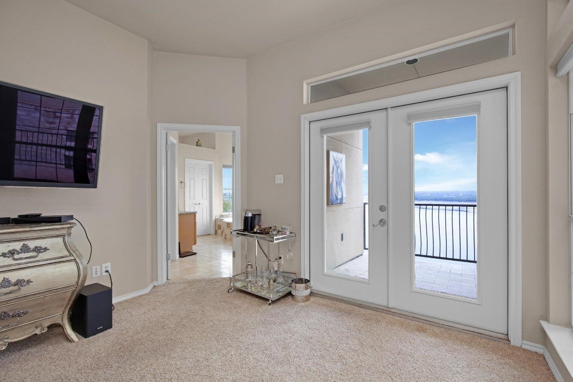 Great Upscale resort-style living in gated community on Lake Travis. Immaculate, updated condo with recent heater handler & duct system, AC condenser, 50 gallon water/heater, frameless MBR shower doors, high ceilings, granite countertops. First level entry with reserved parking in front.Over . Amazing community with 2 pools, sport and tennis courts, fitness center and day dock. Enjoy the amazing sun sets on Lake from covered patio. On site security and property management.