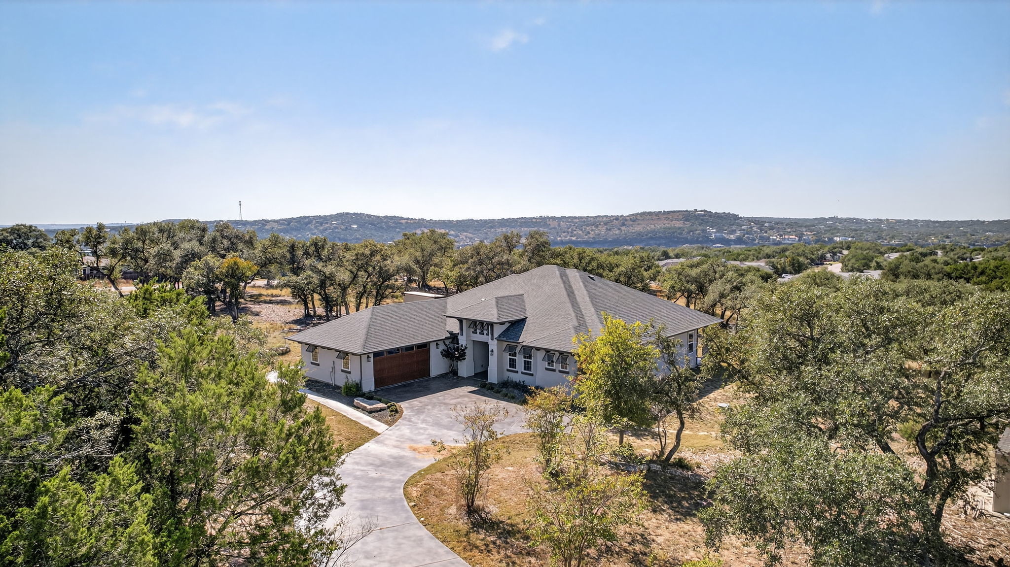 A luxury lake home on 3.6 acres of R4 zoned land steps from Lake Travis. This doesn't exist in Lago Vista. Until now. 21603 Thomas Cove is a custom four-bedroom, three-bath build with 12-foot ceilings, floor-to-ceiling Lake Travis and Hill Country views, and a covered outdoor kitchen that makes the outdoors the best room in the house. Single-level, 2,445 square feet, finished to a standard that competes with anything new on the water. The two contiguous parcels total 3.6 flat, cleared acres with utilities in place and R4 multifamily zoning on both. What that means practically: a guest house or in-law suite with its own entrance. A barn or workshop compound. A second home generating Lake Travis rental income that services your mortgage. Or a third. Develop the front acreage thoughtfully and this home costs you nothing — the land pays for it. Most buyers will live here and never build a thing. They'll own nearly 4 acres on Lake Travis in a luxury home and love every minute of it. The optionality is simply always there. Rate buydown to 3.99% available through preferred lender. 4 BD | 3 BA | 2,445 SF | 3.6 AC Total — Flat, Cleared & Utilities Ready | R4 Zoning Both Parcels | Lake Travis & Hill Country Views | Outdoor Kitchen | Rate Buydown to 3.99%