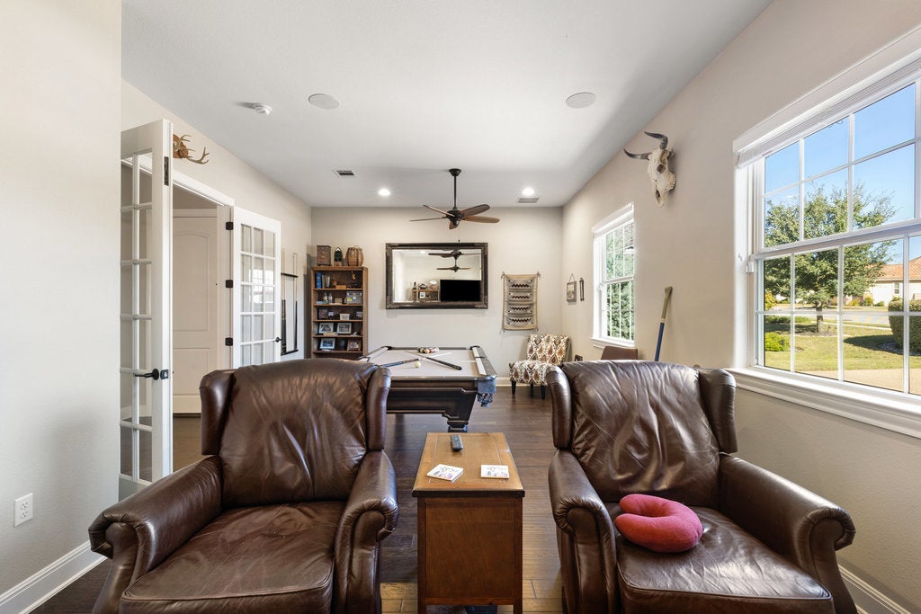 Built in 2020—and one of the very few homes in Steiner Ranch built in the 2020s—this rare single-story in the gated enclave of The Grove delivers the modern construction everyone wants, but can rarely be found in this area at this price point. Sitting on a private 1/3-acre, northeast-facing lot, it combines newer-build efficiency and amenities with the privacy and space the older sections can’t match. Inside, you get 3,772 sqft, 4 bedrooms, 3 baths, zero carpet, soaring ceilings, and a wide-open floor plan centered around a dramatic 14-ft kitchen island. The kitchen checks every box: 42" built-in fridge, wine fridge, stainless appliances, and a true walk-in pantry. A huge bonus room (study, game room, etc...) adds the flexibility today’s buyers need. The primary suite is separate and private —complete with a sitting area, spa-style bath, walk-through shower, soaking tub, dual vanities, and a massive closet. Secondary bedrooms all have walk-in closets and elevated finishes. Outside, the home shines even brighter: multiple covered outdoor living areas, built-in grill, beverage fridge, sink, and a private backyard that backs to green space. It’s turnkey Hill Country living with actual breathing room. All this in Steiner Ranch, blocks to Lake Austin, inside Leander ISD and the coveted Vandegrift HS zone, and minutes to UT Golf Club, Four Points shopping, trails, parks, tennis, pickleball & basketball courts, and three community pools. Opportunities like this don’t linger—a newer-construction, gated, single-story on a private oversized lot in Steiner is about as rare as it gets. Schedule your showing before someone else snaps it up.