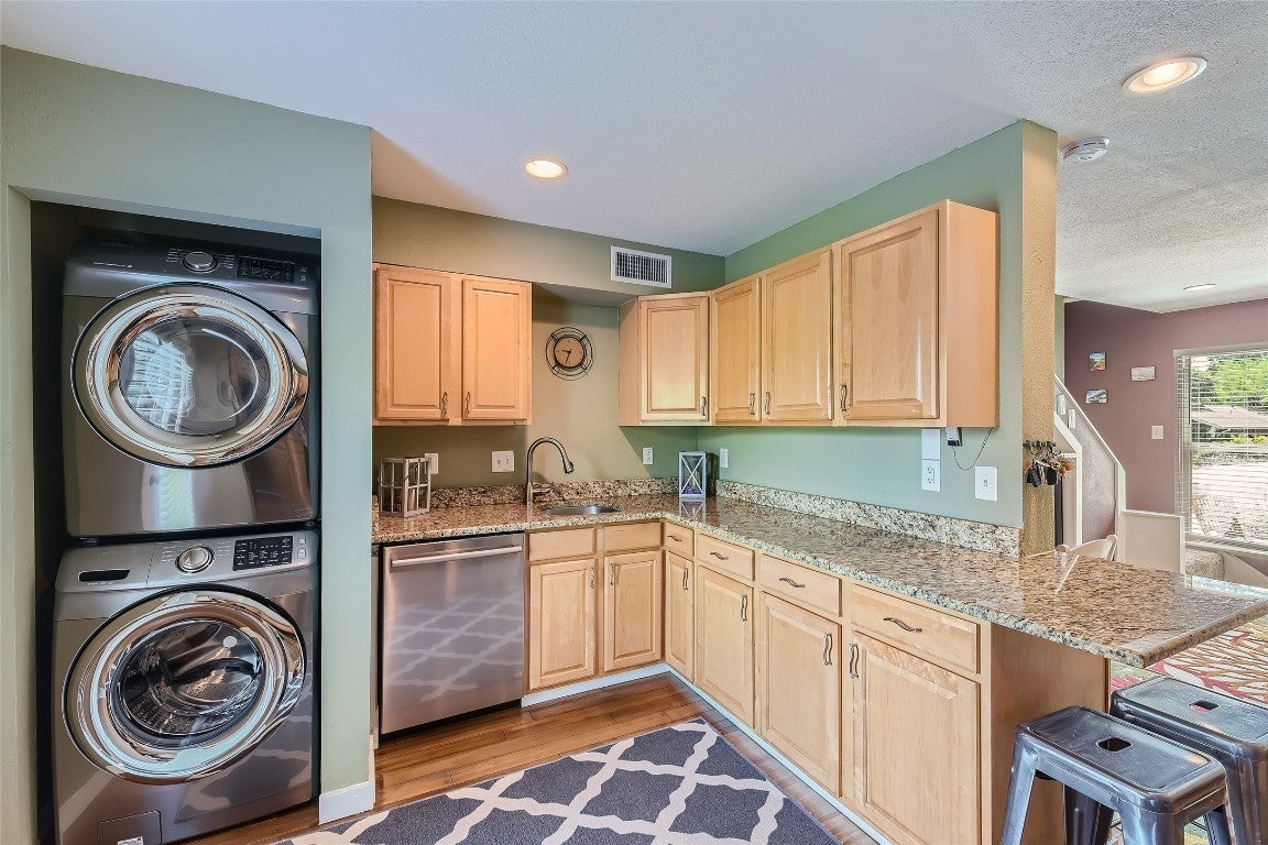 - Dryer, Washer/Dryer Stacked, Dishwasher, Electric Cooktop, Electric Oven, Free-Standing Electric Oven, Free-Standing Refrigerator, Disposal, Microwave, Washer
