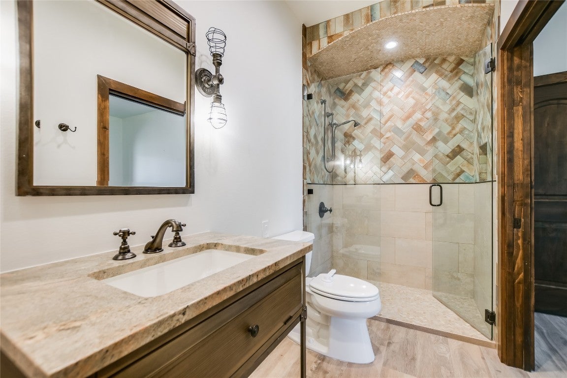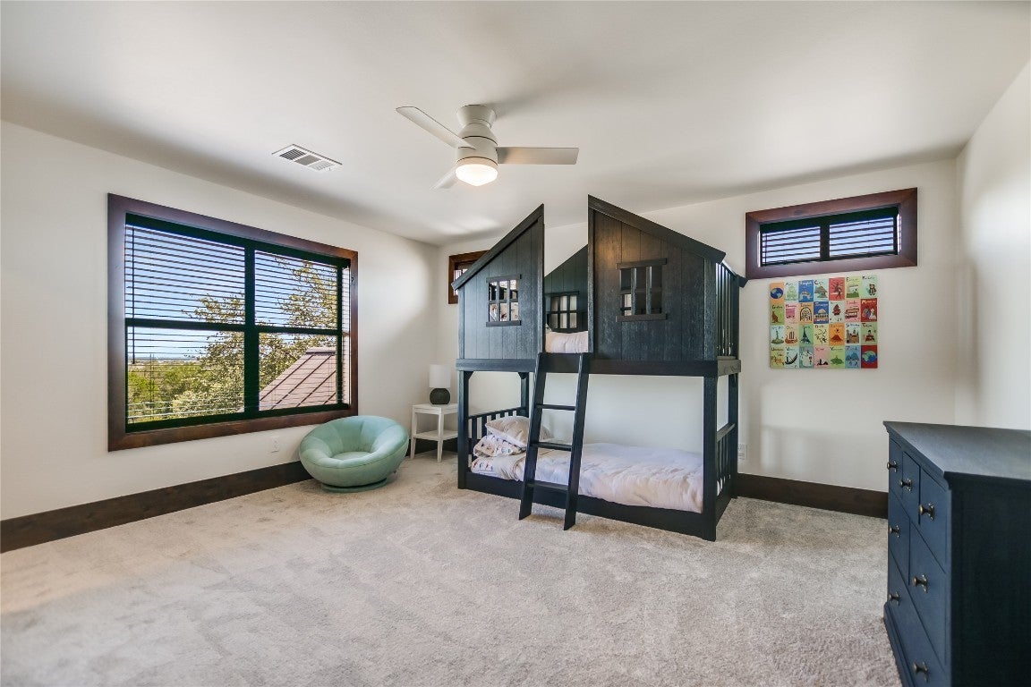 Experience breathtaking panoramic views of the Texas Hill Country and Lake LBJ from this nearly 11-acre private retreat. This 6-bedroom, 6.5-bathroom luxury home has been thoughtfully designed for comfort, elegance, and entertaining. Step inside to a spacious main living area anchored by a stunning gas fireplace and seamlessly connected to the formal dining space. The gourmet kitchen boasts recently upgraded countertops, high-end appliances, a double oven, and a built-in gas range. A cozy breakfast nook and a cleverly designed pantry tucked beneath the staircase complete this chef’s dream space. The primary suite, located on the main floor, offers a serene escape with a spa-inspired bathroom and a huge walk-in closet. Also downstairs, you’ll find a private guest suite with an en-suite bath, perfect for visitors. Upstairs, four generously sized bedrooms each feature their own en-suite bathrooms, ensuring privacy and comfort for family or guests. Outside you will find the resort-style pool and spa with a walk-in entry, water slide, and waterfall feature. The outdoor kitchen and bar are fully stocked for entertaining. Custom fire pit and covered patio with a secure, child-safe design separating the pool from the main yard. Additional features include: 2-car attached garage, 2-car detached garage, and large carport for ample parking. Fully fenced property with an automatic gate and separate fenced backyard for added privacy. This piece of paradise is an exceptional turnkey estate in The Hills of Horseshoe Bay!