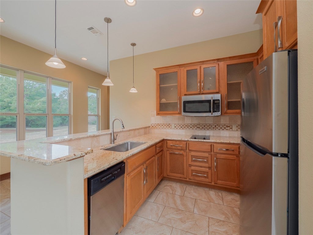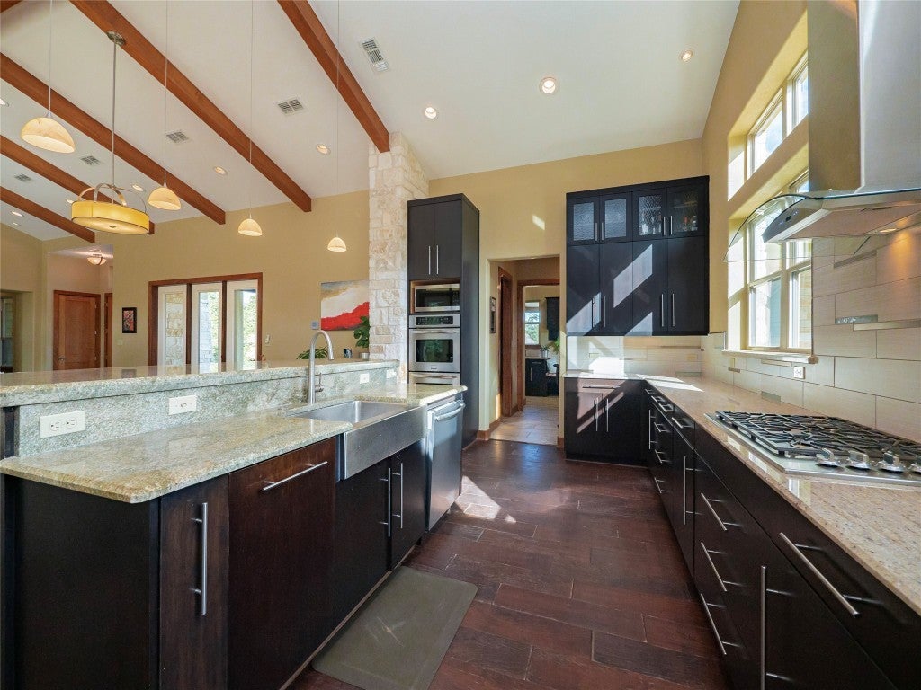- Built-In Electric Oven, Dishwasher, Gas Cooktop, Disposal, Gas Water Heater, Microwave, Stainless Steel Appliance(s)