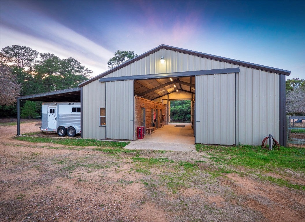 This stunning "Y" shaped home is situated on 10 acres and boasts many incredible features. Soaring 17' ceilings and lots of natural light flowing through the expansive glass walls. Whether you're preparing gourmet meals in the kitchen with a unique Butler's pantry or unwinding by the cozy fireplace, you will always have a front-row seat to nature's beauty. The gorgeous flooring throughout is engineered hardwood with ceramic tile in the Casita, bathrooms and laundry room. The 1 bed/1 bath/1300 SF Casita is attached to the home via a hallway and offers a private retreat for your guests or loved ones and has its own separate entrance and hallway. The 3500sf of covered patio area allows you to take in the panoramic views and provides the perfect space for entertaining and relaxation. Gather around the outdoor fireplace with friends and family, or simply bask in the tranquility of your surroundings. For the hobbyist or the professional, the property features a 1500 sf oversized garage with a separate wood shop, craft room, and storage room - all climate-controlled for ultimate convenience. Equestrian enthusiasts will be delighted by the 1900sf 4-stall barn complete with a kitchen, bathroom, exercise room, tool room, and feed room. Prepare yourself for endless hours of riding pleasure in the 200x60' riding arena, where you can hone your skills or simply enjoy the company of your four-legged friends. There also are generously sized separate dog yards that are accessible via built-in dog doors from both residences. With 780' of creekside frontage you can revel in complete seclusion and enjoy the serene sounds of nature all around you. Fully fenced and cross-fenced, providing both security and peace of mind. The wildlife exemption allows you to truly appreciate the beauty of the natural habitat that surrounds you.