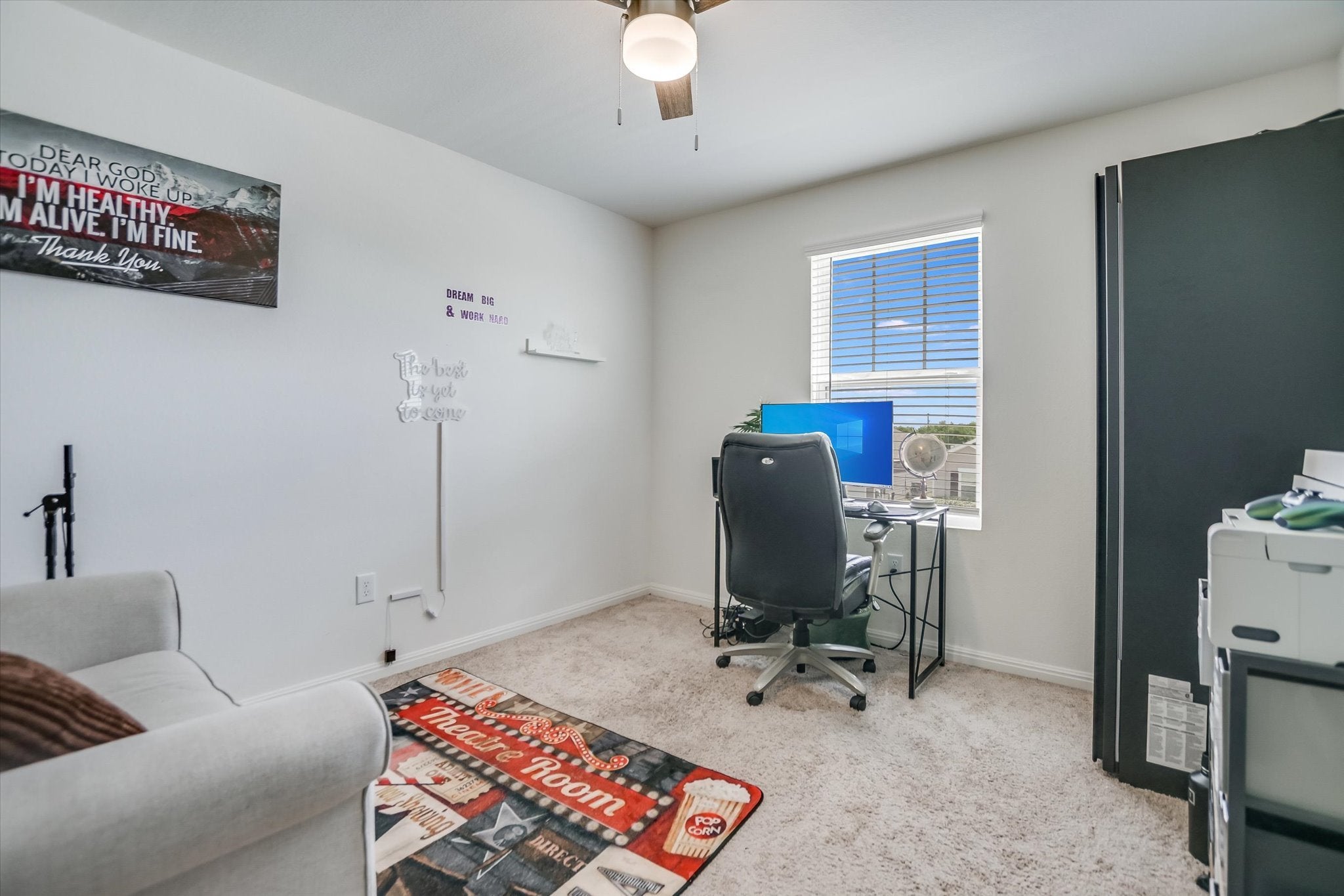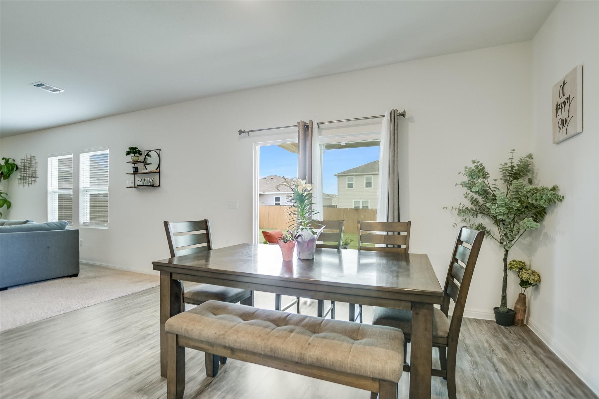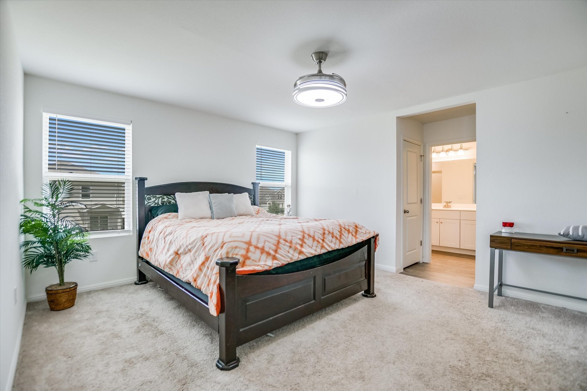 Beautiful two-story, 4-bedroom, 2.5-bath home with stunning curb appeal and a thoughtfully designed open floorplan. The charming covered front porch and low-maintenance artificial turf create a welcoming first impression. Inside, you’ll find wood-look laminate flooring, recessed lighting, clean white walls, and abundant natural light throughout. The spacious kitchen features granite countertops, a center island, white cabinetry, and stainless steel appliances, including a dishwasher, microwave, refrigerator, and electric range. The open layout flows seamlessly into the main living area and breakfast room—perfect for everyday living and entertaining. Added bonus- water softener system included! Enjoy three versatile living spaces, including a flexible front room ideal for a formal dining area, office, or sitting room, a comfortable main living room, and an upstairs loft for additional relaxation or play. The generously sized primary suite offers a peaceful retreat, while the expansive, private backyard features a large fenced yard and covered patio—perfect for outdoor gatherings. Additional highlights include a 2-car garage and access to fantastic community amenities such as a pool, playground, sport court, and sand volleyball. Located in Pflugerville ISD and just 22 miles from downtown Austin, this home offers convenient access to the 130 Toll, with Costco, Target, shops, and restaurants nearby at 130 and Kelly Lane. *Information deemed reliable but not guaranteed. Tenant to independently verify all information including but not limited to square footage, lot size, schools, etc. Appliances included but not warranted.