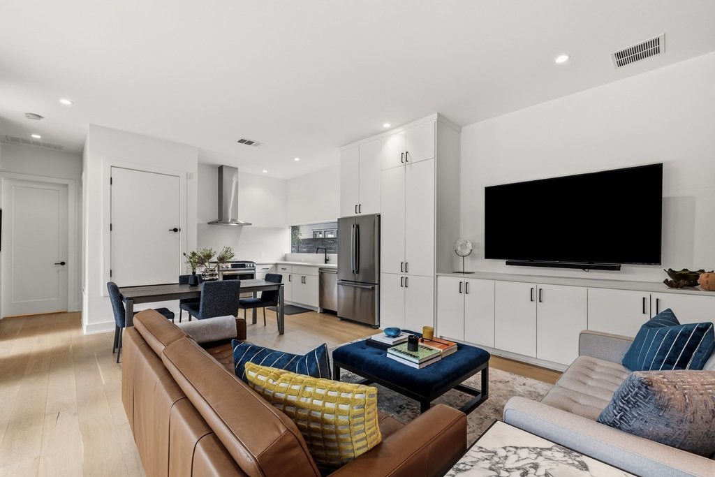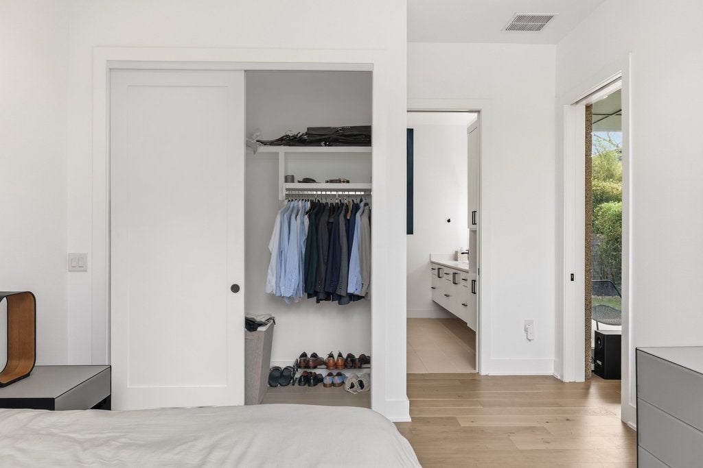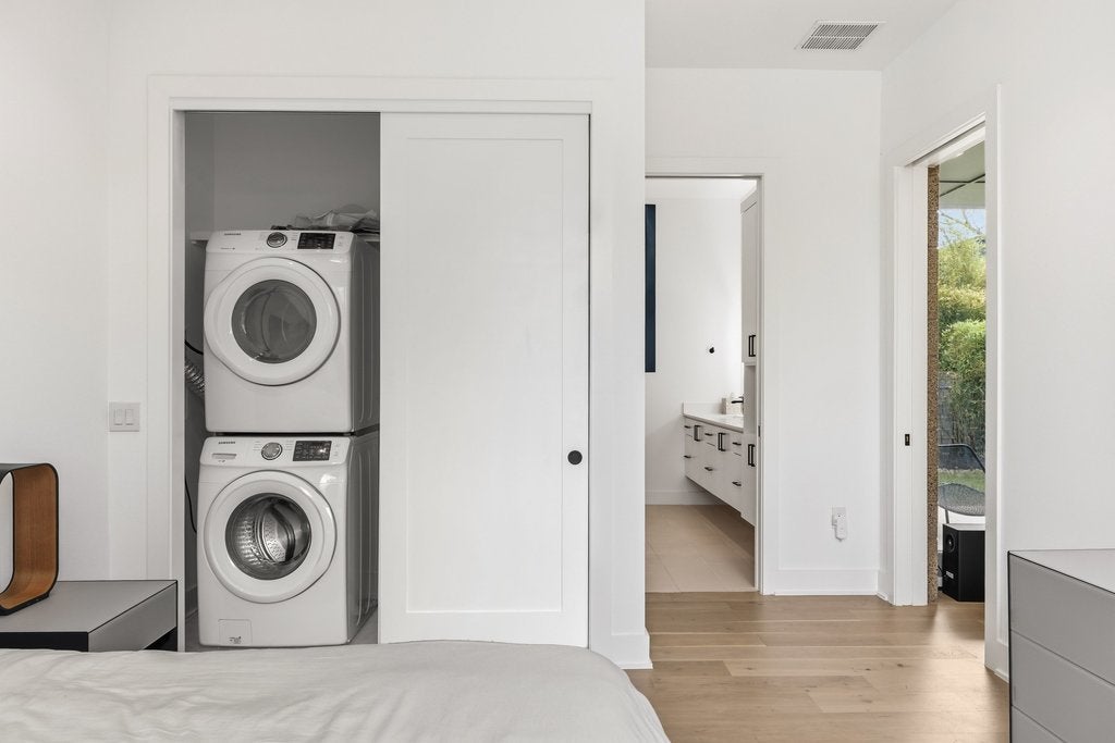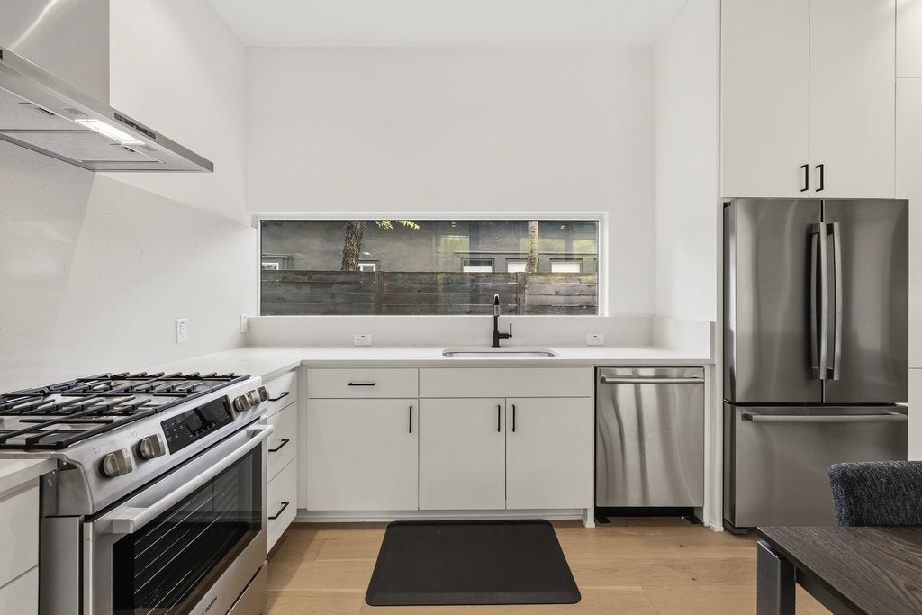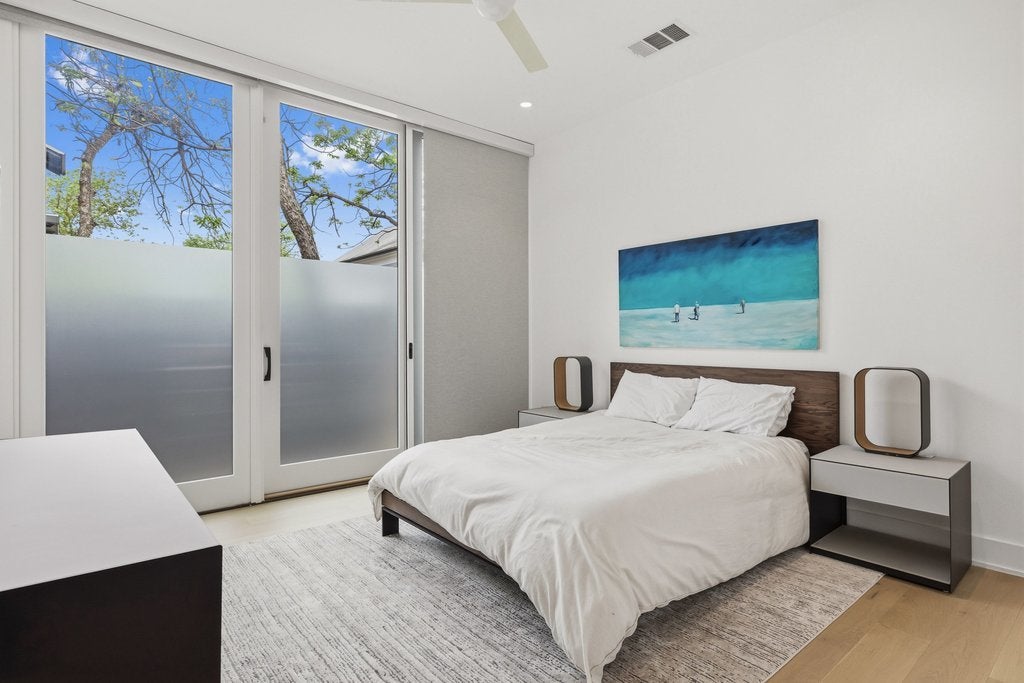 Experience the pinnacle of modern architectural design in the heart of Bouldin Creek. This unique residence stands apart from every other home of its size in the area, offering a sophisticated minimalist aesthetic that perfectly captures the spirit of South Austin. The striking exterior features industrial-chic metal siding, warm masonry block walls, and a sleek cantilevered carport with integrated recessed lighting. Inside, the light-filled open floor plan is defined by museum-quality walls, white oak flooring, and seamless indoor-outdoor flow through floor-to-ceiling glass sliders that lead to a private, low-maintenance yard. The curated interiors include a chef’s kitchen equipped with a professional-grade Bosch stainless appliance package, crisp quartz countertops, and a unique landscape window backsplash. High-tech convenience meets luxury with over $12,500 in premium automatic shades installed in the living room and primary suite. The primary bathroom serves as a private spa with a floating double vanity, backlit mirrors, and extensive floor-to-ceiling cabinetry. Beyond the home’s unmatched artistry, the location offers the ultimate urban lifestyle. Enjoy incredible walkability to the vibrant shopping and dining districts of South 1st, South Congress, and Lamar. For outdoor enthusiasts, you have immediate access to Auditorium Shores, the Lady Bird Lake hike-and-bike trails, and several neighborhood pocket parks. Zoned to the highly-regarded Becker Elementary, this home is the perfect high-tech urban retreat or lock-and-leave sanctuary in one of Austin’s most iconic neighborhoods. Experience the rare combination of location, walkability, and architectural excellence. For more info, go to: https://wkf.ms/4rXXqeP