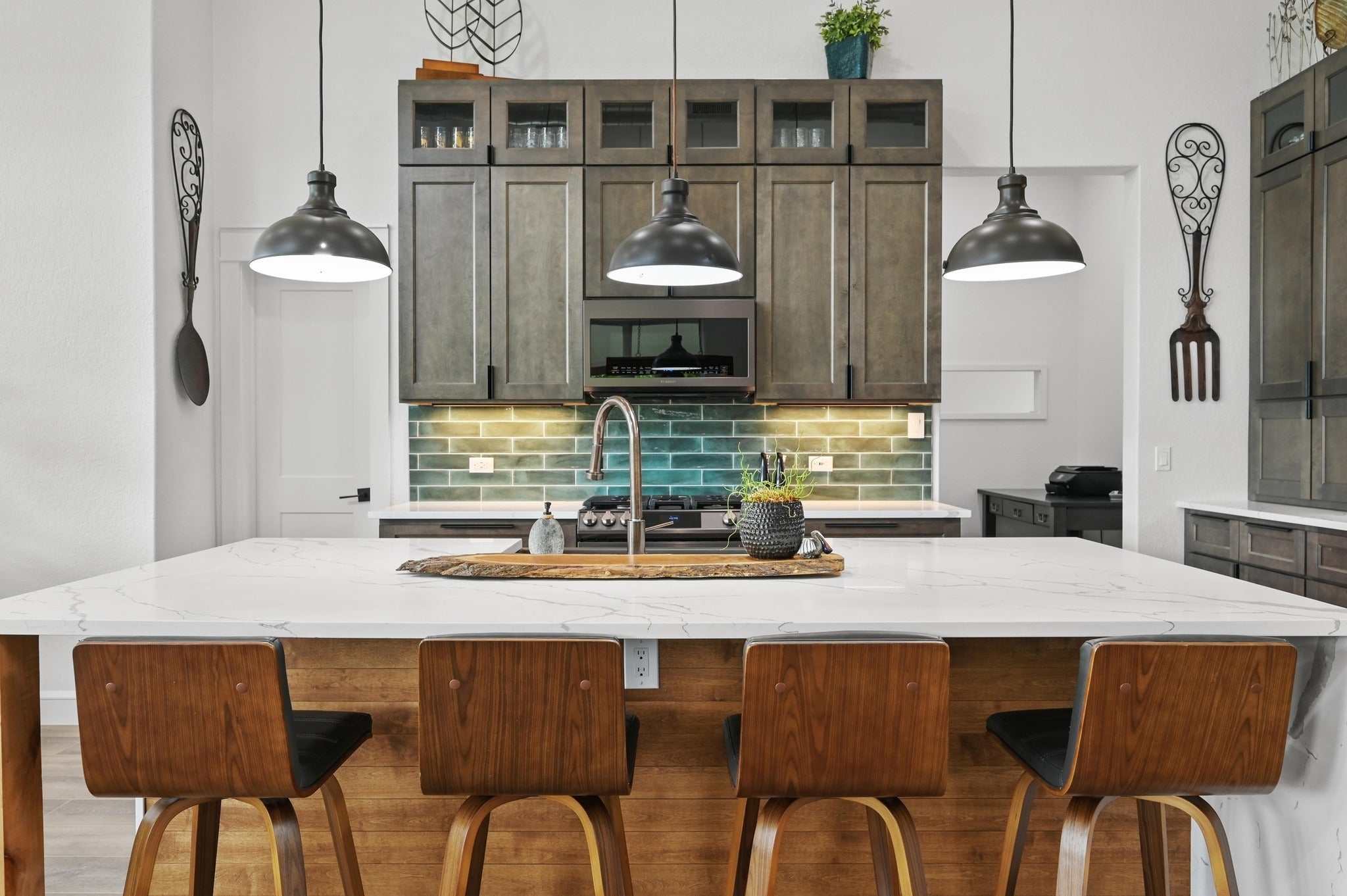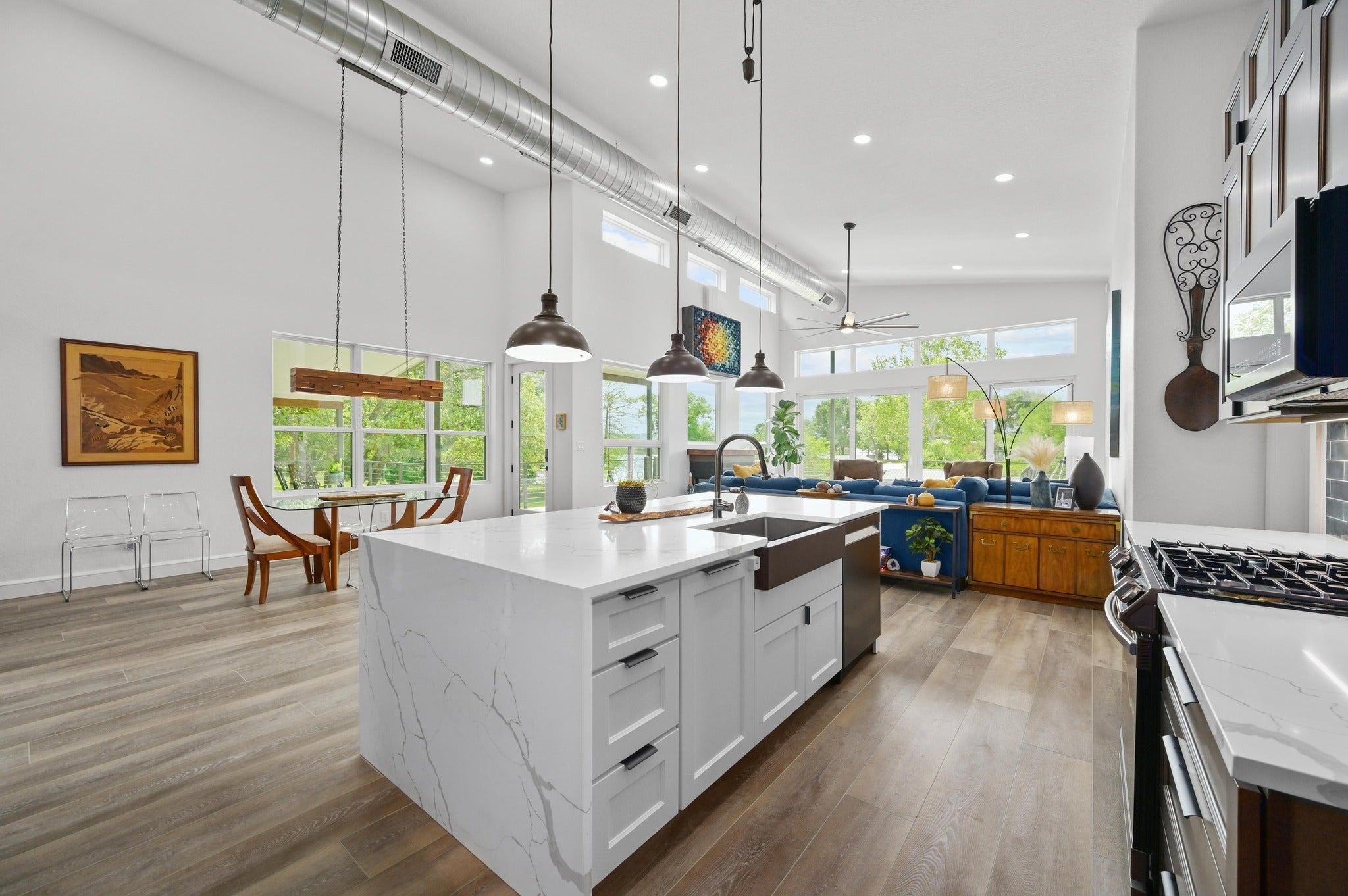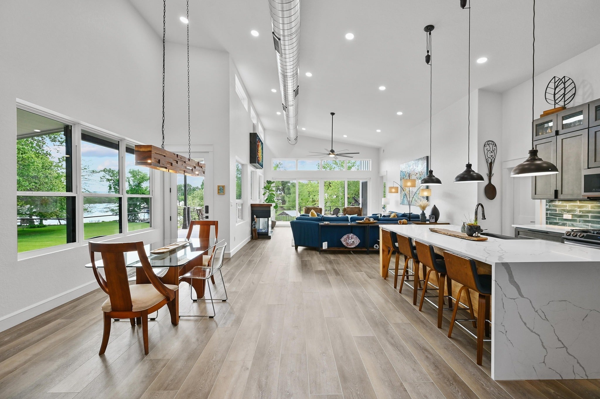 This meticulously designed home on coveted, constant-level Inks Lake is a true testament to pride of ownership, where every detail has been thoughtfully curated to create a one-of-a-kind lakefront retreat. This 4,580 sf home boasts 2,521 sf of main area living, including a casita with a bedroom, full bath, kitchen and living making it perfect for multigenerational families or guest stays. The functional layout with its unique architectural touches—like the handmade, wood dining chandelier and the colorful wall art housing the TV —add warmth and character to the open floor plan. At the heart of the home is the elegant kitchen featuring a stunning waterfall island, custom wood cabinetry, and Tuscan bronze appliances. The dedicated dining space features a beautiful wine and coffee bar with a live-edge wood countertop, grasscloth backsplash and wine fridge. Relax by the gas fireplace in the great room while enjoying the abundance of natural light and lake views. Or retreat outside to enjoy over 1600 sf of patio space, perfect for entertaining, cooking out, and relaxing lakeside. Downstairs is where you will find an additional 2,000+ sf of multipurpose space, open to create a massive rec room, game room, bunk room or additional living space. No expense was spared when building this home with too many features to list (see docs)…To name a few: heated floors in primary bedroom and bathroom, spray foam insulation, house powered to run on generator, storage galore including a 462 ft workshop/3rd car garage off rear of home, and a lake fed sprinkler system. A prime hill country location with two community parks with boat ramps...only 5 mi to Inks Lake State Park, 11 mi to Longhorn Cavern State Park, 4 mi to Torr Na Lochs winery. Out of all of the Highland Lakes, Inks is best known for its constant lake level, natural beauty, great fishing, and laid-back vibe. Short Term rentals are allowed for the investor or second homeowner. Don't let this one get away...Welcome Home!
