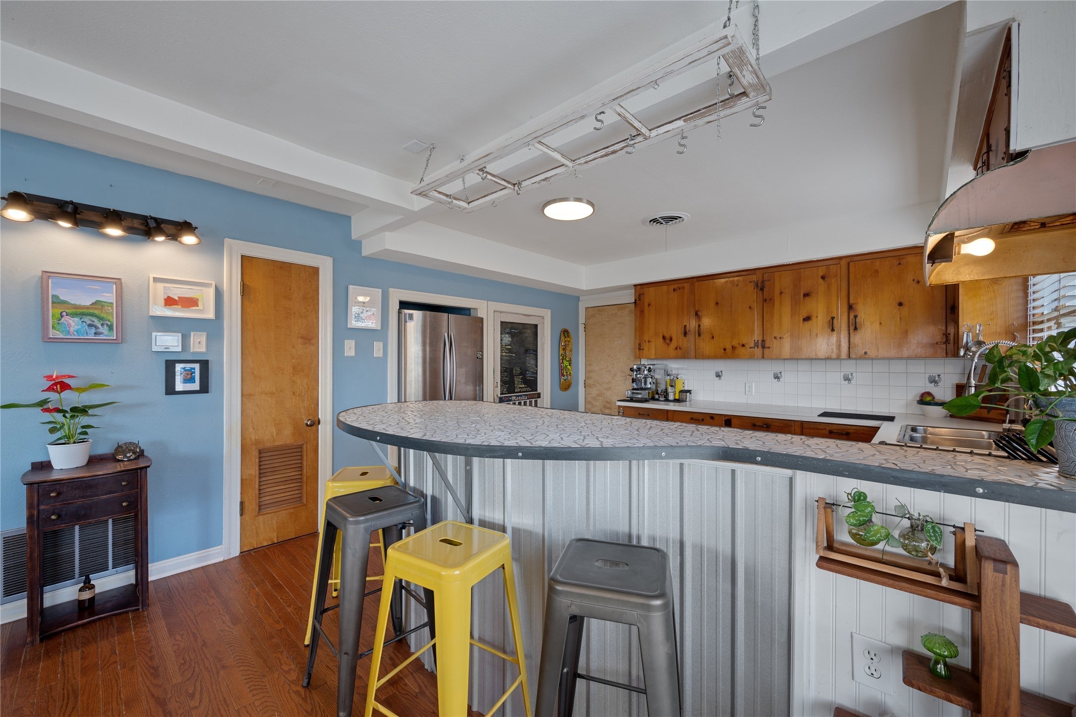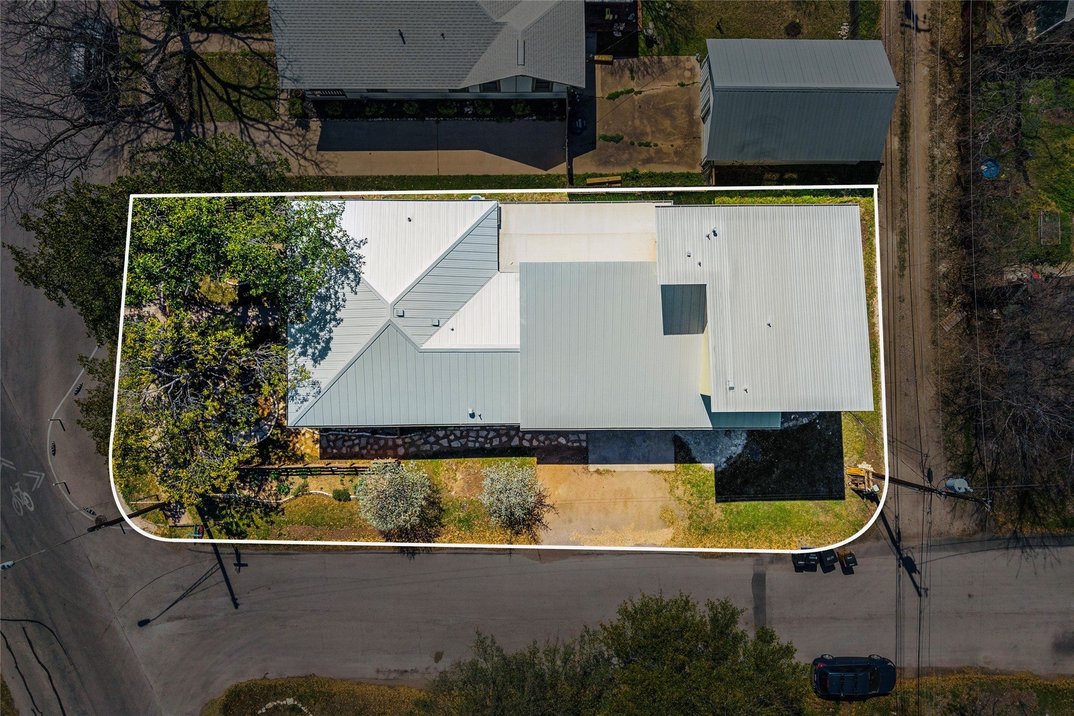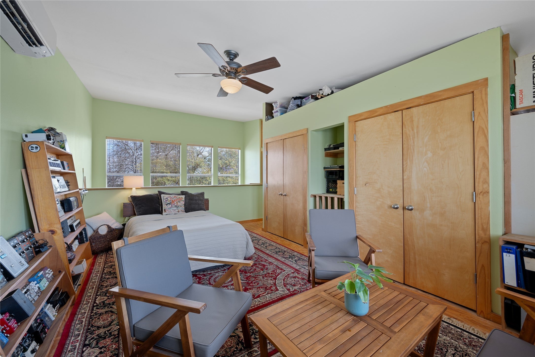 Truly exceptional live-work-create property in the heart of Austin, Texas. A seamless blend of a mid-century ranch-style home, a world-class recording studio, and private studio apartment. All this is achieved under a single standing seam metal roof -- complete with private entrances & facilities. Absolutely a must-see, with over 3300 sqft of craftsmanship and good vibes from the inside out. From your paved off-street parking pad, step through flowering, aromatic Mexican plum trees to access this true unicorn of a property. The gated front yard with multiple gathering spaces set under canopies of majestic Magnolia trees welcome you to this 2 bed, 1 bath pier & beam home constructed in 1955. Gleaming hardwood floors set the stage in the wide, open living area. Playful checkered tile floors and custom tiled bar top pair well with modern gas appliances in this expanded kitchen with ample counter space. Original baby blue vintage tile bath, extra large storage closet and two comfortably sized bedrooms complete this charming main house. Just through the kitchen, discover a well-appointed recording studio that has seen countless artists from Austin & around the world. Repeatedly voted among the Top 3 Best Recording Studios in Austin Chronicle's Music Awards year after year. Not musically inclined? Simply reimagine these inspiring spaces as an art studio/gallery, meditation room, cocktail lounge, media, or reading room. Beyond the next keyed door, access the private 2nd-floor studio apartment. Soaring ceilings and natural light make this 500 sqft. space feel so inviting - complete with kitchenette, washer & dryer connects, plenty of storage, and full black-and-white tile bathroom. Centrally located in eclectic & historic North Loop: by foot or car, quick access to everything from local dives, classic University faves, top Austin restaurants, Downtown, Mueller, I-35. Bike to UT <15 min *See Notable Features, Walkable Bars & Eateries & 3D tour.