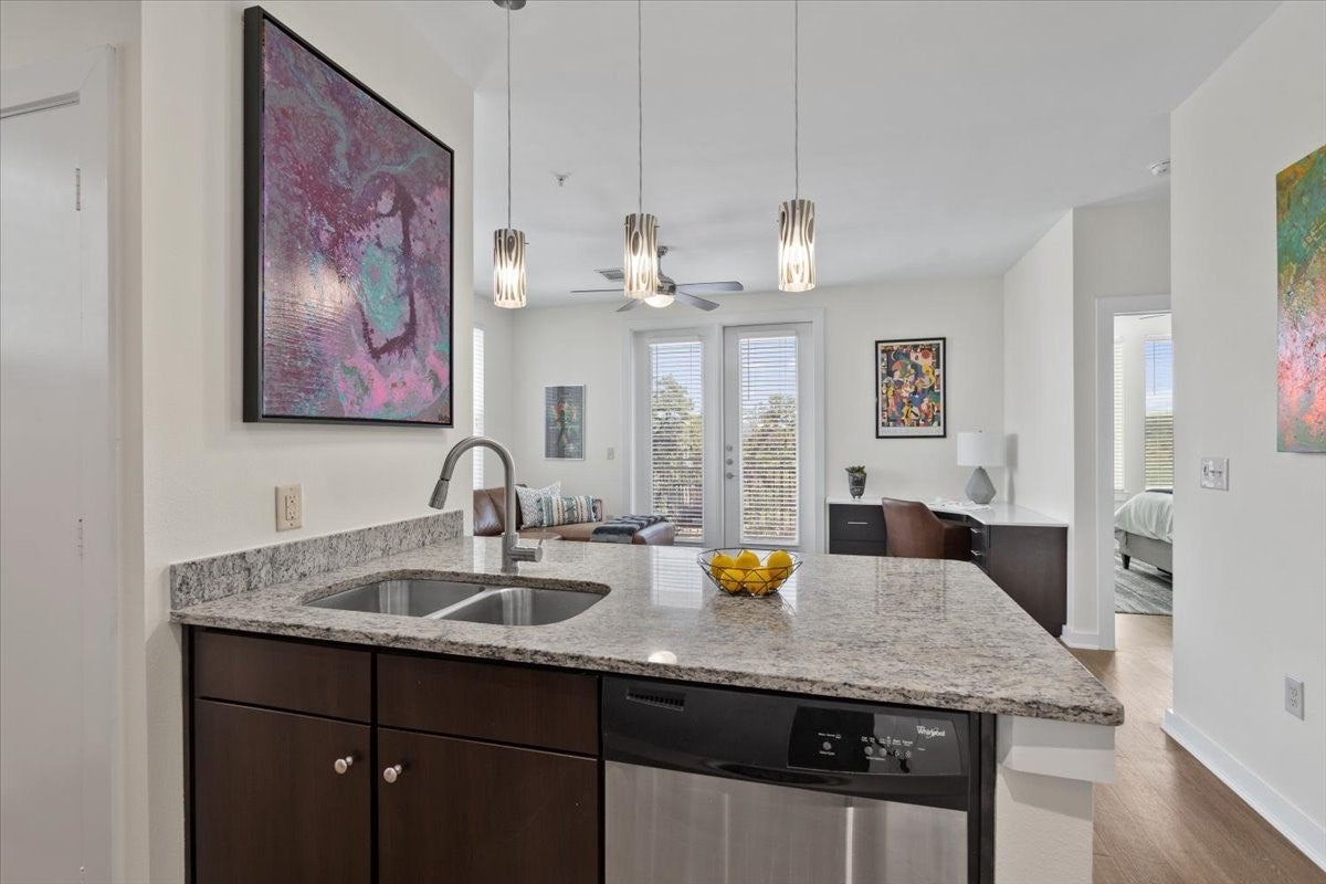 Welcome to Zilkr on the Park! This stylish 1-bedroom, 1-bath condo offers the perfect mix of comfort, convenience and Austin lifestyle. Situated directly across from Zilker Park and just minutes from Barton Springs, the Hike & Bike Trail, and downtown Austin, this home puts you in the center of it all. Inside, you’ll find an inviting open floor plan with high ceilings, wood floors and natural light throughout. The kitchen features granite countertops, modern cabinetry and stainless-steel appliances, while the spacious bedroom includes a walk-in closet. Enjoy the convenience of in-unit laundry with a stacked washer/dryer and no interior steps. Relax on your private balcony or take advantage of the community amenities, including a pool, fitness center, clubhouse, BBQ grills and beautifully landscaped courtyards. One reserved parking space is included in the secured garage. Pets are welcome with some restrictions. With its unbeatable location and resort-style amenities, this condo is the ideal place to experience Austin living at its best! Information provided by seller & to be independently verified by the renter.