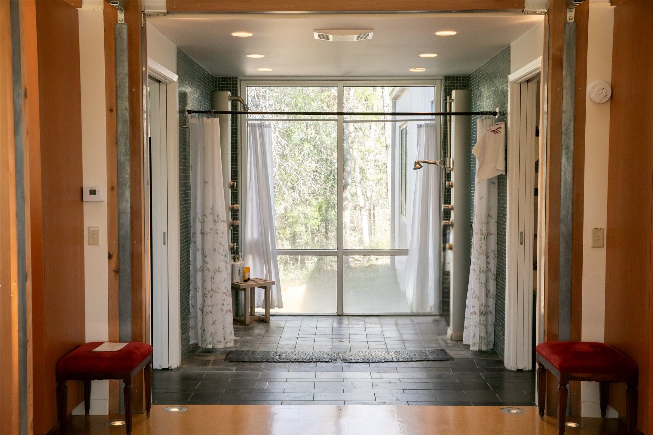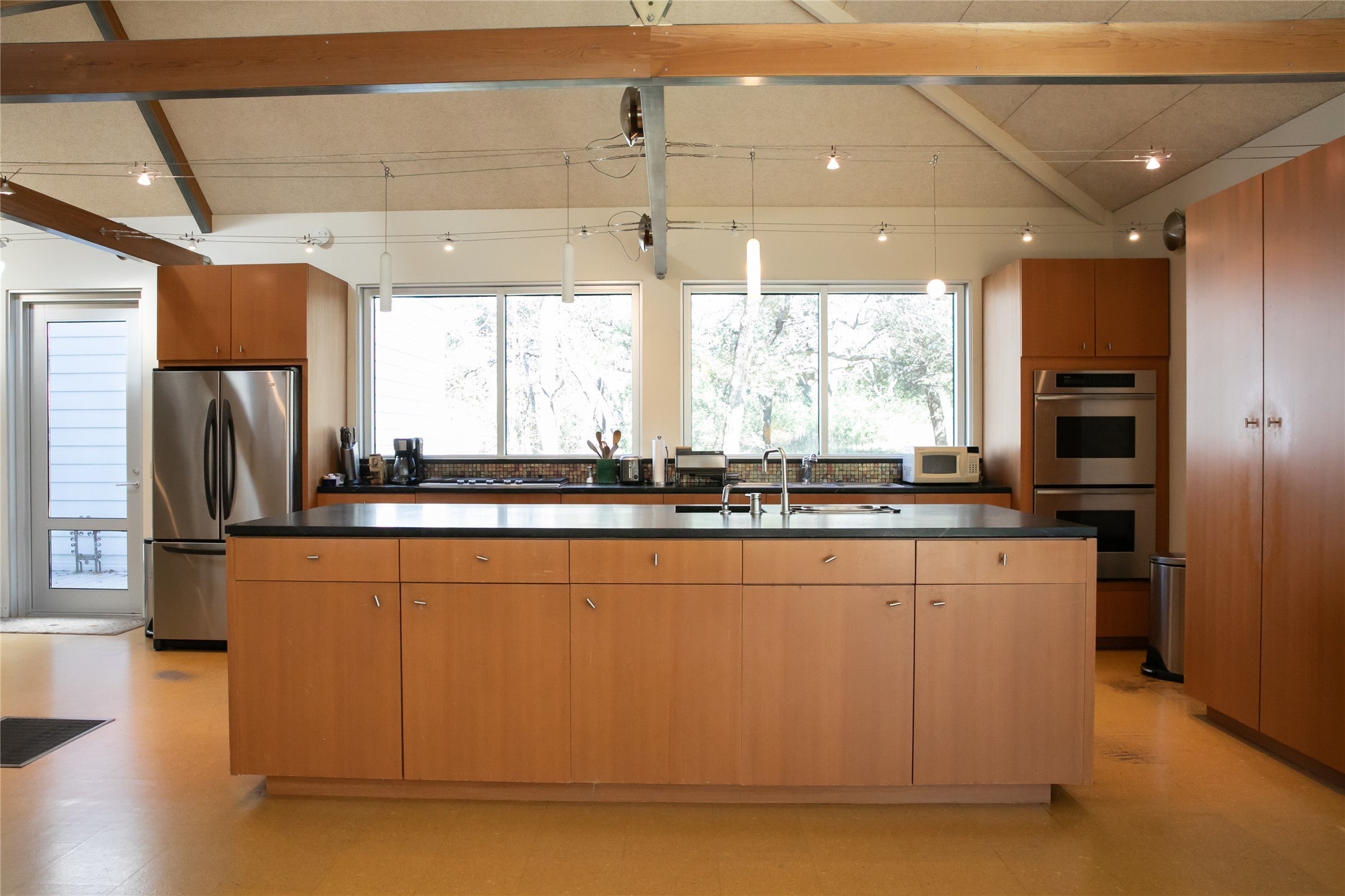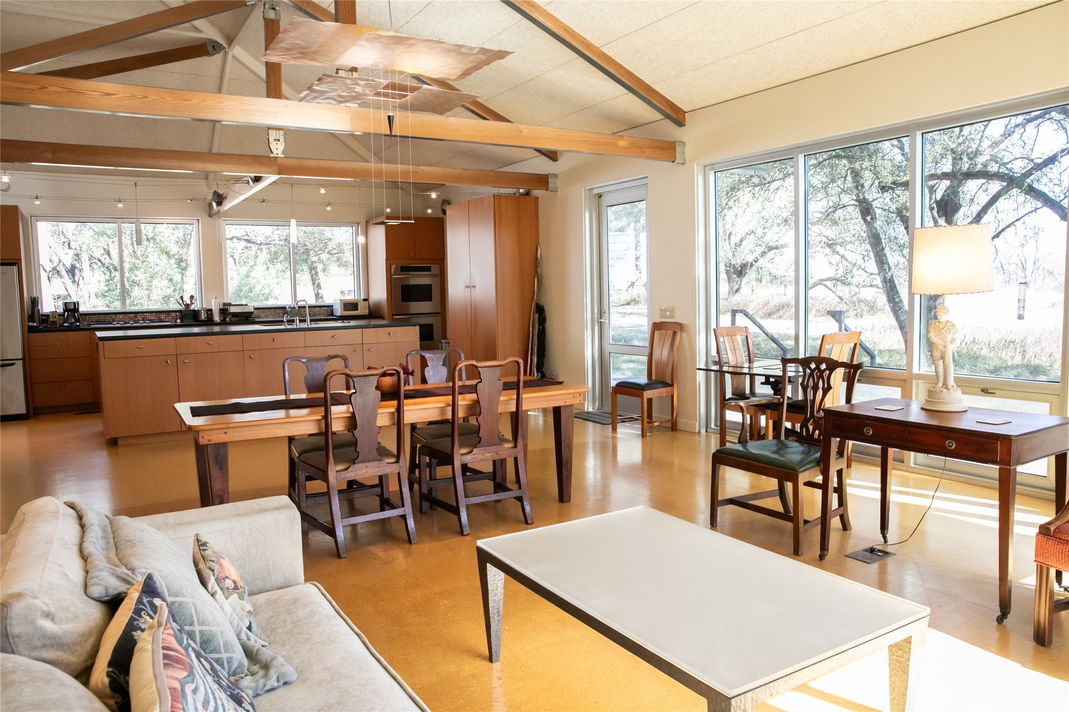 Discover a peaceful escape on this stunning 22-acre wooded property featuring a contemporary home designed to bring the outdoors in. Massive windows frame sweeping views of wildlife and natural scenery, creating a seamless connection between indoor comfort and nature. Inside, an open-concept living space boasts soaring ceilings with exposed beams and modern design touches throughout. The spacious kitchen offers abundant counter space, cabinetry, a double oven, dishwasher, and propane cooktop—ideal for everyday cooking or entertaining. Two well-appointed bathrooms include tile flooring, a large jetted tub, and a dedicated shower cove. A cozy study area provides a perfect spot to unwind or can serve as an additional sleeping space. The generous butler’s pantry, with double sink, cabinets, and shelving, adds valuable storage and functionality. This private haven is a dream for nature lovers—enjoy birdwatching, wildlife viewing, and quiet hikes through mature woods and open meadows. The acreage is being divided from a larger tract and will require a new water well after purchase, allowing you to tailor utilities to your needs. Located on a private road with easement access, just 15 minutes from historic Navasota and about 20 miles from Brenham, offering peaceful seclusion with easy access to small-town amenities.