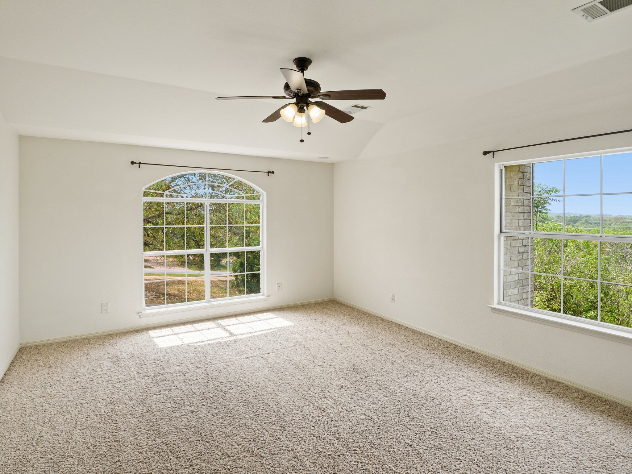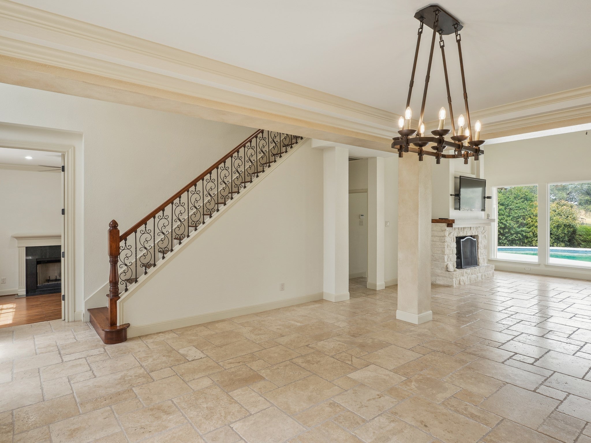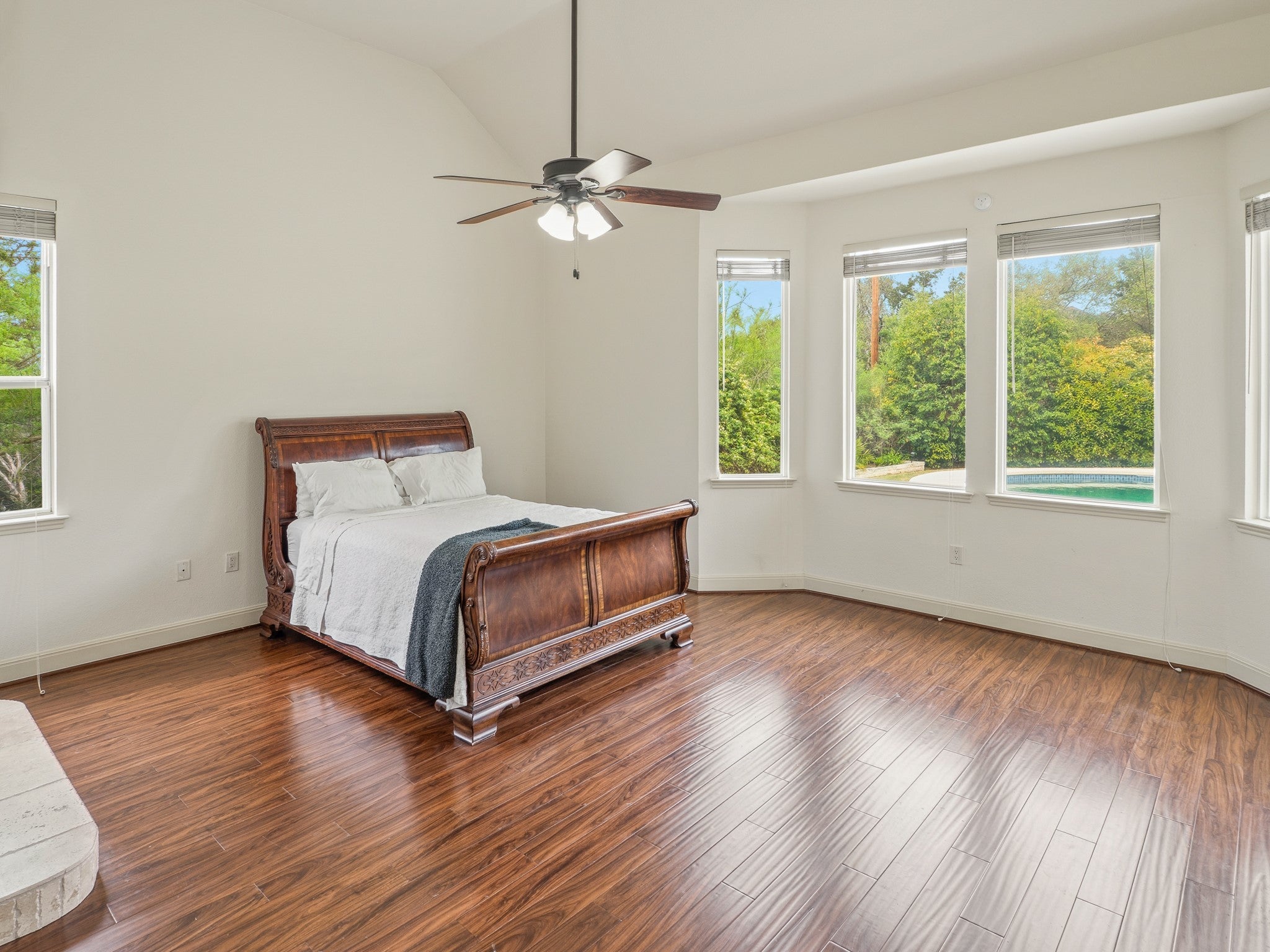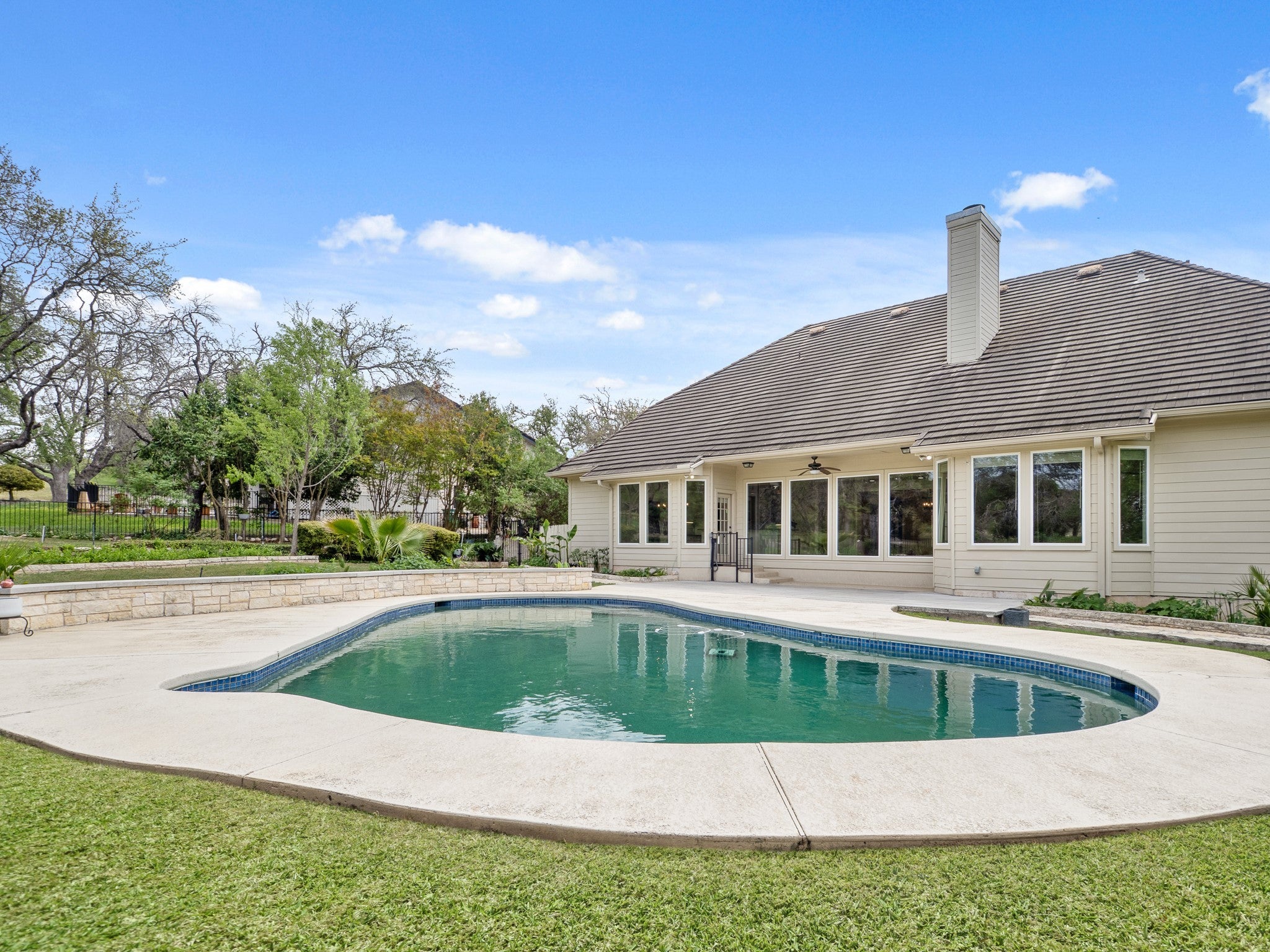 Entertainer’s dream in the heart of Lakeway, ideally positioned backing to the 1st fairway of Yaupon Golf Course. This beautifully updated home offers a seamless blend of indoor-outdoor living with a private garden-style yard creating a natural buffer from the course. The open-concept floor plan features a wall of windows across the living, breakfast, and primary suite (replaced approximately 2018), filling the home with natural light and showcasing the resort-style pool and outdoor living areas. Travertine and wood flooring add warmth and sophistication throughout. The kitchen is equipped with granite countertops, upgraded Bosch appliances, and a wine refrigerator that conveys—perfect for entertaining. The main-level primary suite offers peaceful pool views, while a dedicated study with fireplace provides an ideal work-from-home space. Upstairs includes three additional bedrooms, with one currently configured as a media room. Spacious living areas, thoughtful updates, and a prime golf course setting make this home perfect for both everyday living and entertaining. Located within the highly acclaimed Lake Travis Independent School District and just minutes from Lakeway amenities, golf, dining, and Lake Travis. Conveniently located near Lakeway amenities, golf courses, marinas, and just minutes to Lake Travis, this home offers the perfect blend of lifestyle and location.