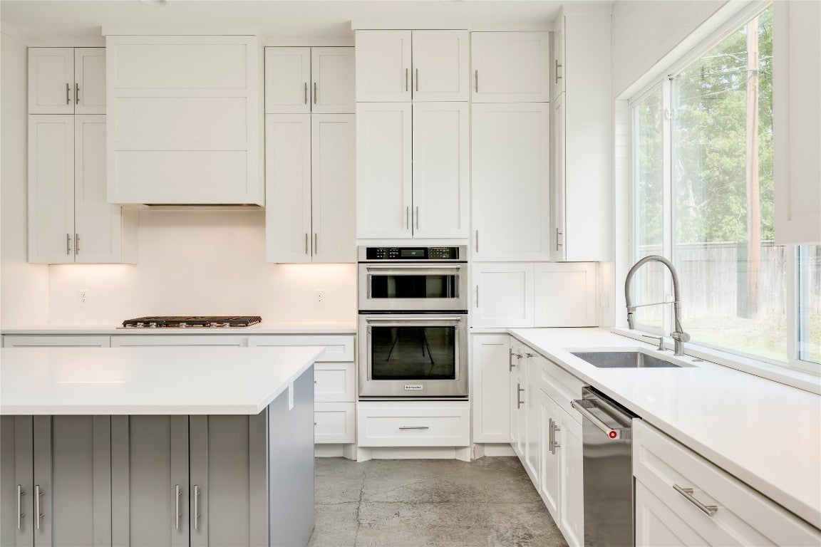 - Dishwasher, Disposal, Microwave, Stainless Steel Appliance(s), Built-In Electric Oven, Gas Cooktop, Range Hood, Self Cleaning Oven