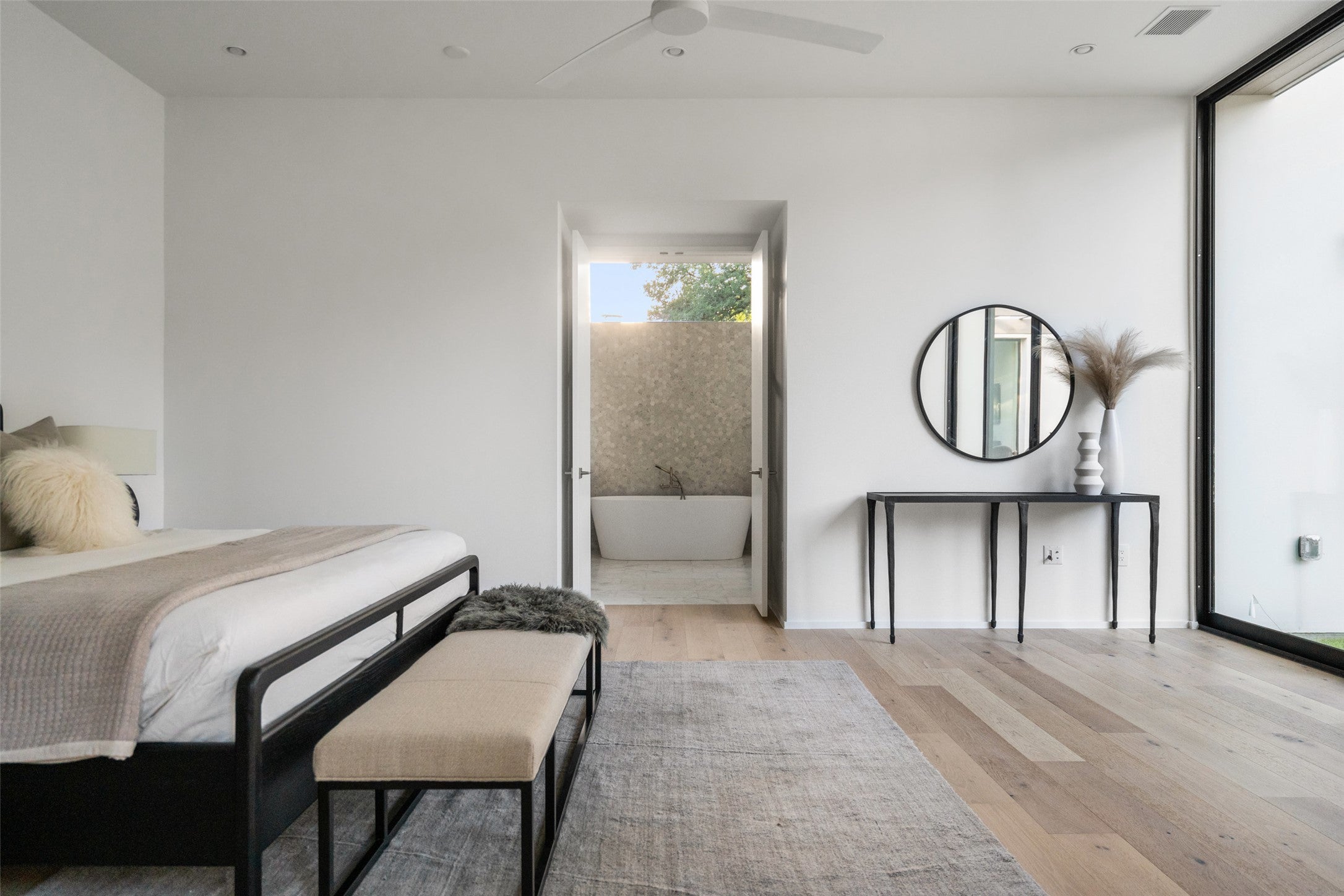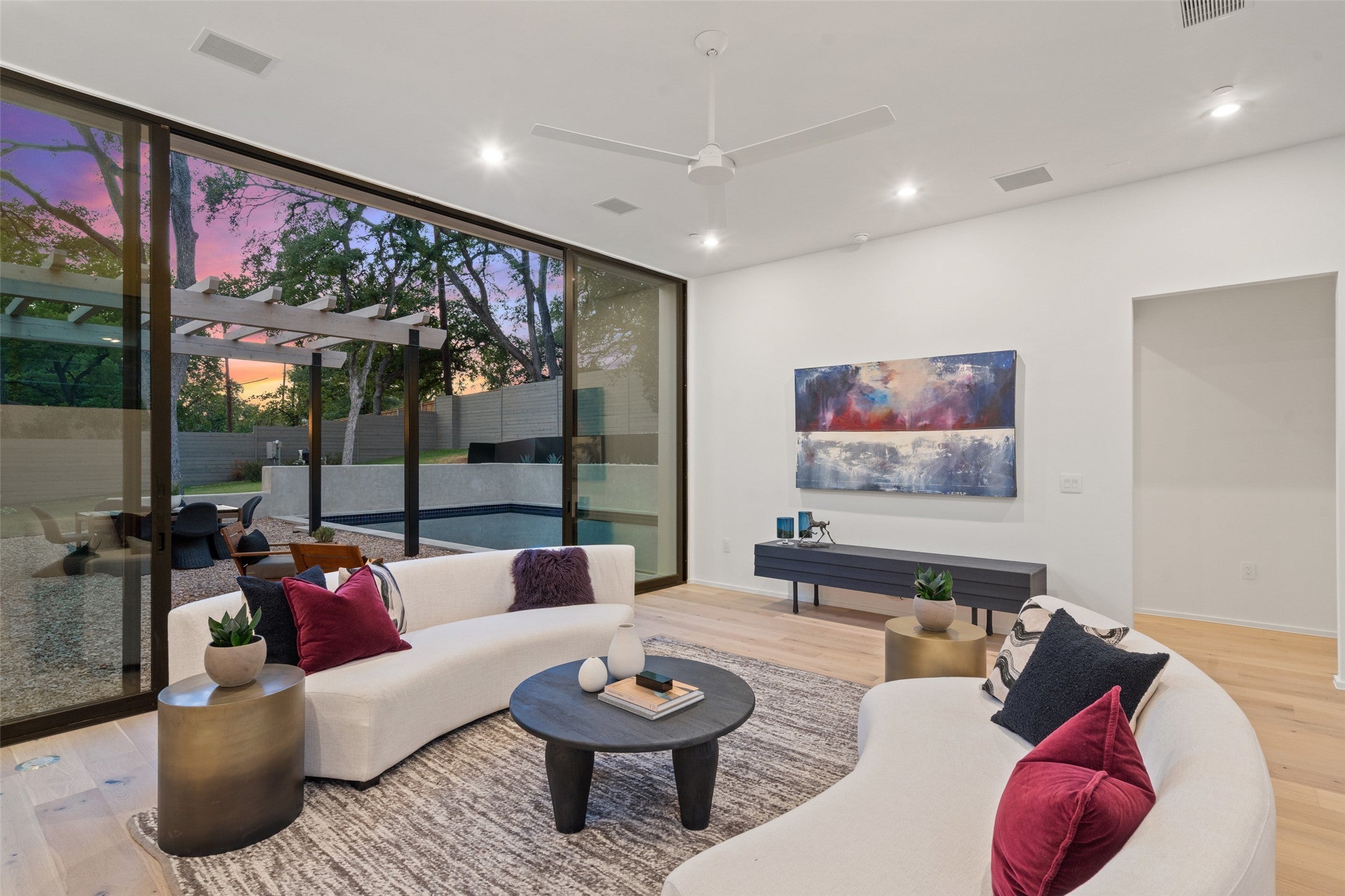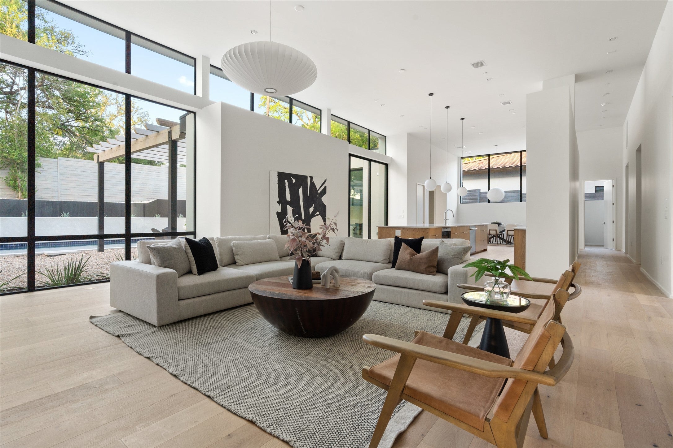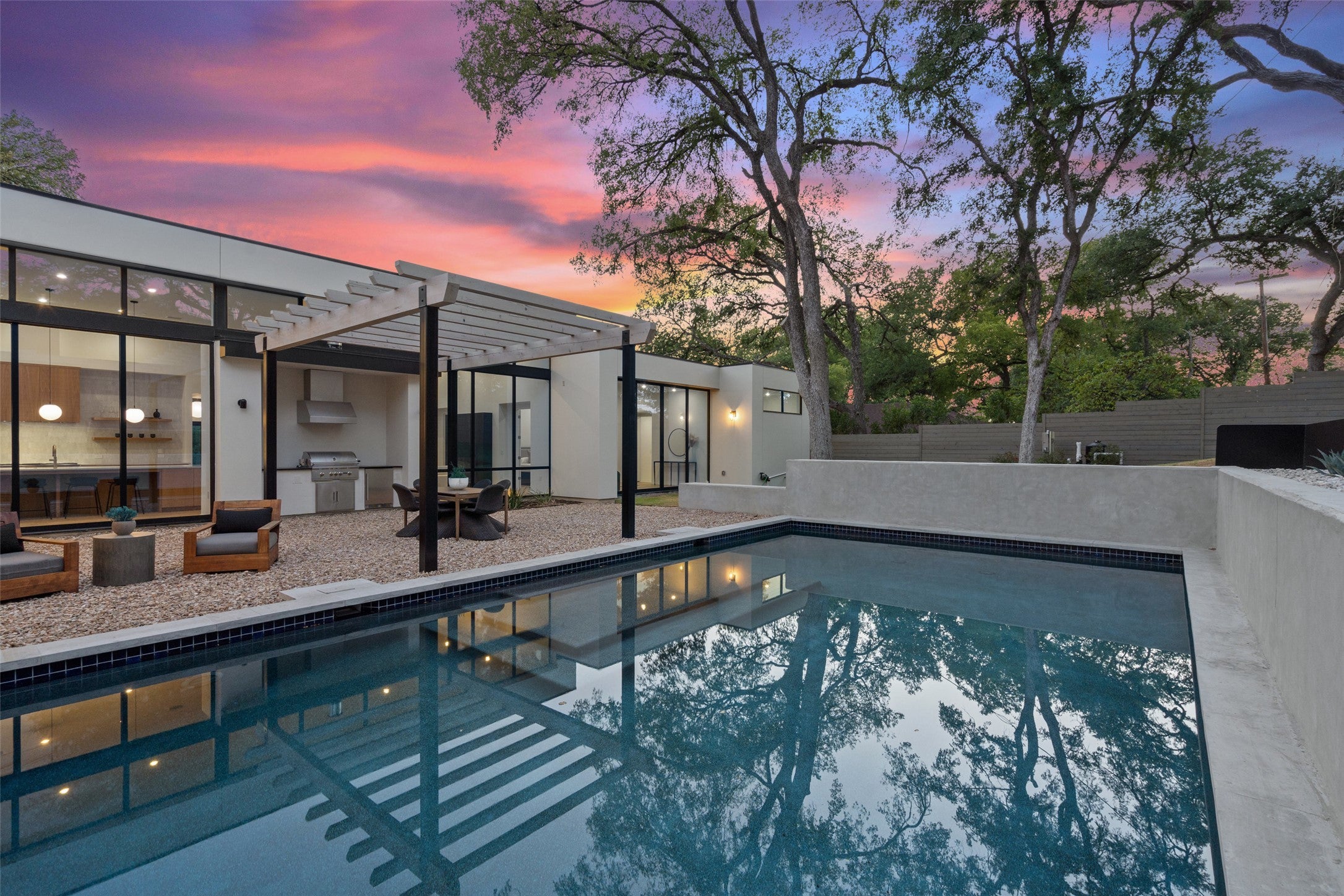 Introducing a breathtaking estate by visionary architect Patrick Ousey of FAB Architecture- an inspired one-story contemporary residence that redefines refined living in central Austin's most coveted neighborhood, Tarrytown, zoned to & steps away from the highly rated Casis Elementary (9/10 on Greatschools). Set on a rare 13,037 sq.ft. lot, this architectural gem seamlessly blends warm modernism with functional elegance, delivering a private sanctuary. Encompassing approximately 4,665 sqft, the home unfolds with curated intention every detail tailored for elevated everyday living. Walls of glass bathe the interiors in natural light, drawing the eye to clean architectural lines, layered textures, & an effortless indoor-outdoor connection. The open-concept floor plan is anchored by soaring 14-ft ceilings in the living & kitchen areas, where an exquisite chef's kitchen outfitted with Wolf & Monogram appliances flows into the family room, an entertainer's dream. The primary suite is a true retreat, tucked away with serene views & private access to the backyard oasis. Its spa-like bath features a freestanding soaking tub, dual vanities, walk-in shower, & dual walk-in closets one of which connects seamlessly to the laundry for ultimate convenience. A second private suite, ideally positioned for in-laws or guests, overlooks the pool, while three additional bedrooms (or optional office) complete this thoughtful layout. Outside the backyard evokes Palm Springs vibes with a terraced backyard secluded from neighbors offering a rare sense of privacy & calm. The extra-large centrally located pool becomes the centerpiece for your elevated backyard gatherings with a sprawling lawn, pergola, & outdoor kitchen with grill & fridge. All info deemed reliable but not guaranteed. Tenant to independently verify all info. Tenant's light fixtures excluded-Entry, dining,primary bed. Lease ends Feb 28, 2026. Tenant responsible for pool and landscaping.