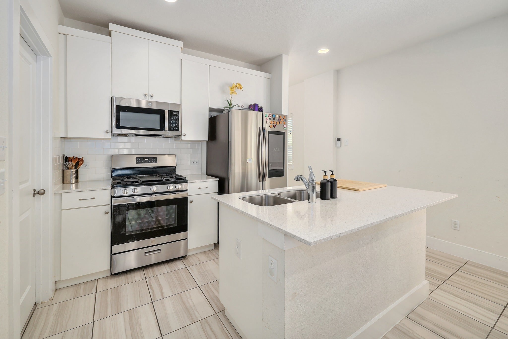 - Dryer, Dishwasher, Disposal, Microwave, Refrigerator, Stainless Steel Appliance(s), Tankless Water Heater, Washer, Free-Standing Gas Oven