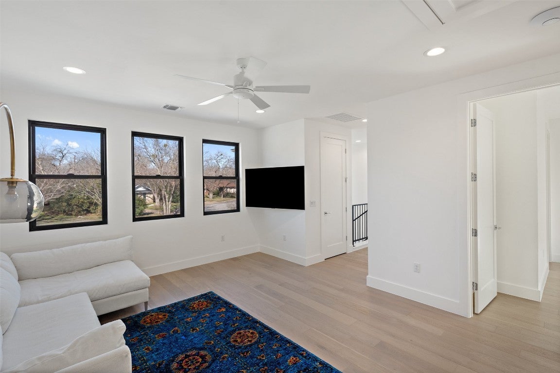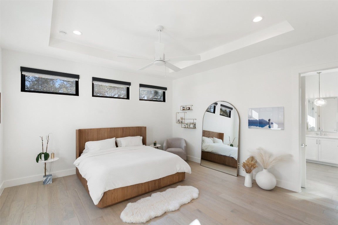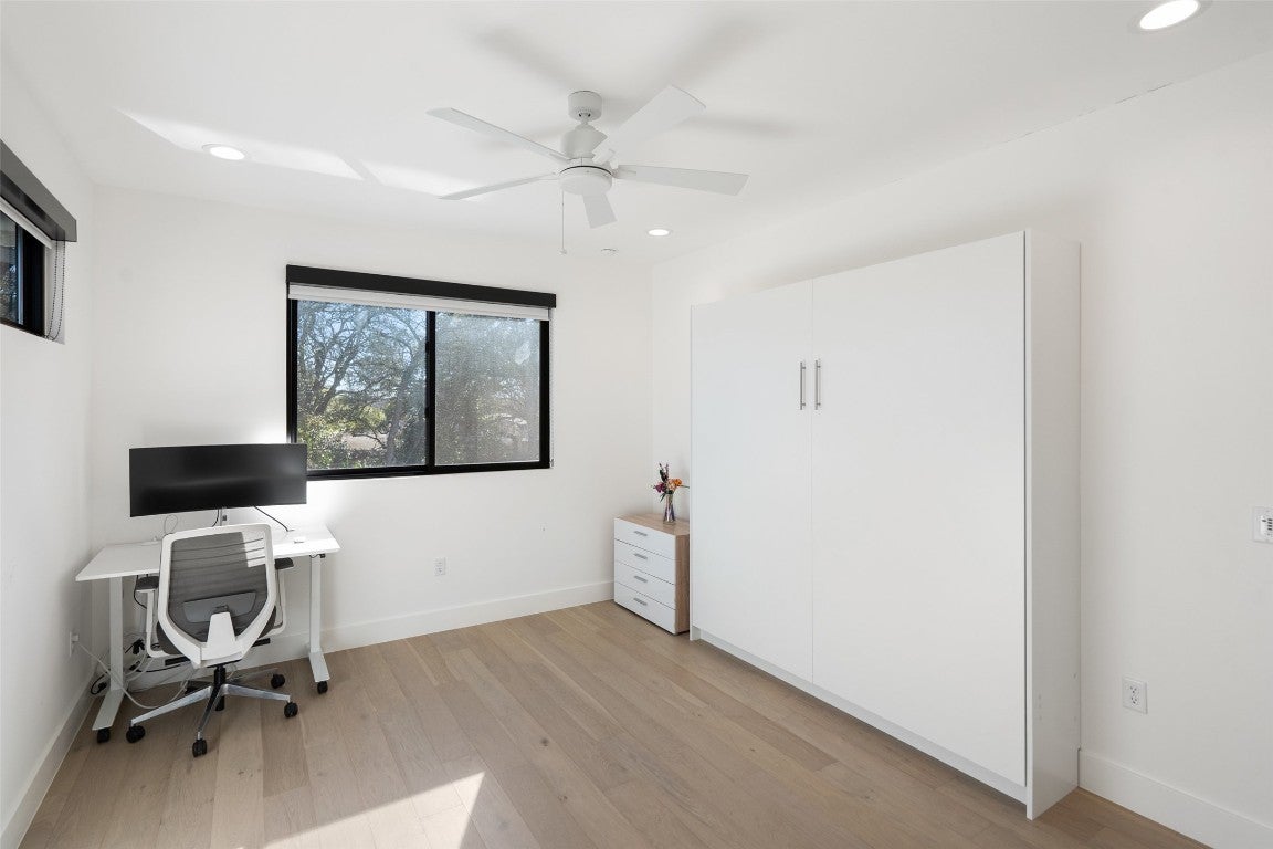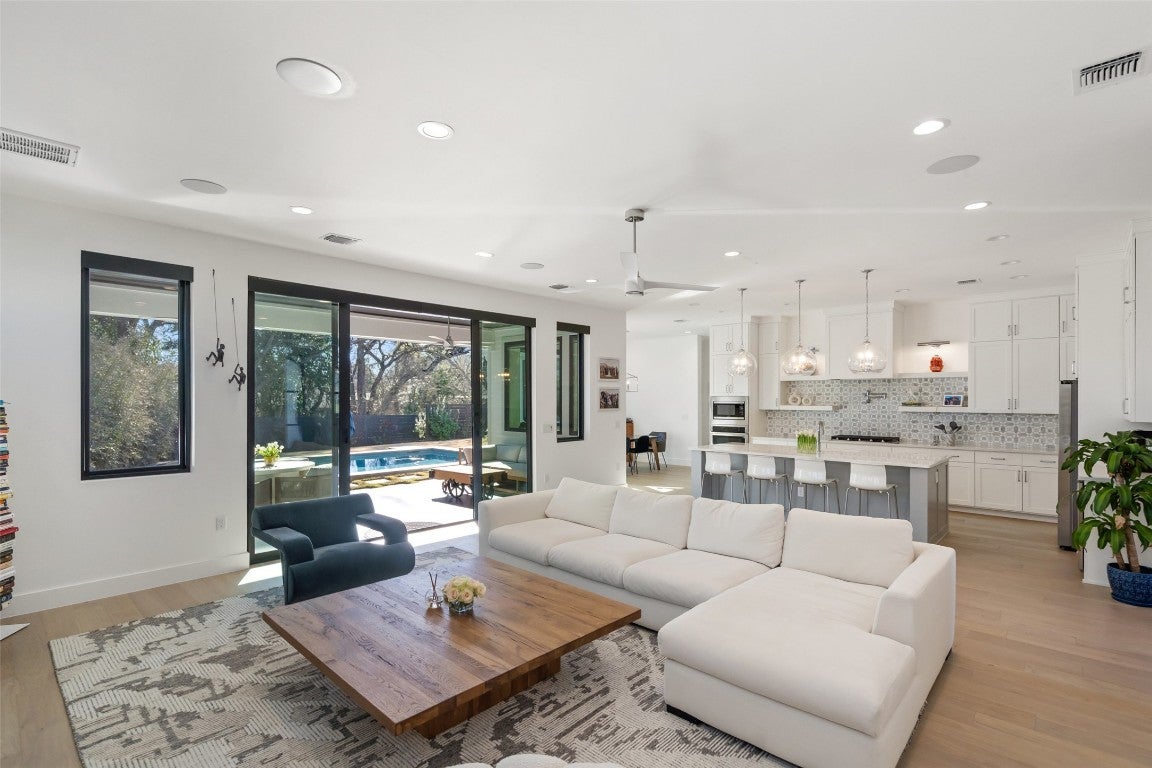 Sophisticated downtown living meets modern intelligence & South Austin charm! Walking in the front doors of this pristinely maintained home, you’re greeted with expansive views of the heated pool & plush backyard. Crafted by reputable local builder Paradisa Homes, this residence blends timeless design with functionality. The neutral color pallet, 10' ceilings & all the natural light create an inviting space to host gatherings or relax at home. Entertain effortlessly in the open-concept kitchen with butler’s pantry & oversized island, or unwind in the private outdoor living space. Step outside the floor-to-ceiling glass doors to a low-maintenance backyard oasis featuring a pool & spa, outdoor kitchen & covered patio, perfect for year-round enjoyment. Designed for today’s connected lifestyle with over $55k in recent upgrades, including a fully integrated Smart Home system, surround sound, motorized blackout shades, Tesla wall charger, hardwired security system+ cameras, Lutron dimmers & high-speed Google Fiber on Cat6Ethernet. Thoughtful details such as Anderson Windows, 8' solid-core doors & spray foam insulation throughout deliver both luxury & exceptional energy efficiency. This quiet cul-de-sac lot boasts established landscaping, privacy bushes & ample space to play in the front & backyard. The family-friendly Emerald Forest neighborhood is Austin’s best kept secret, known for its great walkability, wide streets & Heritage Oaks. On any given day you’ll be greeted by the frequent walkers & cyclists enjoying this serene urban neighborhood, still exhibiting some of its original charm. Located in the desirable South 1st Street corridor, minutes from numerous restaurants, parks, grocers, retailers & all things downtown Austin. Just 8 miles to the airport! ALL appliances and king-size murphy bed convey. Strong STR investment opportunity with six-figure income potential. Energy efficient, tech-forward & truly move-in ready- this is refined city living without compromise!