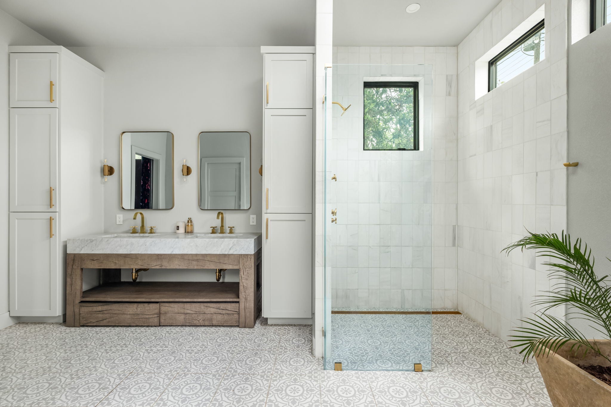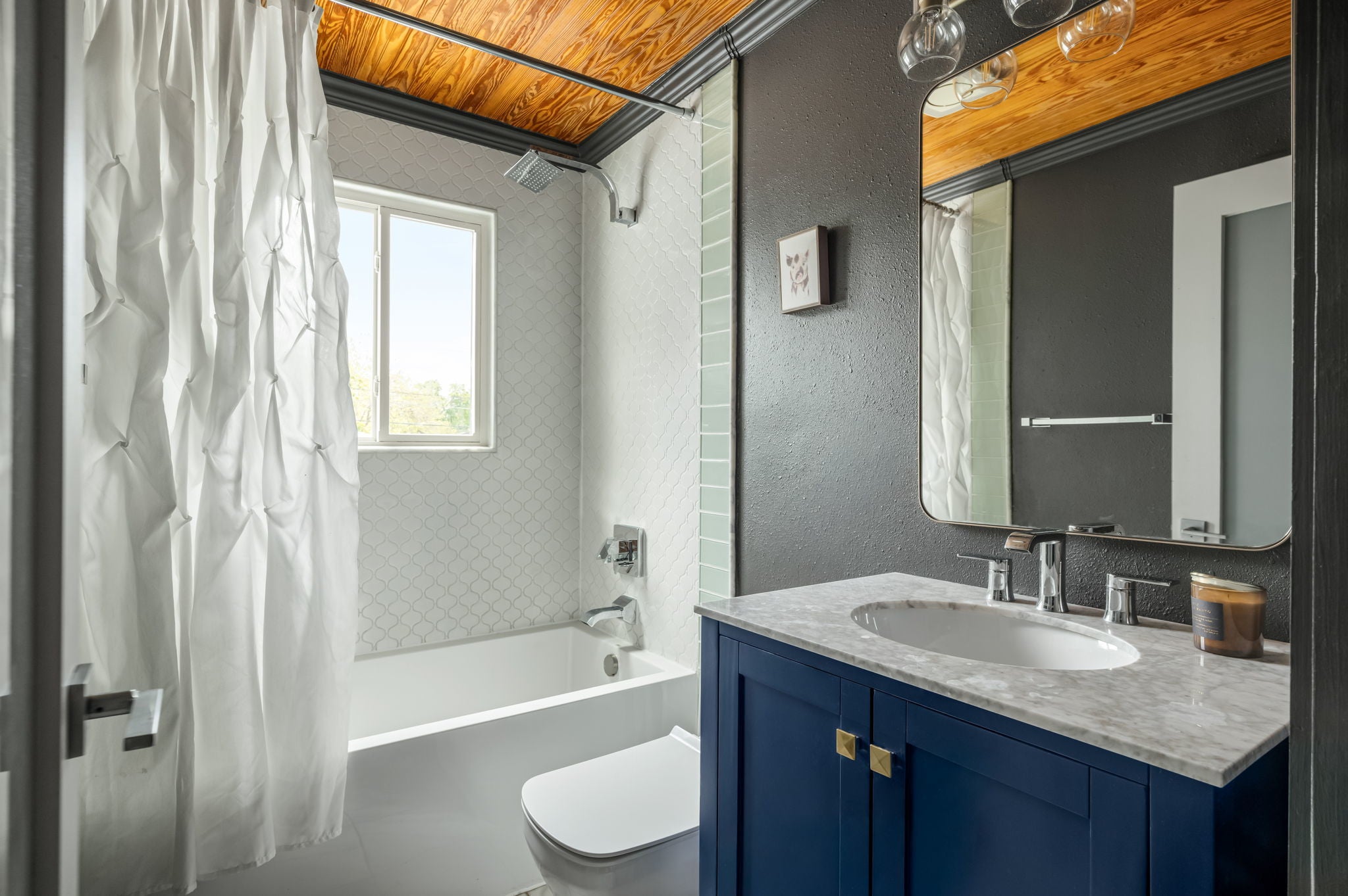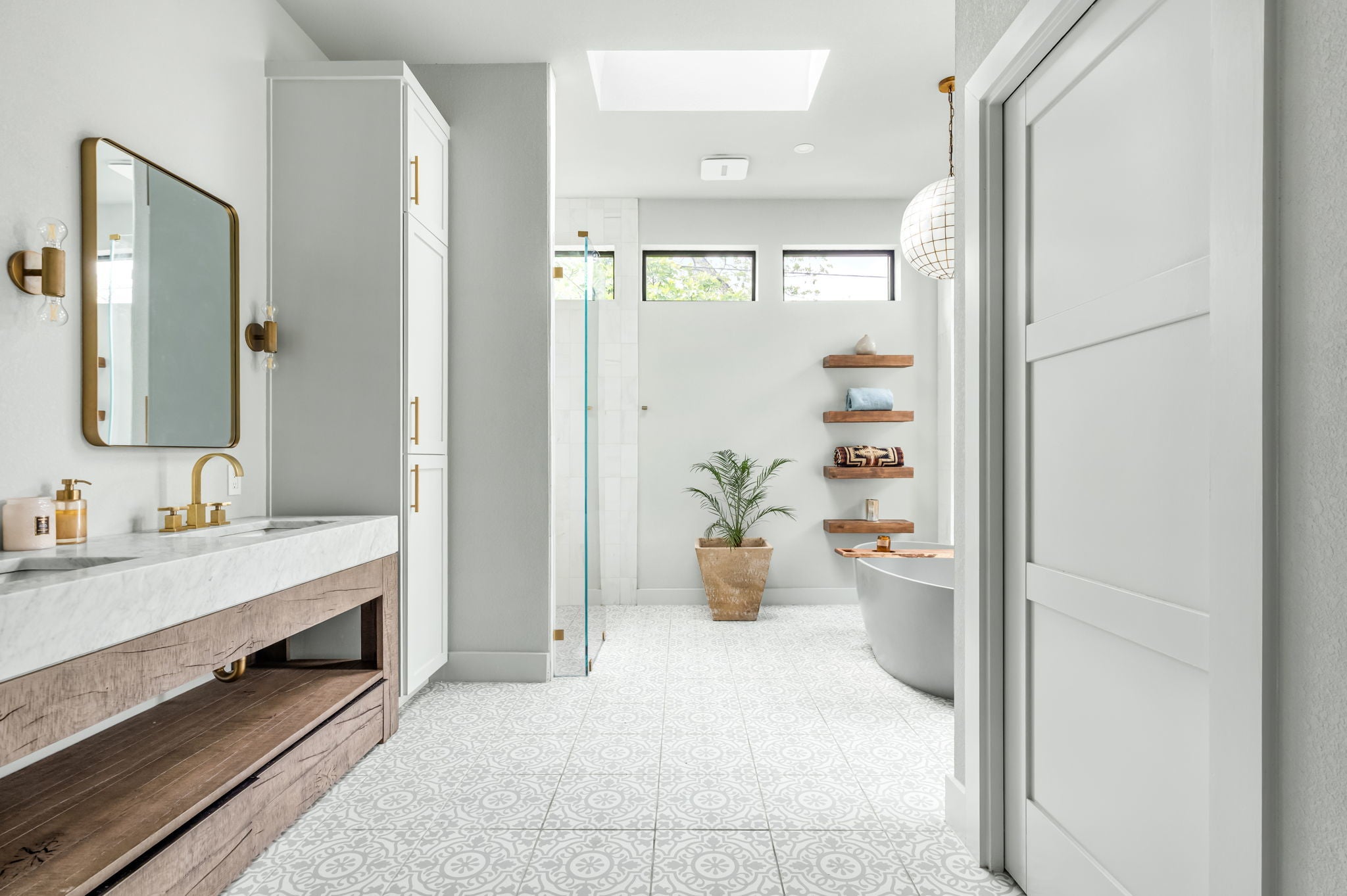 Urban oasis available now in walkable 78704. This beautifully updated home combines elegance, modernity, and old-school Austin charm. On the ground floor, you find an airy, open kitchen with Thermador appliances, high-end marble countertops, and an integrated wine fridge. The kitchen opens to a large dining and living room with multiple glass doors leading to a covered outdoor porch centered around a fireplace, making it the perfect venue for year-round entertaining. The backyard is a peaceful sanctuary with multiple fruit trees, chicken coops, and spaces for relaxing or entertaining. Also on the ground floor, you will find the recently added spacious primary suite with a glorious, spa-like bath featuring a freestanding tub beneath a skylight, along with a Restoration Hardware vanity and lighting. Upstairs are two additional bedrooms, one of which can serve as a second primary suite, complete with an additional washer/dryer, making the floor plan versatile. Every detail has been thoughtfully curated, making this home completely move-in ready in one of Austin’s most vibrant neighborhoods.