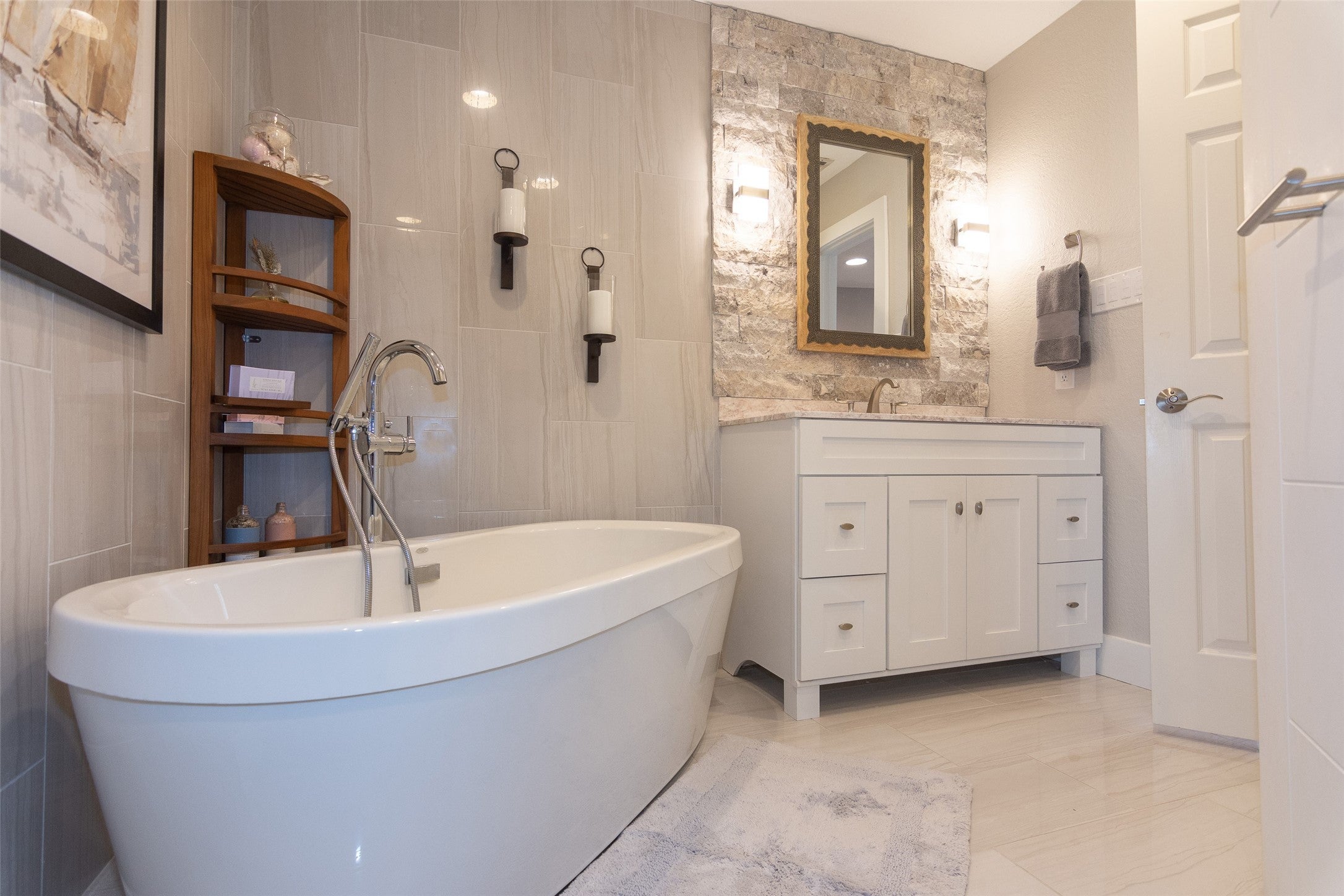 One of a kind luxury Corporate Rental in the heart of Tarrytown. Enjoy the the very best in luxury living in the quiet, but centrally located Tarrytown neighborhood. Blocks from the Capital, the University of Texas, multiple hospitals, Zilker Park, Ladybird Johnson Lake, and more. This 2 bed, 2 bath condo is beautifully appointed with Betula mocha hardwood flooring, hand-troweled walls, vaulted beamed ceiling, and natural brown and grey lueder stonework. A Lutron lighting control system allows one touch on/off scene control and dimming with up and down lighting providing the perfect ambiance for all occasions. The very best in interior decor has been curated from Fourhands, Sunpan, Steve Silver, and other fine manufacturers. To maximize tenant flexibility the office/bedroom can be staged with either a queen bed or Fourhands desk for an office setup. The perfectly convenient kitchen looks across an expansive bar directly into the vaulted family room for an expansive feel. The bar boasts a marvel wine cooler and kegerator that is tapped beautifully and discreetly through the bars granite surface To maximize tenant comfort both beds come equipped with the most comfortable mattress options on the market and are dressed in luxury Italian linens for true European Luxury Hotel comfort. The master bath boasts a soaking tub ensconced with spa touches from old world hanging candle sconces to the best turkish cotton bath towels on the market. The secondary bath is beautifully wrapped in tumbled stone with a walk-in shower with a rain-maker, spray wand and bench seat. Both bedrooms and the family room provide access to the private covered rear deck. Two designated parking spots convey with the lease. Optionally, the Marvel kegerator can be serviced with the tenants favorite brew of choice as well as bi-weekly cleaning service. Enjoy the neighborhood park pool, tennis courts, Lions golf course, fine dining, paddle boarding and all that Central Austin living offers.