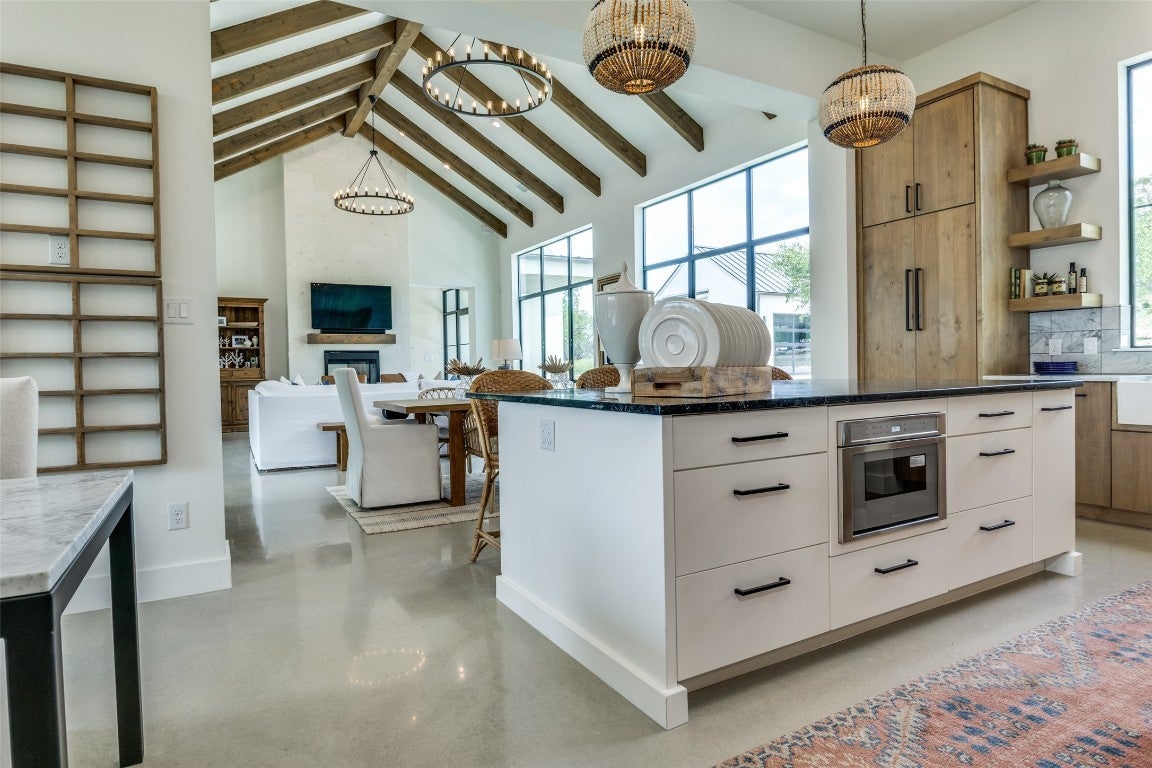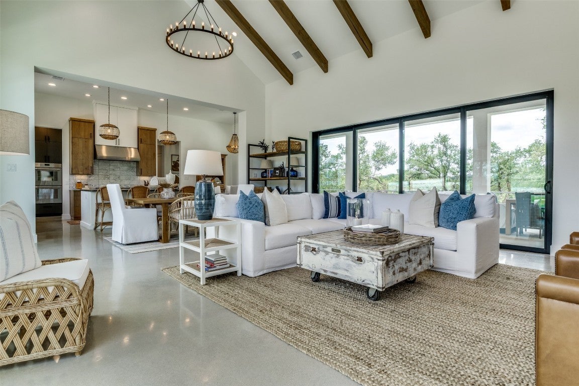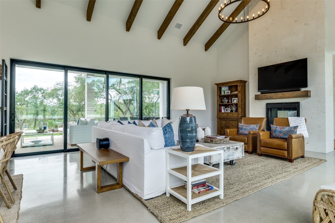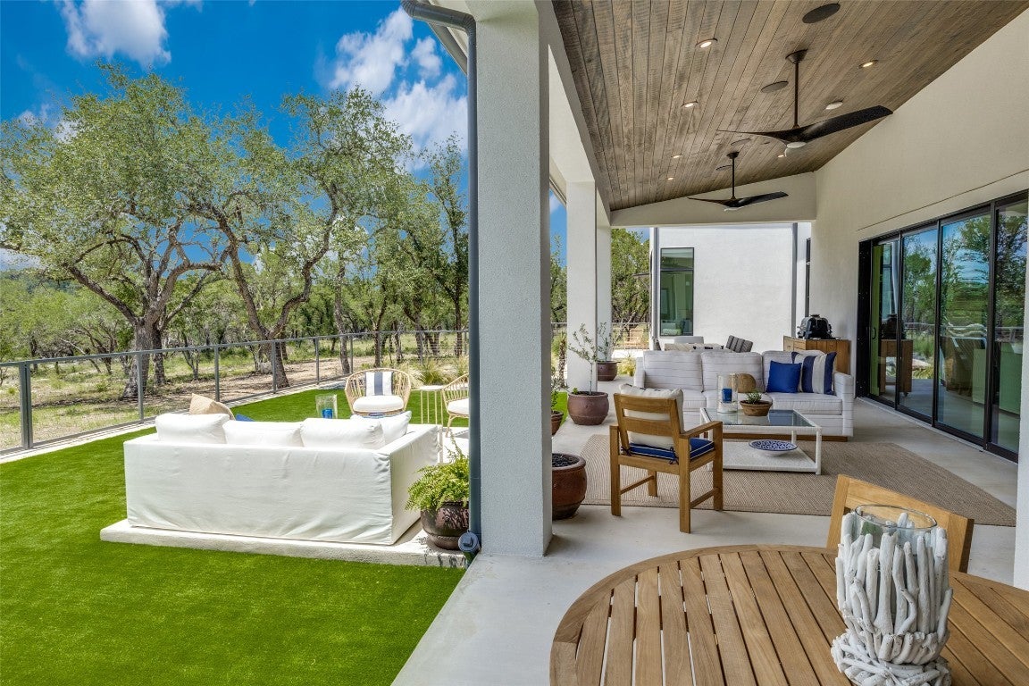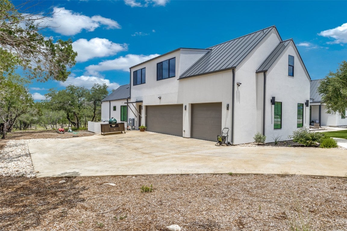 Here is your opportunity to own a piece of paradise! This breathtaking custom home is situated on a 4-acre lot within the scenic Hill Country of the newest exclusive gated community, Paradise on the Guadalupe. Located between Austin & San Antonio, near Canyon Lake, this gem truly offers luxury hill country living with Comal ISD premier Smithson Valley schools. This river lot boasts panoramic views & backs to a private secluded greenbelt & the Guadalupe River, within walking distance of two private parks, 100 acres of biking & nature trails, kayaking, fishing, tubing, & a wildlife preserve. The interior features include wood beams, soaring windows & ceilings, sliding glass doors, limestone walls, Ring-MyQ-Sonos Smart Home systems, Thermador appliances, Kohler & Brizo plumbing fixtures, soapstone & Bianco Carrara counters, modern concrete flooring, wood plantation shutters, Hunter Douglas PowerView shades, & designer finishes throughout. Exterior elements include a metal roof, half-round gutters, custom iron-cable fencing, & dark sky lighting. Enjoy the expansive land with acres of oaks, limestone, custom landscaping & hardscaping, artificial turf, & serene views from multiple exterior patios & porches. The 1/2 level includes an approx. 1,000 sq ft option for a livable finish-out w/ plumbed bath (Approx. 3,953 current total finished livable). A front detached structure offers additional enclosed parking with lawn & garden storage, stunning glass overhead door, & rough plumbing & electrical; the space could be finished out into a casita or guest house. Underground utilities offer unobstructed sight lines, & fiber optics provide seamless remote work opportunities. Entertain in the community River Lounge Pavilion with a kitchen, grills, bar, fireplace, TVs, & WIFI access. Enjoy the nearby local cultural scene with restaurants, boating, swimming, golf courses, wineries, & live music. This stunning property could be your perfect South Texas dream home or vacation retreat!