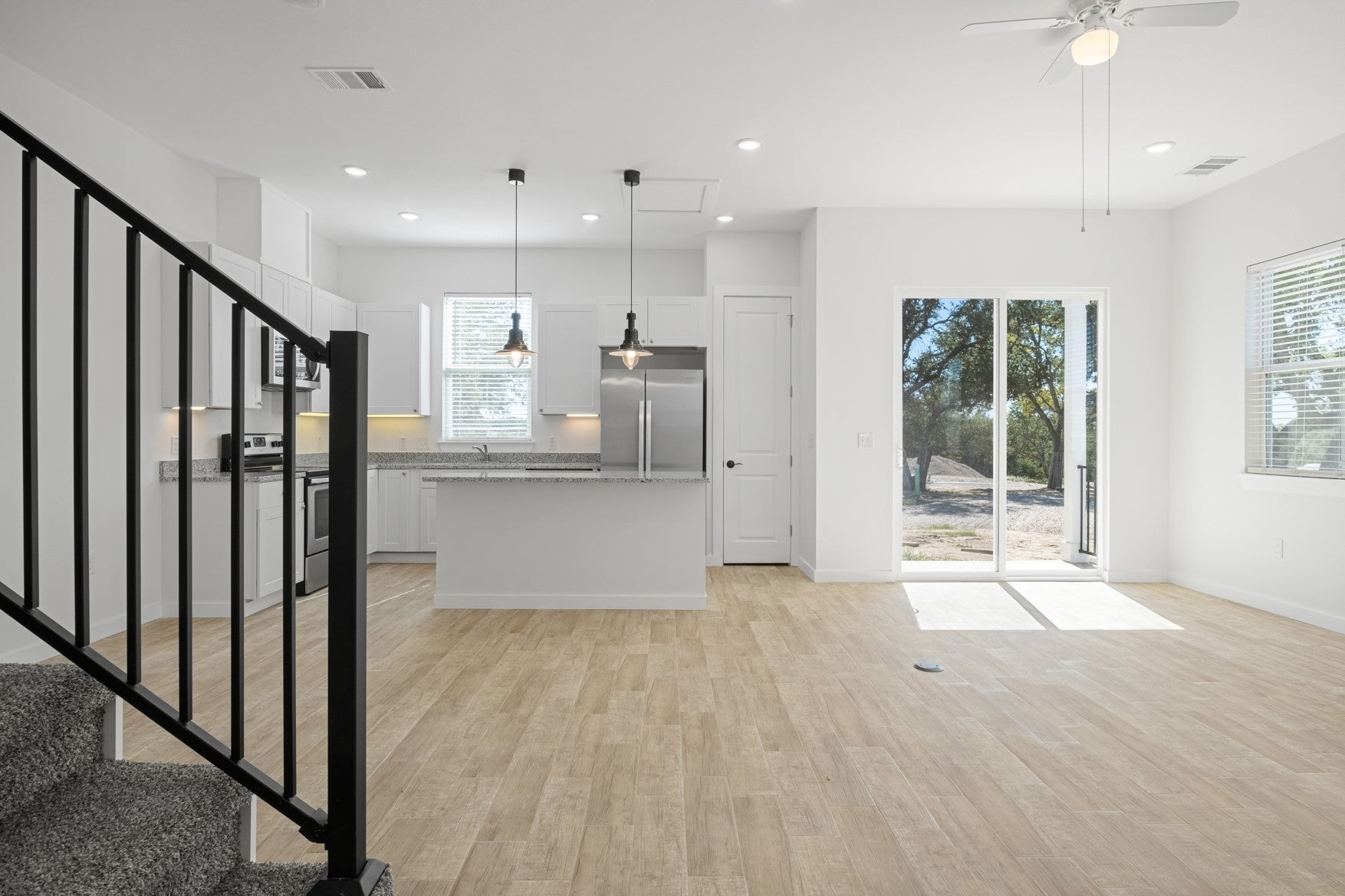 This newer construction, modern farmhouse condo rental is available in the heart of the Hill Country in Dripping Springs, TX for early March move in. With easy access to 290, but tucked away in the oak trees, this 1,500 sq ft condo townhome offers 2 full bedrooms, 2.5 bathrooms, and a bonus room - perfect for a nursery, office, or even could be used as a 3rd sleeping room. On the first floor you will find an attached 2-car garage, open concept living, kitchen, and dining, along with a half bath downstairs. On the second floor you will find the guest bedroom, bonus room with front-facing balcony, and guest bathroom on the frontside of the unit, and an expansive master suite on the back side of the unit. The master boasts vaulted ceilings, an impressive walk through closet, and beautiful en-suite bathroom with walk-in shower and dual sinks. Off the master you will find an second balcony, this one offering amazing views of a morning sunrise facing the back of the unit. A stackable washer and dyer is also located on 2nd level in the laundry room. The townhome offers beautiful natural light, crisp white walls, modern kitchen and bathroom finishes, and all bedrooms are located on the 2nd level. The unit also includes a 20x20 grassed area on the back of the property. Owner prefers a 12 month lease, 6mo available for premium, renter to pay all utilities, and small pets negotiable with additional deposit. Newer construction unit, just completed in 2021, unfurnished, fridge & w/d included! No smoking. Excellent location in Dripping Springs, just minutes from Mercer Street and located in DSISD near Walnut Springs, DSMS, and DS Highschool!