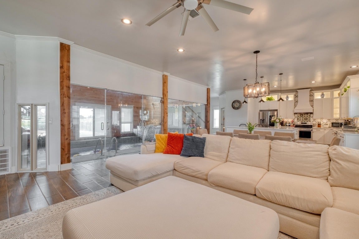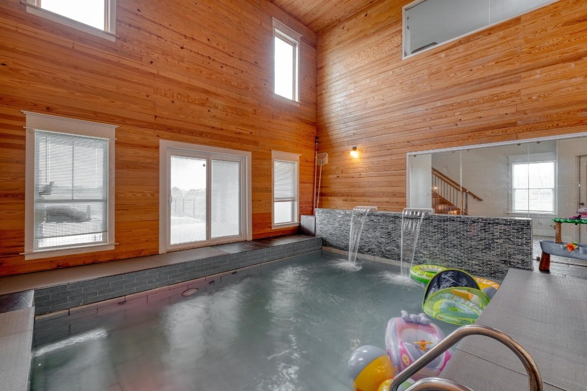 Custom-built modern farmhouse estate featuring three separate residences on 11 acres. The Main Home offers 5 bedrooms, 4 bathrooms, and approximately 3,800 sq ft. Built in 2021, it includes a gourmet kitchen with stainless steel appliances, marble countertops, crown molding, custom cabinetry, and a large center island. A highlight of the home is the indoor pool, finished with floor-to-ceiling wood paneling. Upstairs includes an additional living area, two secondary bedrooms, and a spacious primary suite featuring a luxurious full bath with a soaking tub, walk-in shower, and closet. The property also features two additional full-sized 2,000 sq ft homes, each having 3 bedrooms, 3 baths, and 2 kitchens. Built in 2022 and 2023, these residences are ideal for guest quarters, private living spaces, rental income, or Airbnb/short-term rental use. Because each home is already individually sited, the property offers strong potential for future subdivision into separate parcels. This rare offering combines luxury, flexibility, and income-producing opportunities—an exceptional property at this scale.