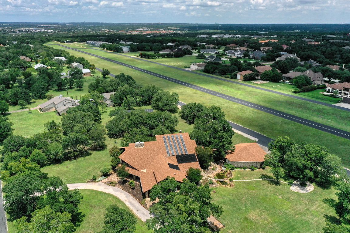 Come check out this rare gem in the heart of the Breakaway neighborhood in Cedar Park with direct access to Breakaway Private Airport and a private hangar attached to the home. The architecture and design of this home make it one of a kind. This home contains 5,008 Sq. Ft. of indoor living space and 1,858 Sq. Ft. Indoor pool and courtyard on 1.57 Acres. There are 4 bedrooms, 4 full baths, and a flex space/workout/yoga room with a sauna and full bathroom. When entering the front doors, you are greeted by high ceilings, a sunken fireplace sitting area, custom wood, and stained-glass features. The kitchen has unique built-in features including the pantry and breakfast sitting area. A spiral staircase leads up to the Gameroom that overlooks the kitchen and main living room area with a skywalk to the upstairs storage area. The highlight of the property is the indoor pool that is visible throughout the home. Fresh air can be drawn through the entire house by elevated windows that open by rolling latches. The garage features storage closets and cabinets; it includes a sink, workshop area, and an additional Cedar lined closet. The backyard patio area has two koi ponds with a bridge and waterfall feature. The covered walkway leads to the attached Hangar in the back of the home. The Hangar has a 2000 Gallon underground gas storage tank that is currently managed by the Breakaway Airport Association. Please reach out to the listing agent to set up a showing today.