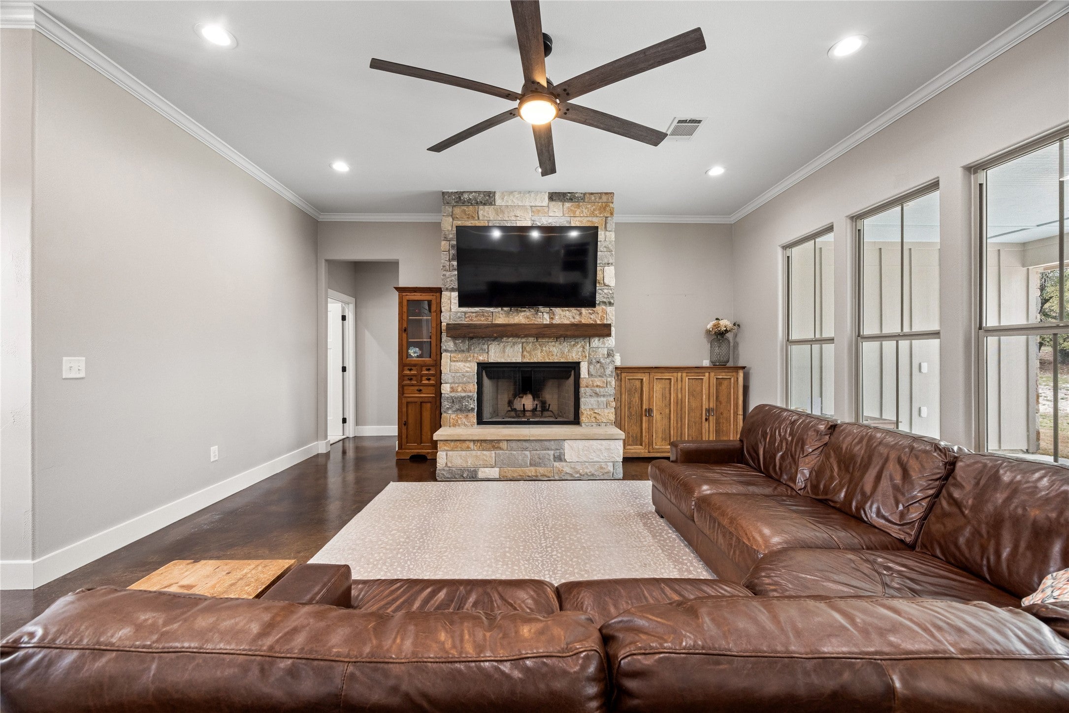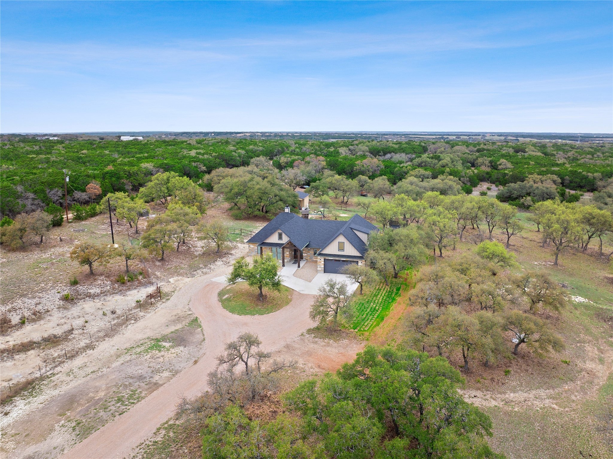 This beautifully newly built and well-maintained custom home offers the space and freedom that are becoming harder and harder to find. Situated on 6 ag-exempt, unrestricted acres, the property provides privacy, beautiful trees, and a quiet setting that feels like true country living while still being just minutes from town. The home features 4 bedrooms and 3.5 bathrooms, all located on the main floor in a practical split-bedroom layout that provides privacy for the primary suite. The main living area is open and welcoming with large windows that bring in natural light and views of the surrounding property. The kitchen is designed for everyday living with plenty of space to gather, along with a large walk-in pantry that connects directly to the garage—making unloading groceries simple. Upstairs, a 160 square foot bonus room offers flexible space that could easily serve as a media room, home office, workout space, playroom, or flex space. The home also includes an attached 3-car garage, providing plenty of space for vehicles, storage, or equipment. Outside, a covered patio overlooks the peaceful acreage, offering a great place to relax and enjoy the quiet setting. The property also includes a 20x20 shop ideal for projects, tools, or a small workshop. With no restrictions and an ag exemption already in place, the property offers flexibility that is becoming increasingly rare this close to Burnet. If you’ve been looking for a newer home with land, privacy, and freedom to use your property the way you want, you won't want to miss this one.