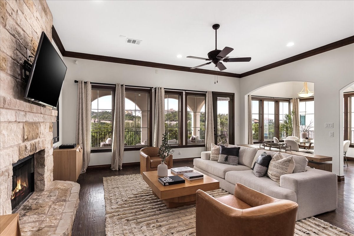 Welcome to 12900 Monte Castillo Parkway, from the moment you open the front door you are drawn to the beauty of the scenic panoramic views and your very own outdoor oasis with pool, spa and many outdoor patios and balconies to relax and enjoy. The ample windows throughout allow the home to be flooded with natural light, while bringing the beauty of nature inside. Since purchased in 2022 there have been extensive improvements including adding an additional 616 sq ft. and a luxury bedroom and bathroom remodel fit for a princess of any age. Please see the full list of improvements as there are far too many to note here. Home is situated in an exclusive small gated community and features a gourmet kitchen with multiple formal ,casual and outdoor dining spaces. There is plenty of room to spread out with two living areas, five bedrooms all with ensuite full bathrooms and an exquisite study. Let’s not forget about those fur babies! They will live in luxury here with their very own designated room with panoramic views and dog shower. This space could also be redesigned to fit whatever your needs may be... Home is conveniently located within 1/2 mile from the Iconic Oasis & Texas Lakeside Outdoor Mall and zoned for the top-rated Leander Schools. Schedule your showing today, this is a must see.