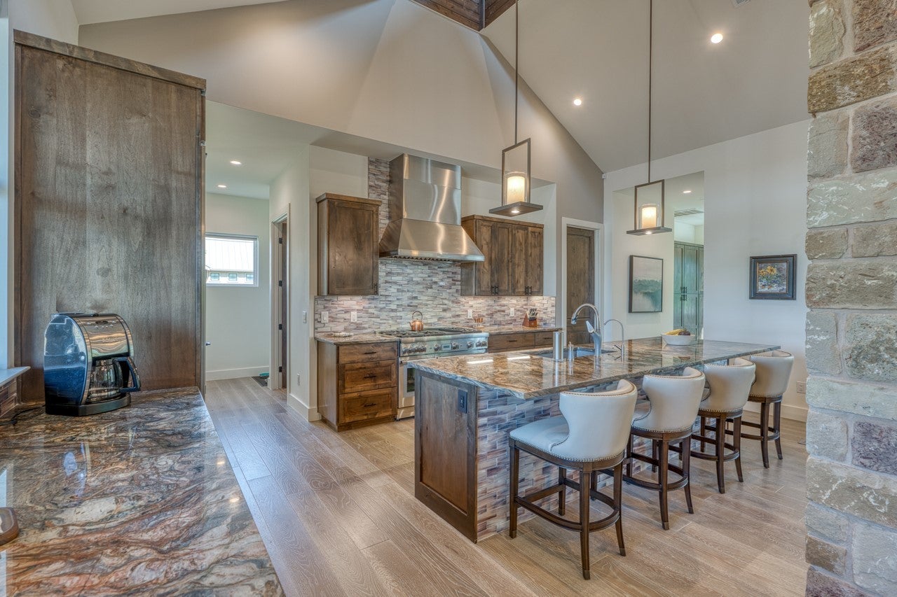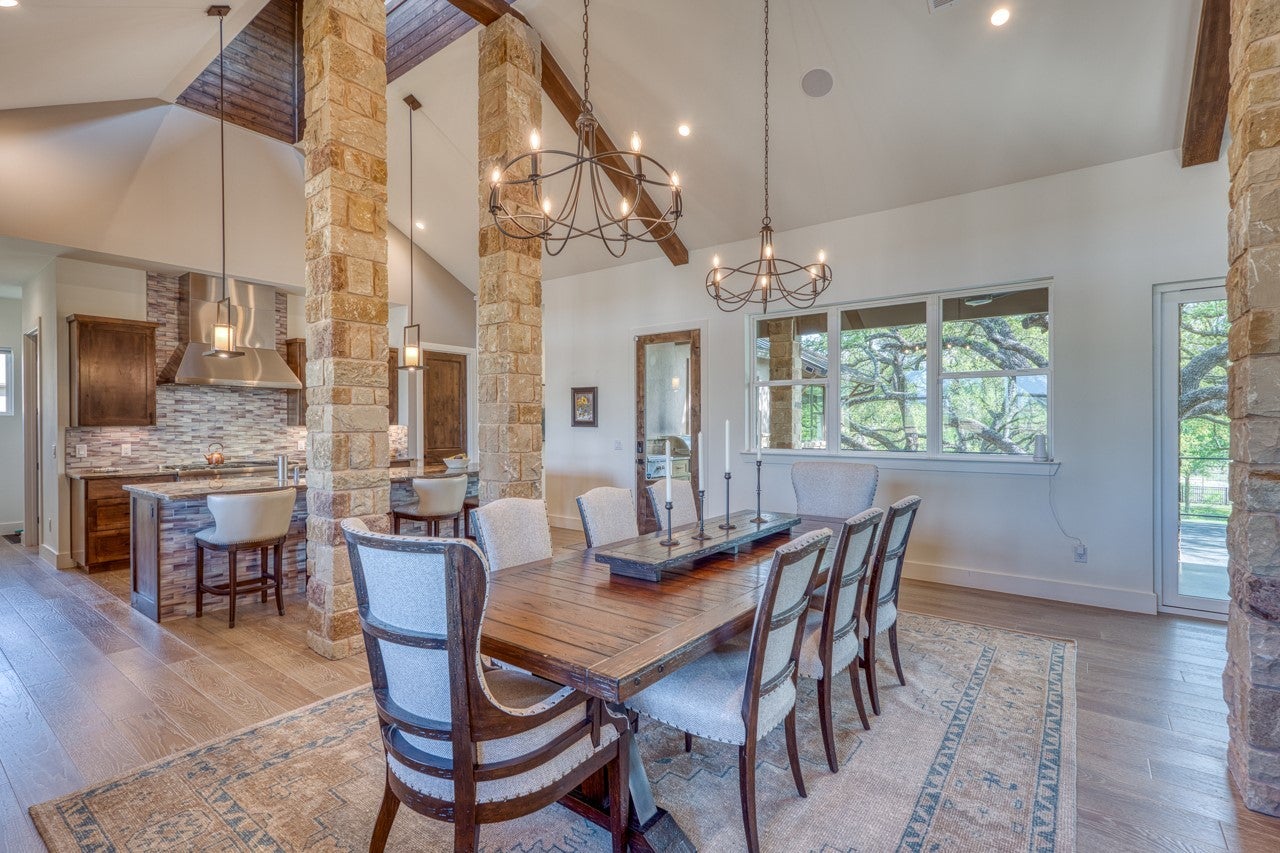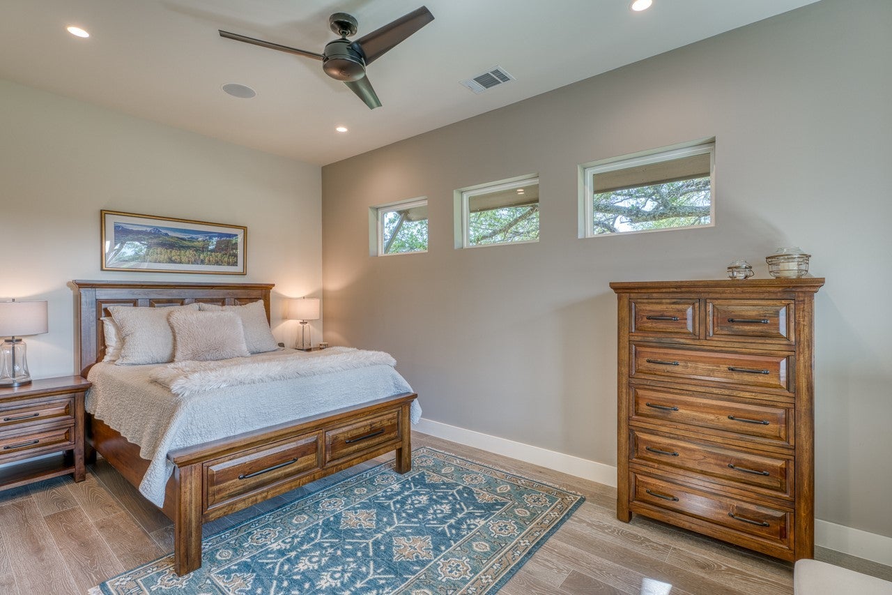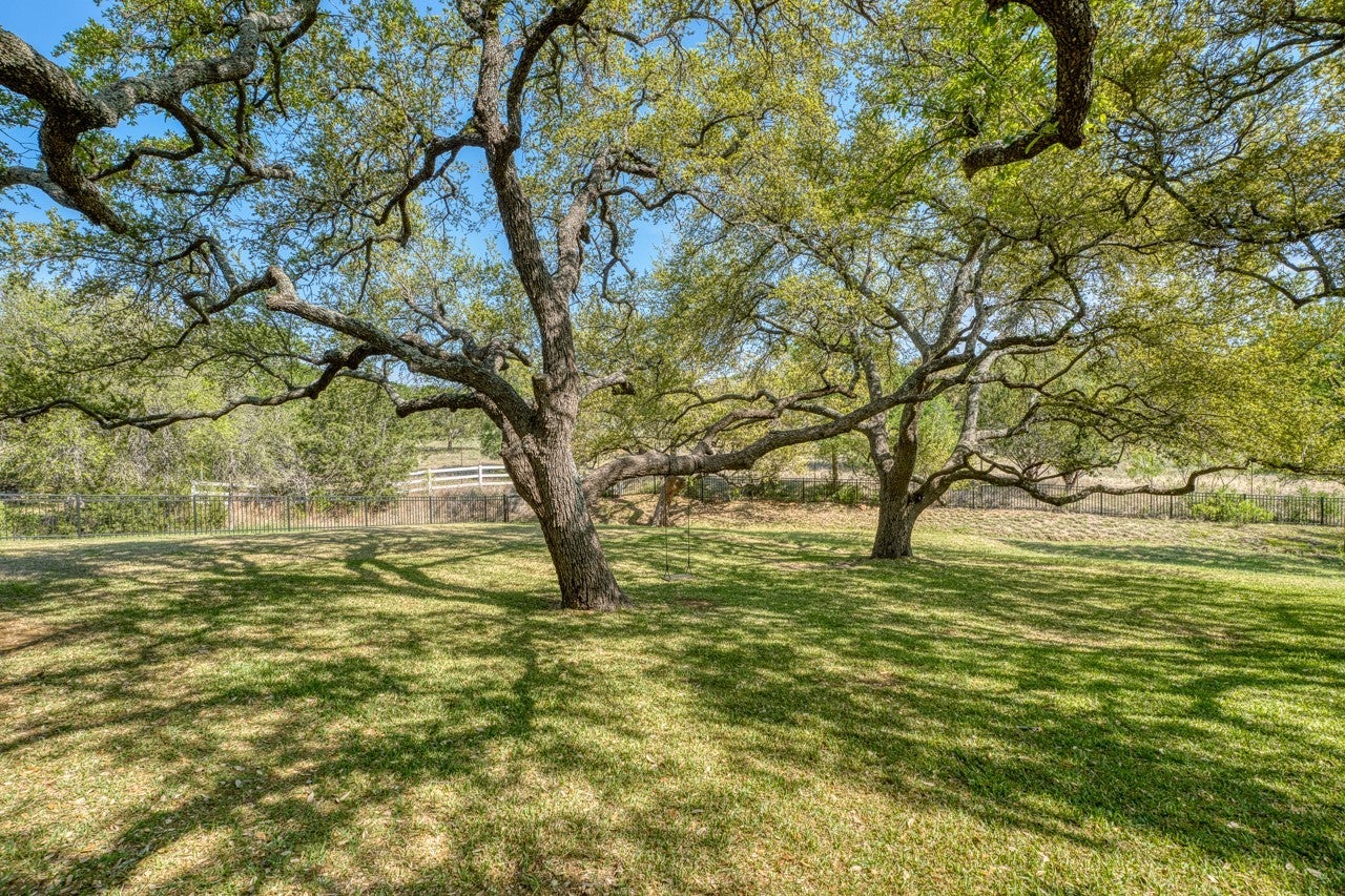 Welcome to 128 Westgate Loop — nearly an acre of lush Hill Country landscape where luxury meets the timeless soul of Texas. Soaring cathedral ceilings with custom cedar beams and dramatic showcase windows command attention the moment you arrive. Stunning AquaGuard Torino White Oak hardwood floors flow gracefully through the great room, anchoring a space crafted for grand entertaining and intimate evenings alike — cuddle up beside the gorgeous fireplace as the evening light fades over the Highland Lakes. The chef's kitchen dazzles with Brazilian Quartzite Fusion countertops and premium Thermador appliances, while the spa-inspired primary bathoffers pure indulgence — a Steamist TSG-15 steam shower and Jacuzzi Bellavista Whirlpool with 10 jets invite you to truly unwind. A secure steel-door safe room in the primary closet adds exceptional peace of mind. Step through the custom oversized sliding glass doors onto your TREX deck and into a fully fenced backyard sanctuary. Majestic Live Oaks spread their sweeping canopy across the grounds,offering beauty, shade, and permanence that only generations-old trees can provide. The fully appointed outdoor kitchen with CoyoteGrill makes this your ultimate entertaining oasis. Polk Audio MC80 surround sound flows throughout. The four-car garage handlesvehicles and lake toys with ease. CapRock Championship Golf Courses are just minutes away.