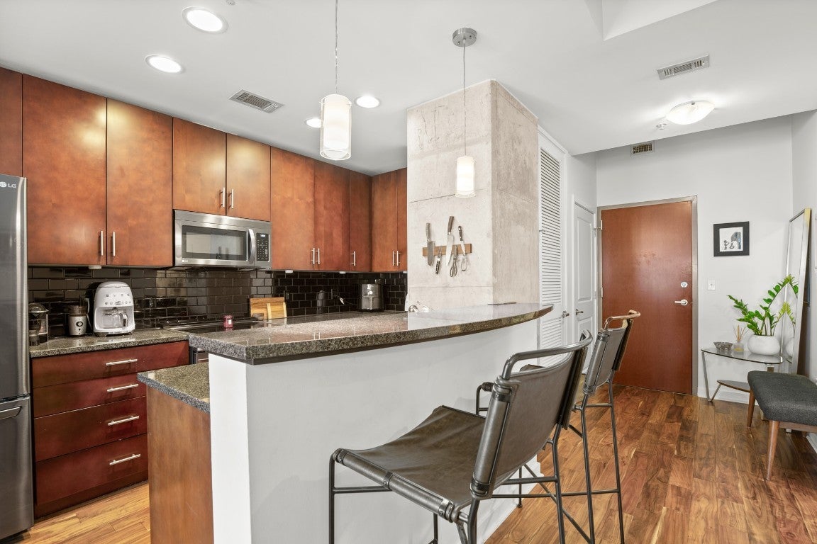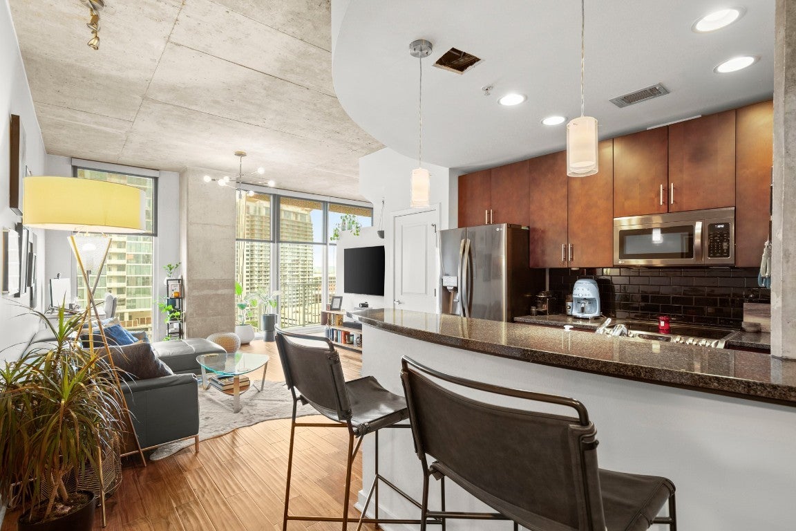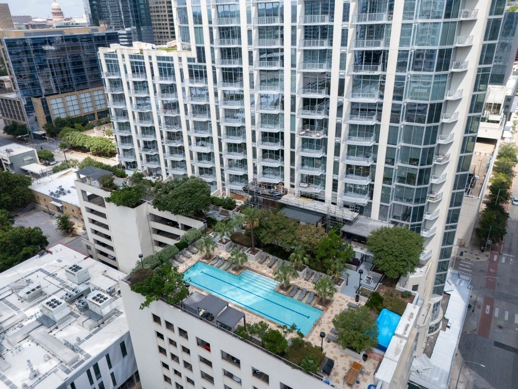 Welcome to Unit #1306 at the iconic 360 Condos—your chance to live in the heart of Downtown Austin with unmatched walkability, sweeping views, and high-end amenities. Perched on the 13th floor, this west-facing one-bedroom, one-bathroom residence is bathed in natural light thanks to floor-to-ceiling windows that frame breathtaking vistas of the city. Inside, the open-concept layout offers the perfect blend of spacious living and cozy comfort. Rich wood flooring flows through the main living area, and the modern kitchen is outfitted with granite countertops, stainless steel appliances, and generous cabinetry. The west-facing balcony offers a front-row seat to sweeping sunset views over the city skyline and surrounding Hill Country—an ideal spot to unwind after a long day. A stackable washer and dryer will convey with the sale, and the spa-like bathroom features modern tilework and excellent storage. 360 Condos offers resort-style amenities including a sparkling pool deck with expansive skyline views, a full fitness center, owners’ lounge, and 24-hour concierge. Reserved garage parking is included, and outside your door, the best of Austin is within easy reach. Savor local favorites like Polvo’s—an Austin staple just steps away—or grab essentials at the nearby Royal Blue Grocery, a modern urban market that’s beloved by locals. Whether you're seeking a vibrant city lifestyle or a sleek lock-and-leave retreat, this unit delivers an unbeatable downtown experience in one of Austin’s most desirable high-rises. Balcony repair has been completed and special assessment has been paid in full.