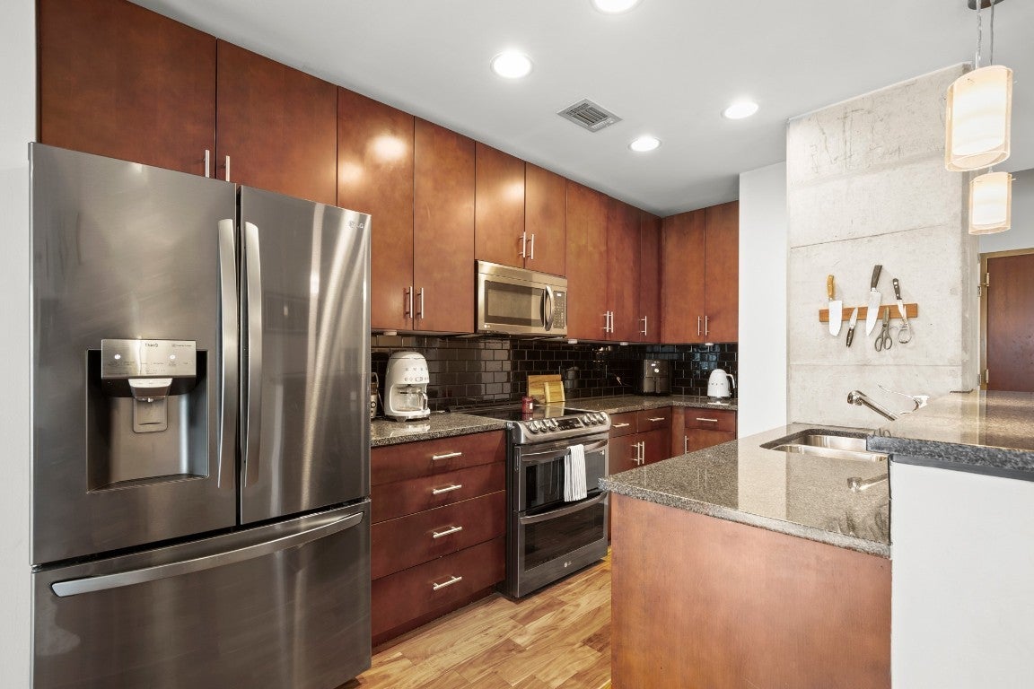 - Built-In Oven, Dishwasher, Free-Standing Range, Disposal, Microwave, Refrigerator, Washer/Dryer Stacked
