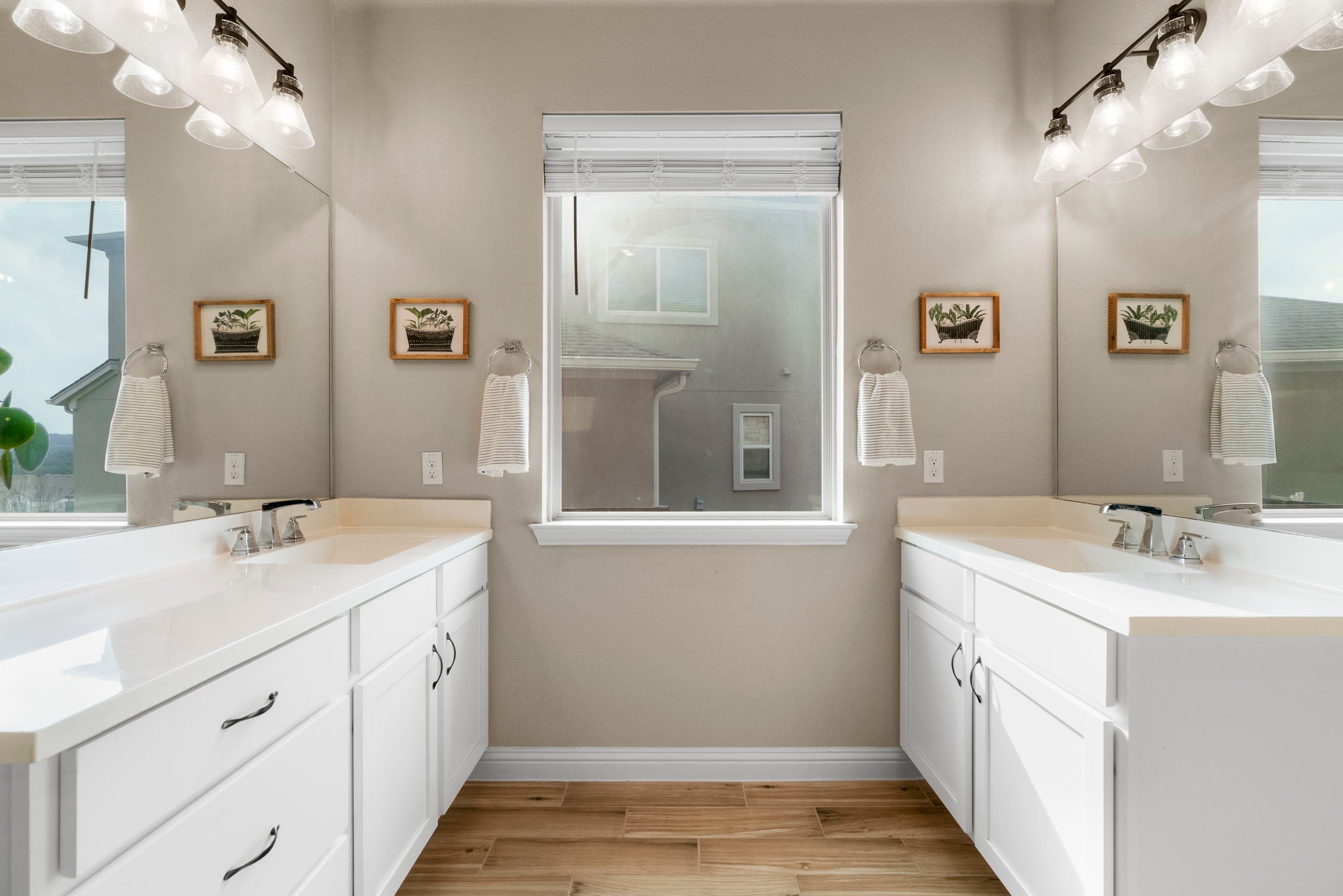 Welcome to 16628 Chevalin Street, a stunning residence in the highly desirable Provence community in Bee Cave, positioned within award winning Lake Travis ISD. This thoughtfully designed home features 2 bedrooms on the main level, including a spacious primary suite , and two additional bedrooms upstairs, creating ideal separation of space. The heart of the home is the beautifully updated kitchen with an oversized island, perfect for culinary gatherings, casual meals, and entertaining. Adjacent, an inviting flex space with a built in bar space offers versatility for a home office, play zone, or wine and cocktail area. The main floor primary suite is a luxurious retreat with a spa inspired bath and custom closet built ins. Upstairs, a generous second living area provides a perfect media room, play space, or lounge to suit your lifestyle. Step outside to your private backyard oasis with no rear neighbors, a sparkling pool and spa, and easy care turf , all enhanced by a built-in grill and fire pit for unforgettable outdoor living and entertaining. Located just minutes from the Hill Country Galleria with premier dining, shopping, and entertainment, this home combines tranquility, style, and convenience in one exceptional package.