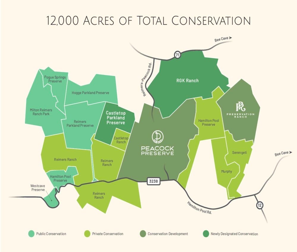 Nestled at the end of a quiet, secluded road, The Lookout offers the rare combination of total privacy and sweeping vistas within Preservation Ranch. This remarkable lot sits atop a long, heavily wooded ridge, bordered by deep canyons on either side and nourished by natural seeps and springs at their base—an environment alive with serenity and natural beauty. The thoughtfully designed drive ascends gently through the trees, revealing a private 2+ acre building envelope perched high above the canyon. From this vantage point, future owners will enjoy uninterrupted views across wooded hillsides, framed by the quiet of nature and highlighted each evening by dramatic sunsets to the west. With thousands of acres of surrounding land under permanent conservation—spanning county preserves, nature parks, and private easements—The Lookout offers an extraordinary sense of seclusion, enduring privacy, and the rare assurance that these sweeping Hill Country vistas will remain unspoiled for generations to come. Preservation Ranch is a unique community with only thirty-two individual ranchettes spread over 1,000 +/- acres of private, high-fenced hill country land. With miles of Bee Creek and other unnamed tributaries running throughout this area, you will not find another offering quite like this anywhere else, all within 15 minutes of the Hill Country Galleria, Whole Foods & HEB, restaurants, and shopping. The most striking benefit of living within Preservation Ranch is the lifestyle: Secluded, Private, and Elegant. Preservation Ranch is under a wildlife exemption maintained by the HOA, significantly reducing the property taxes. Horse lovers will appreciate the opportunity to board their horses nearby, as well as the nearby 2,400-acre conservation park with miles of equestrian trails. Every ranch in Preservation Ranch affords unique Texas Hill Country homesites to create the luxury estate and lifestyle you and your family will treasure for many generations to come.