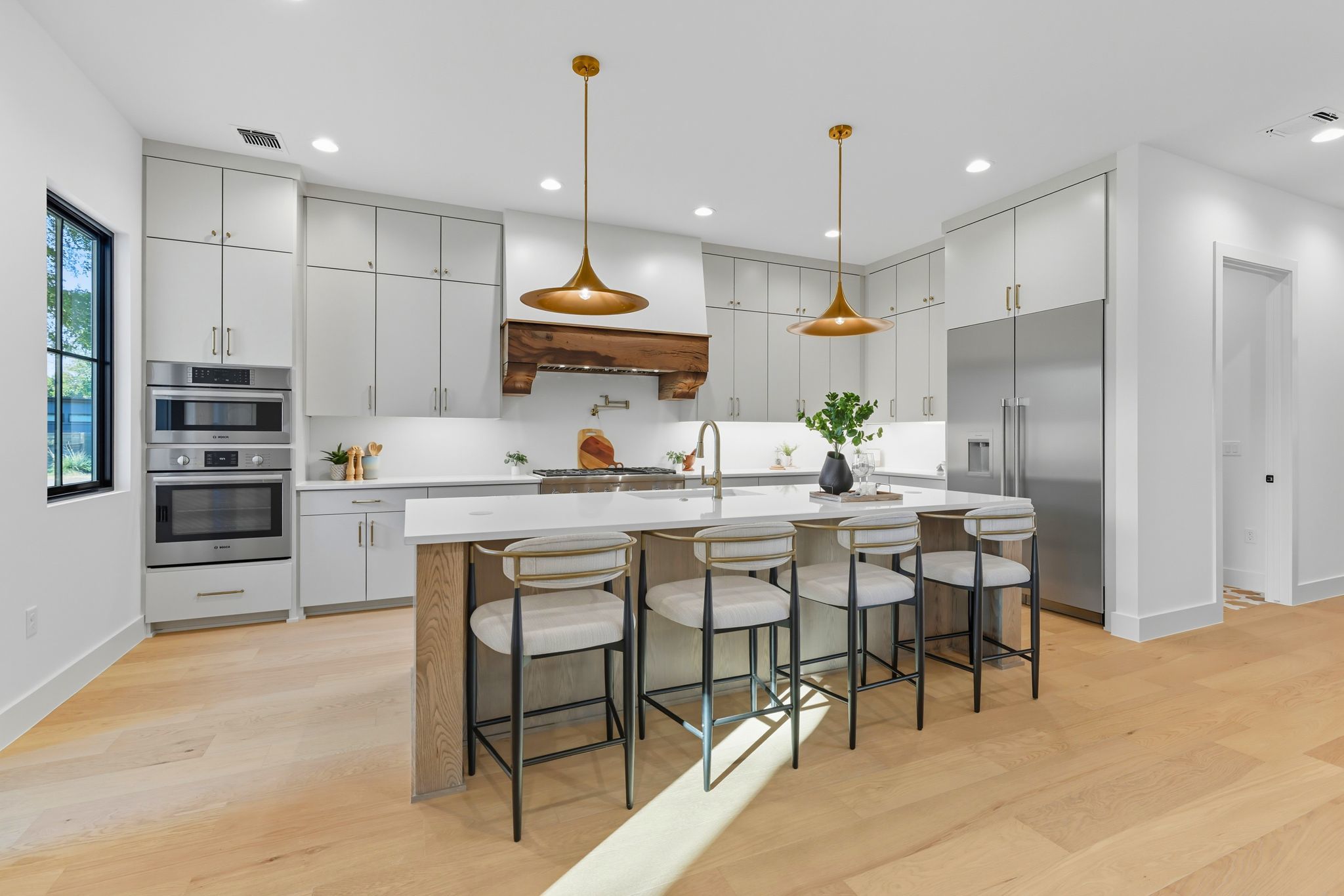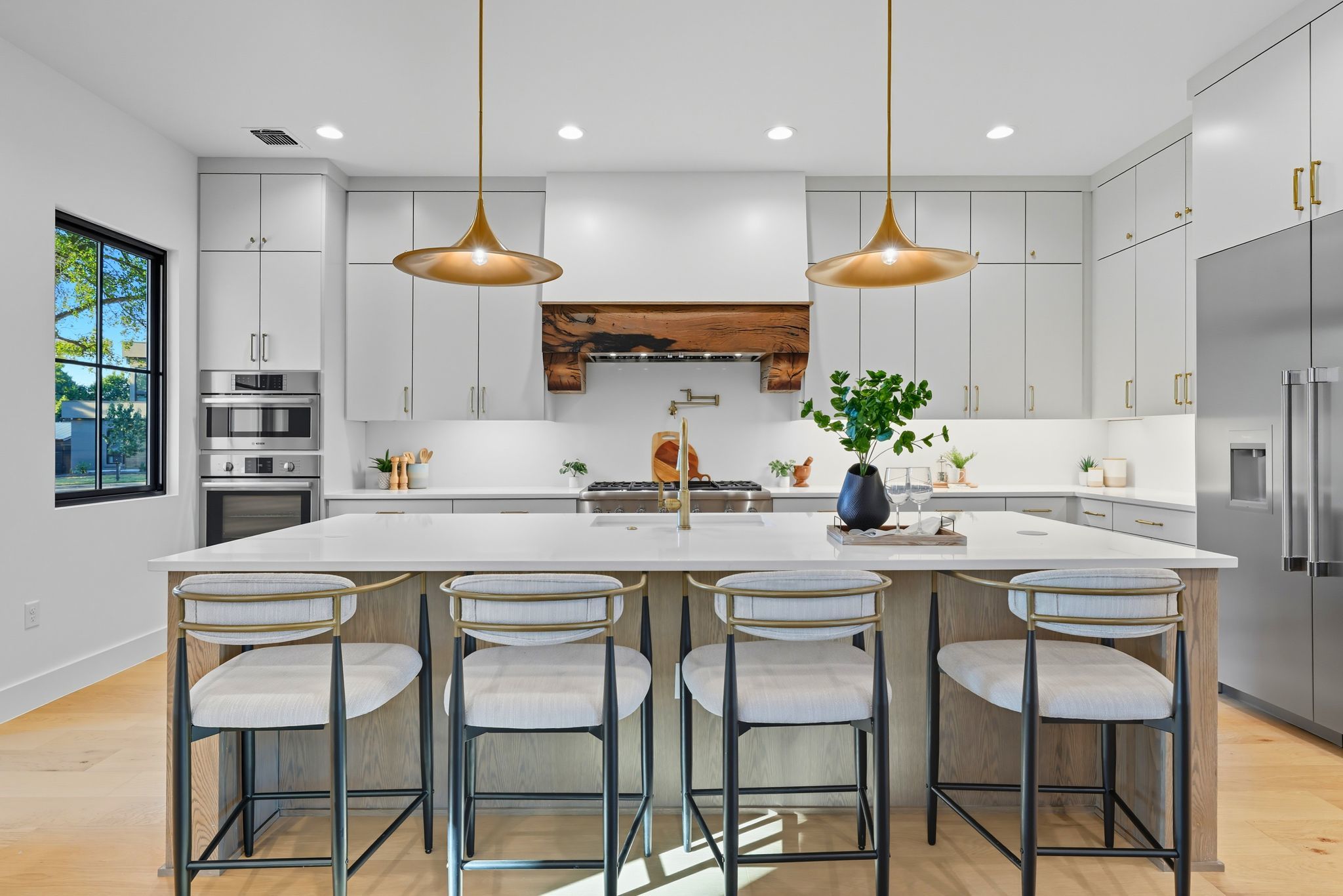 - Built-In Refrigerator, Dishwasher, Disposal, Microwave, Oven, Range, Range Hood, Stainless Steel Appliance(s), Vented Exhaust Fan, Wine Refrigerator, Tankless Water Heater