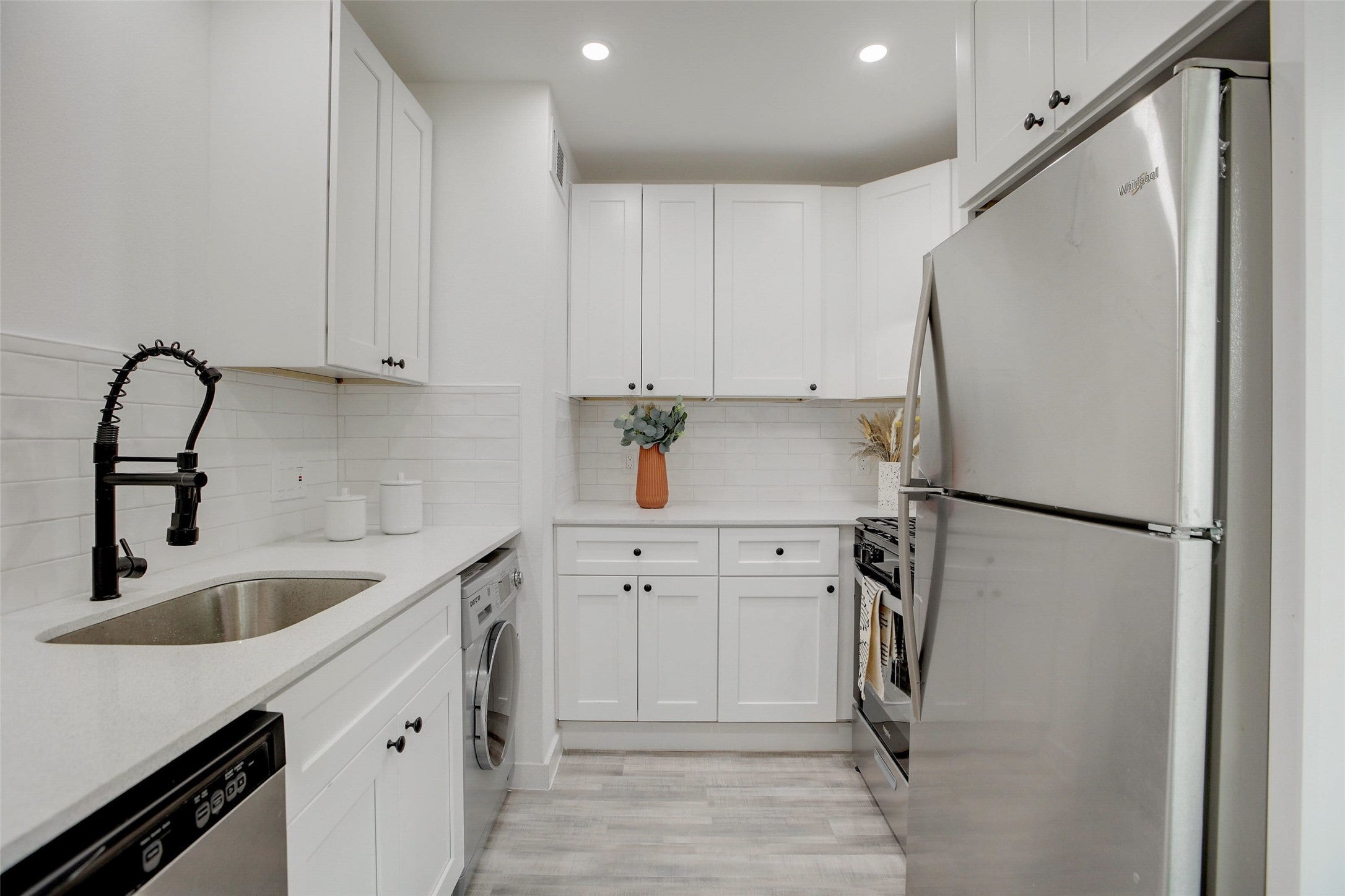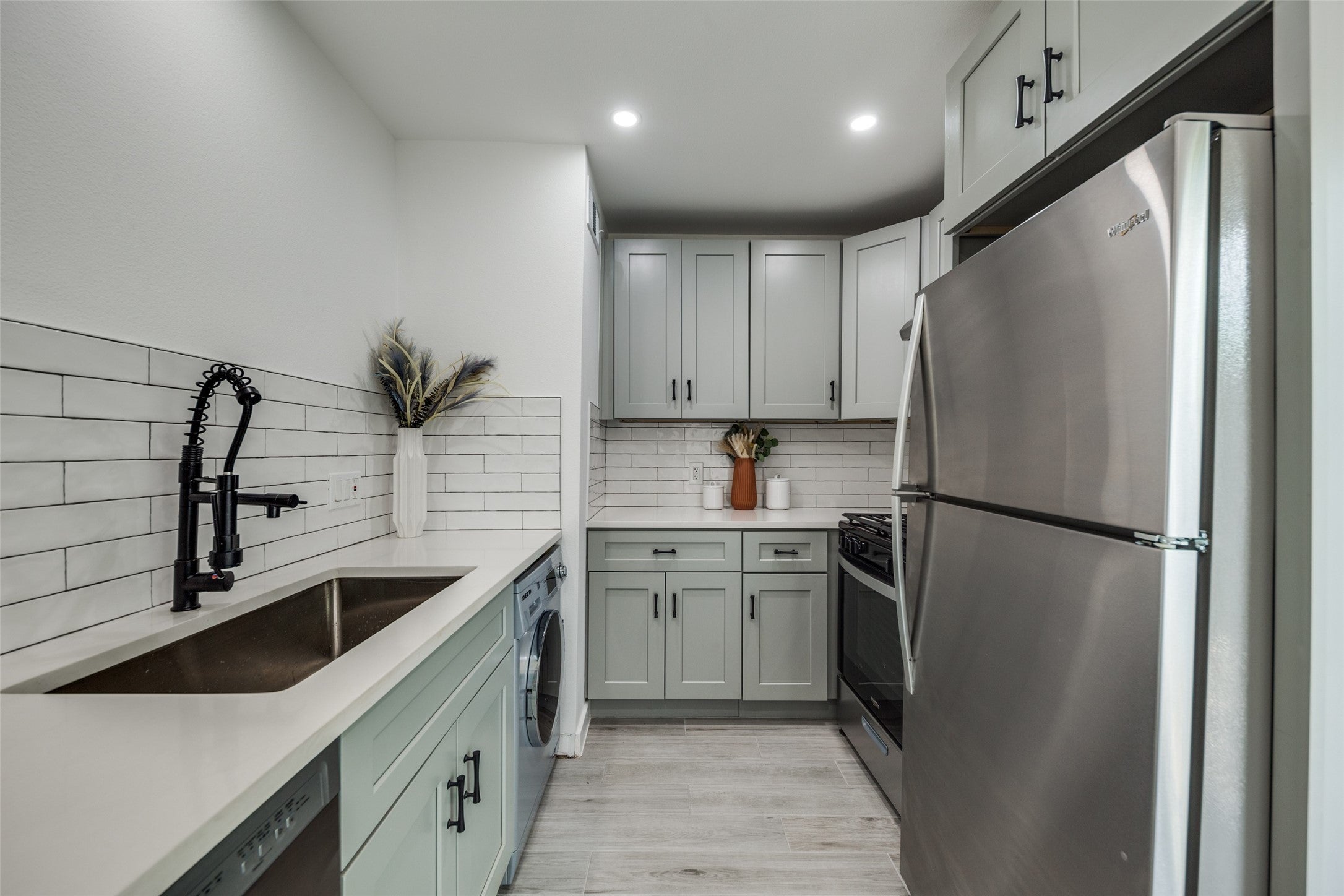 - Dryer, Dishwasher, Free-Standing Gas Range, Disposal, Gas Range, Stainless Steel Appliance(s), Washer, Free-Standing Refrigerator