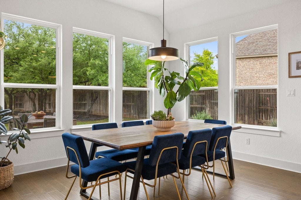 Rare home in the Platinum Heights section of Highpointe, with larger homes, larger lots and tons of upgrades! Everything is bigger in Platinum Heights! 4 Bedrooms | 5 Bathrooms | Office | Loft | 3142 Sq Ft | 3 Car Garage. This stunning Highpointe home sits on a spacious 0.35 acre lot backing to a greenbelt and is just minutes from Sycamore Springs schools. The property features beautifully updated landscaping, an extended driveway, and an impressive oversized covered rear porch that creates the perfect space for outdoor living and entertaining. Inside, the thoughtfully designed floor plan offers real wood flooring throughout the main living areas and an open concept layout filled with natural light. The kitchen serves as the heart of the home and features a large center island, quartz countertops, stainless steel appliances, and abundant cabinetry, all flowing seamlessly into the spacious living and dining areas. The primary suite is generously sized and designed as a relaxing retreat with a walk in shower, soaking tub, dual vanities, and a massive walk in closet. Secondary bedrooms are well sized and thoughtfully positioned for comfort and privacy. A dedicated office provides the perfect work from home space, while the upstairs loft offers additional flexibility for a playroom, game room, or second living area. Step outside to enjoy the extended covered back porch overlooking mature trees and greenbelt views, offering exceptional privacy and a peaceful setting. Residents of Highpointe enjoy incredible resort style amenities including multiple pools, a splash pad, fitness center, clubhouse, playgrounds, parks, sports courts, and miles of scenic hiking and biking trails. The home is also conveniently located near Belterra Village where shopping, restaurants, and medical offices are just a short drive away. 3142 is the livable sqft, plus the additional 651 sqft 3 car garage!