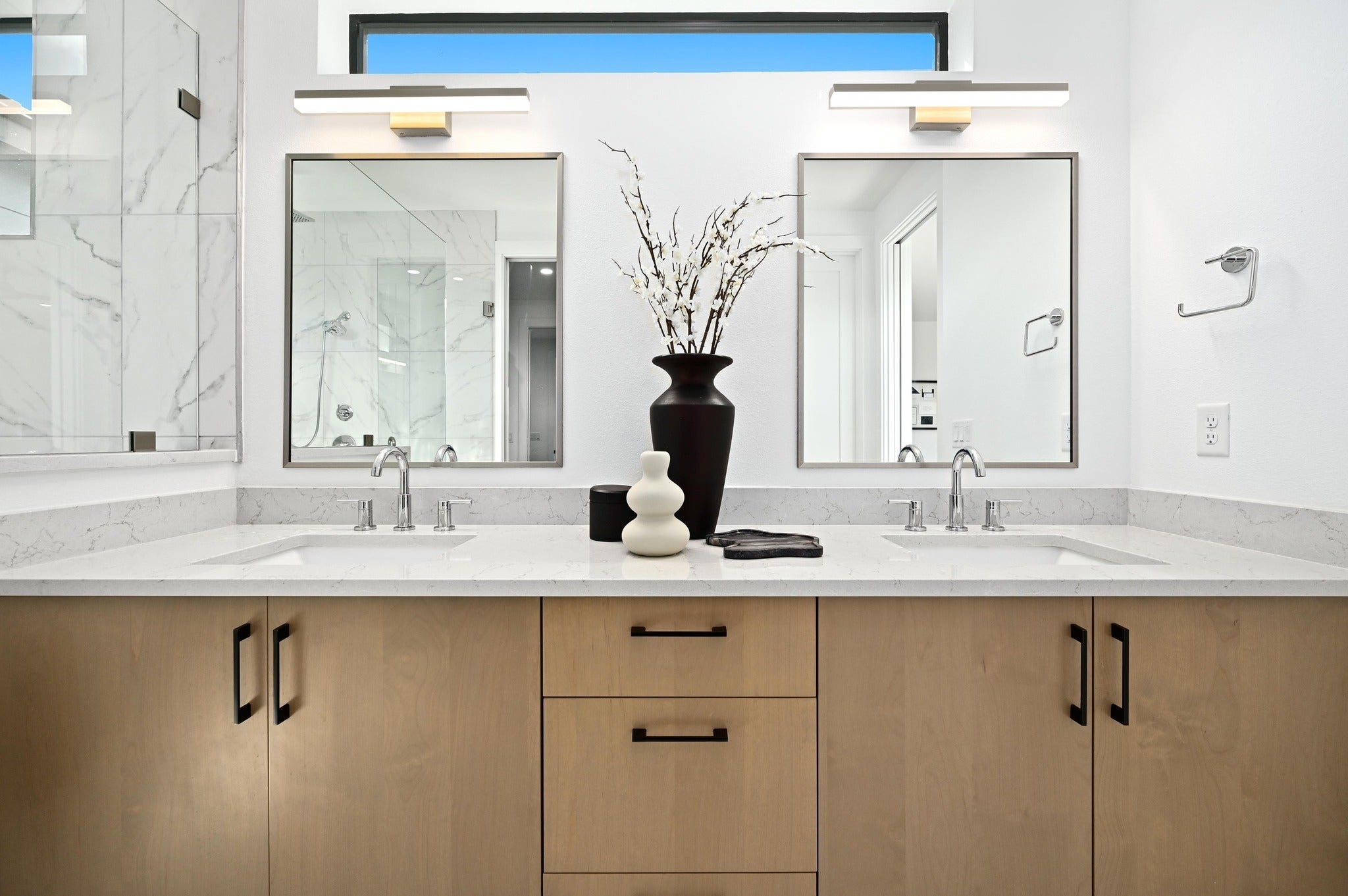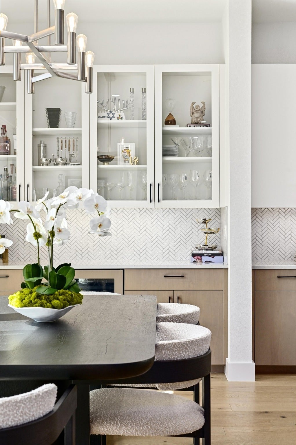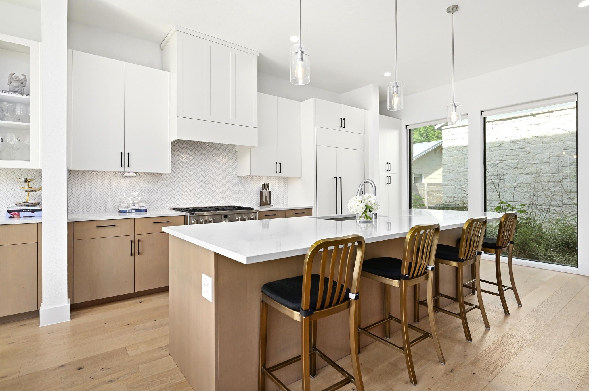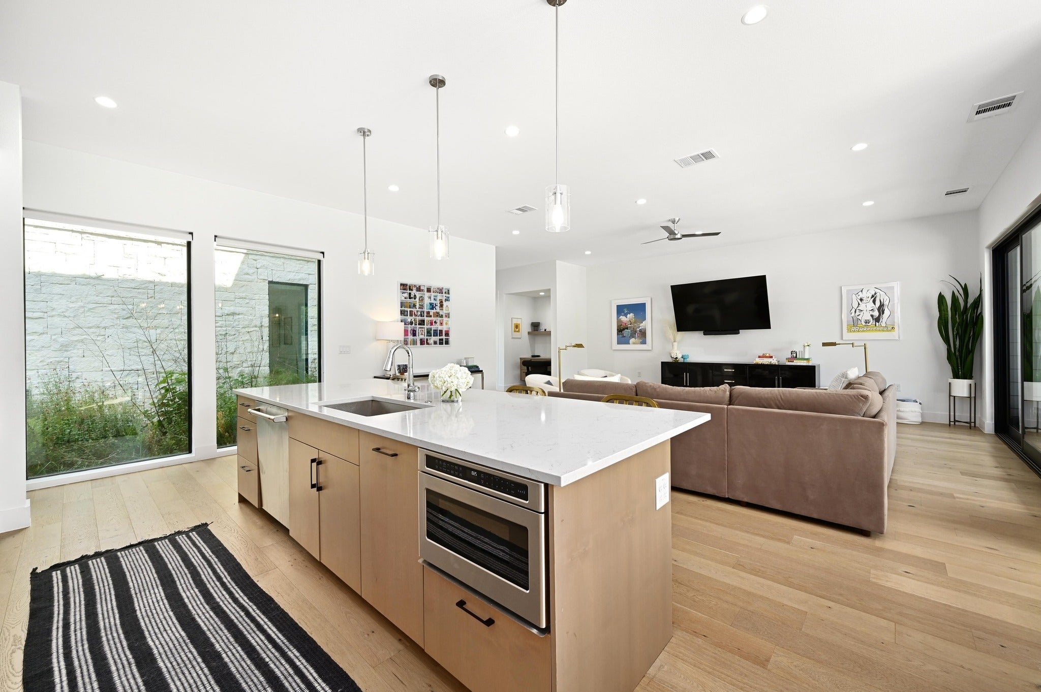 Sophisticated home in the heart of central Austin featuring an open-concept and designer finishes throughout. Just minutes from Austin’s best dining, this home combines contemporary style with everyday comfort! Energy efficient kitchen appliances fill the gourmet kitchen, while offering breathtaking views of the lush backyard framed by oversized picture windows. A built-in bar with glass cabinetry and a wine fridge makes this the perfect dining space for entertaining. Multiple work from home options with a downstairs front office in addition to the built in desk feature just off the main living area. The upstairs primary retreat is a tranquil haven with direct access to the marbled spa-inspired bath featuring a walk-in closet, soaking tub, and conveniently attached utility room. Enjoy an outside private oasis with sparkling pool and spa combo — perfect for summer days and fall evenings!