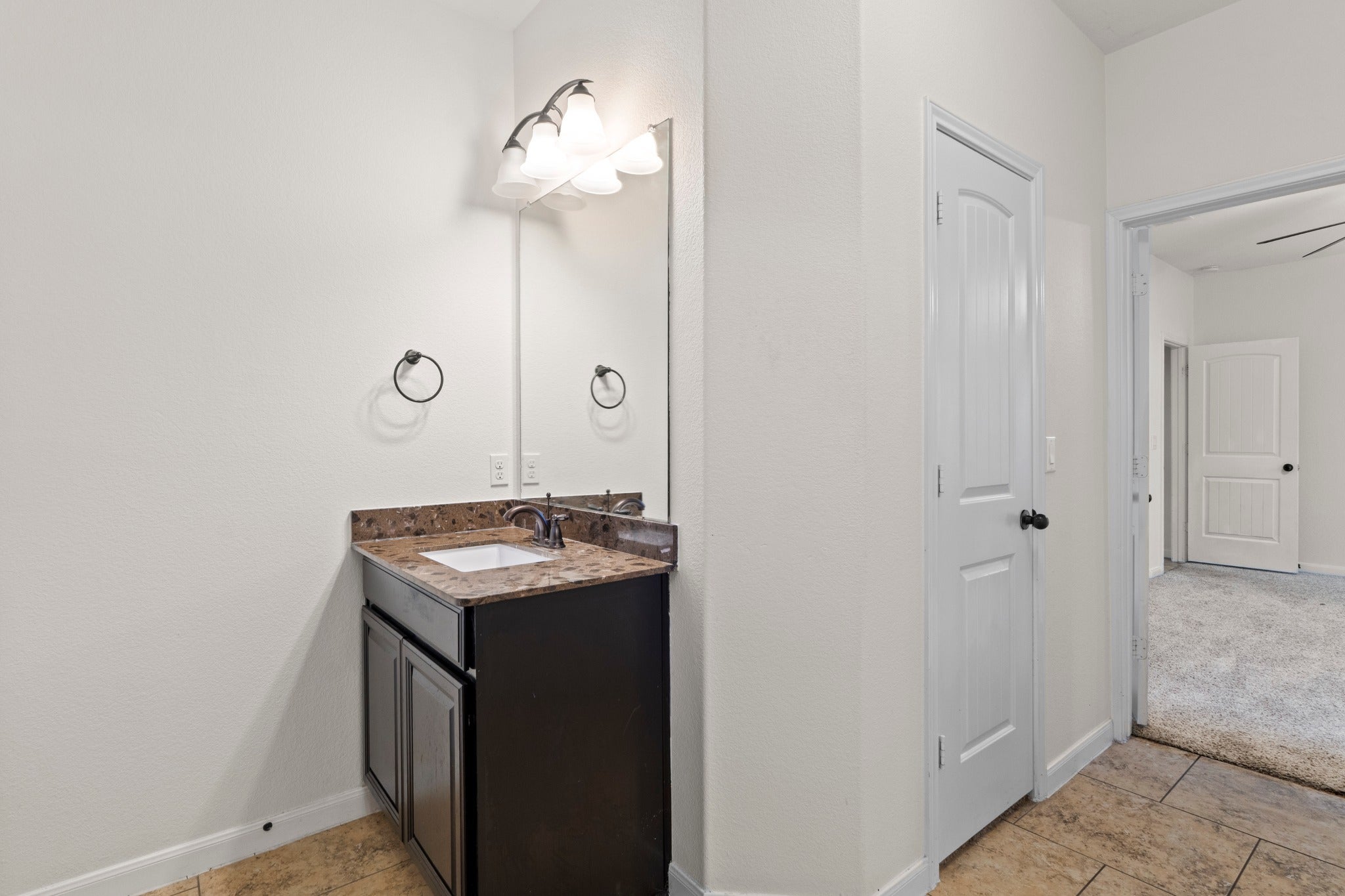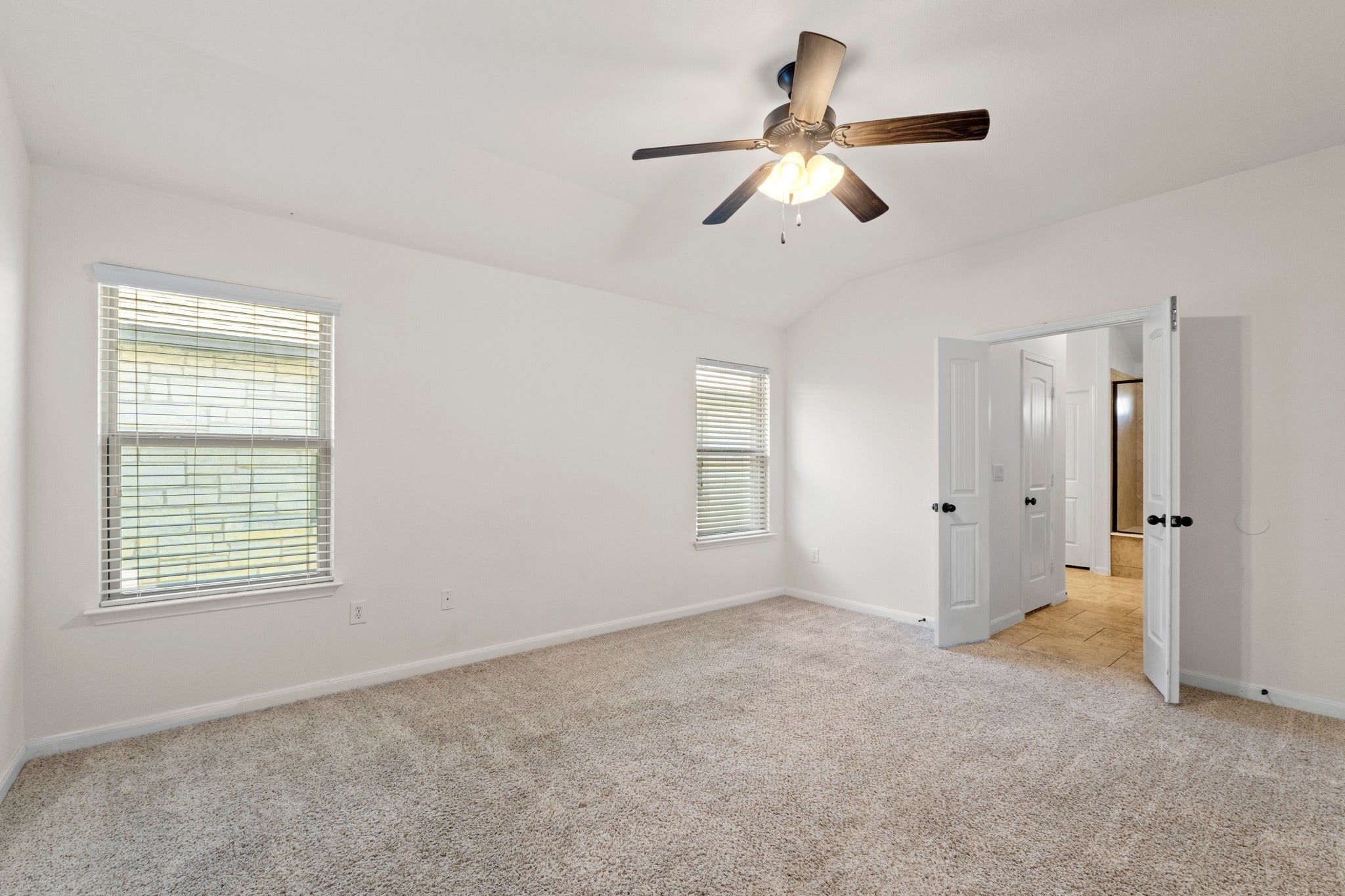 Spring is the perfect time to settle into this beautifully designed three bedroom, two bathroom home in Leander. With bright interiors, spacious living areas, and access to great community amenities, this home offers comfort, style, and a welcoming place to enjoy the season. As you arrive, you are greeted by a charming brick exterior, a covered entry, and a two car garage that create great curb appeal. Inside, the home opens into a spacious foyer that leads into a large open living area filled with natural light. The living room features high ceilings, recessed lighting, a ceiling fan, and a modern accent wall that adds character while keeping the space bright and inviting. The kitchen is designed for both everyday living and entertaining with rich dark cabinetry, granite countertops, stainless steel appliances, a gas range, and a large island with a sink and bar seating. Pendant lighting above the island adds a stylish touch while the open layout keeps the kitchen connected to the dining and living areas. A built in desk area nearby provides a convenient space for a home office, study nook, or household organization. The primary bedroom is generously sized with large windows and soft carpeting that create a relaxing retreat. The ensuite bathroom offers dual vanities with granite counters, a large tiled walk in shower with glass doors, and a spacious walk in closet with built in shelving. Step outside to a covered back patio overlooking a private fenced yard, perfect for enjoying spring mornings or relaxing evenings outdoors. Residents also enjoy access to a sparkling community pool and playground, making it easy to enjoy warm Texas days close to home.