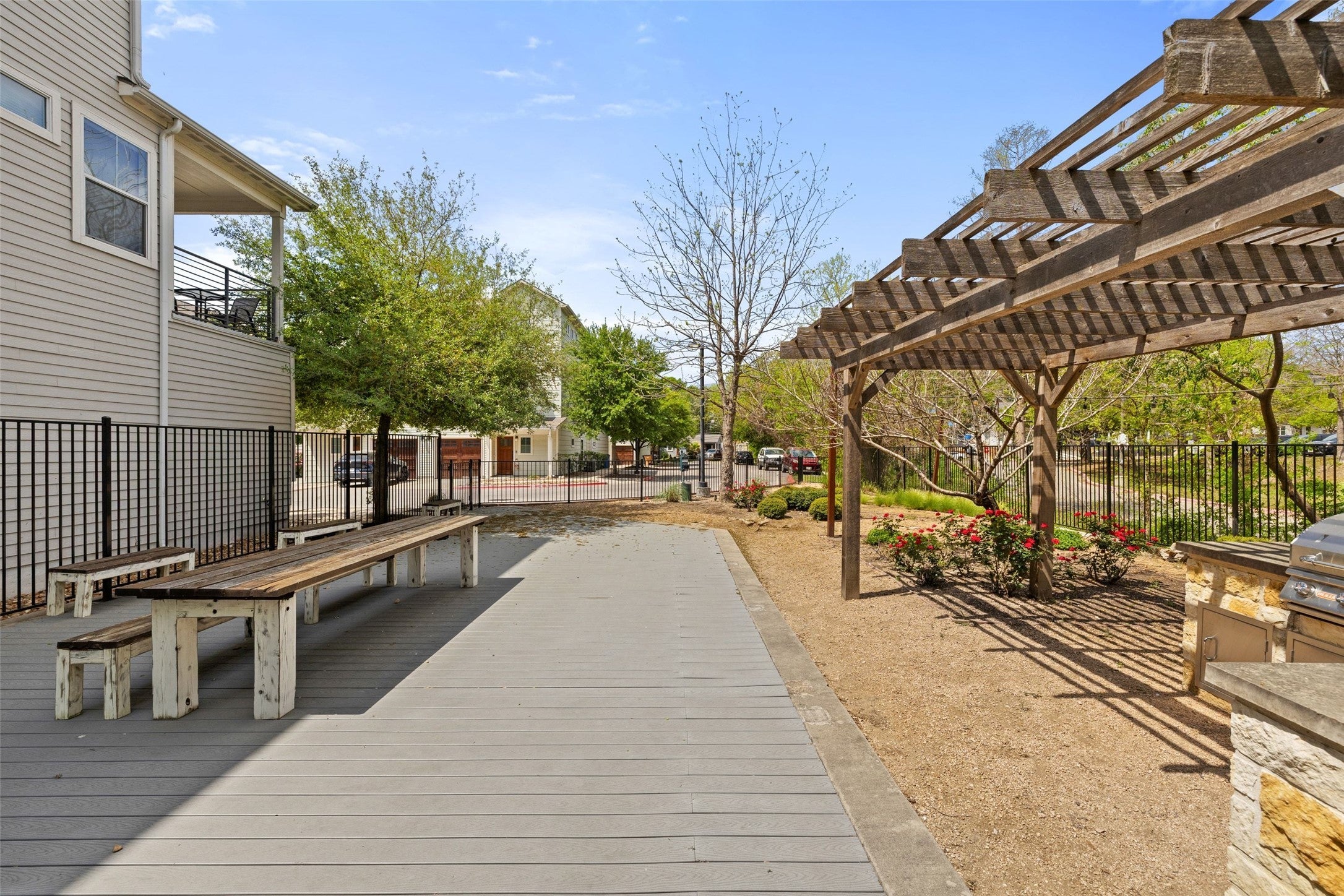 Welcome to The Orchard, East Austin Living at Its Finest Located in one of East Austin's most sought-after condo communities, this beautifully designed 3-bedroom, 2.5-bath free-standing home at The Orchard Condominiums offers three levels of thoughtful living with style, privacy, and an unbeatable location in the heart of 78702. The entry level welcomes you with two secondary bedrooms, a shared dual vanity bathroom, a cozy living area, and direct access to the single-car garage with an additional parking spot in front. Head upstairs to the stunning main living level where soaring ceilings and abundant natural light set the tone. The open-concept layout seamlessly connects the living, dining, and kitchen spaces, perfect for entertaining. The kitchen features stainless steel appliances, gas cooking, elevated countertops, and a breakfast bar. A perfect space to relax or entertain and take in the beauty of the outdoors as this space flows to a covered patio for effortless indoor-outdoor living. The top floor is your private retreat. The generous primary suite offers two walk-in closets, a spa-inspired ensuite with dual vanities and a walk-in shower, and access to a covered side porch with serene, private views, a rare luxury in the city. Built in 2015 with quality finishes throughout, this home is move-in ready and available furnished or unfurnished. Refrigerator, washer, and dryer are included with the lease. Steps from Austin Bouldering Project, Veracruz, HEB, and the best of East Austin's dining, nightlife, trail systems, public transportation, and Lady Bird Lake; this home checks the boxes at a compelling price point for the community. Available now. Schedule your showing today.