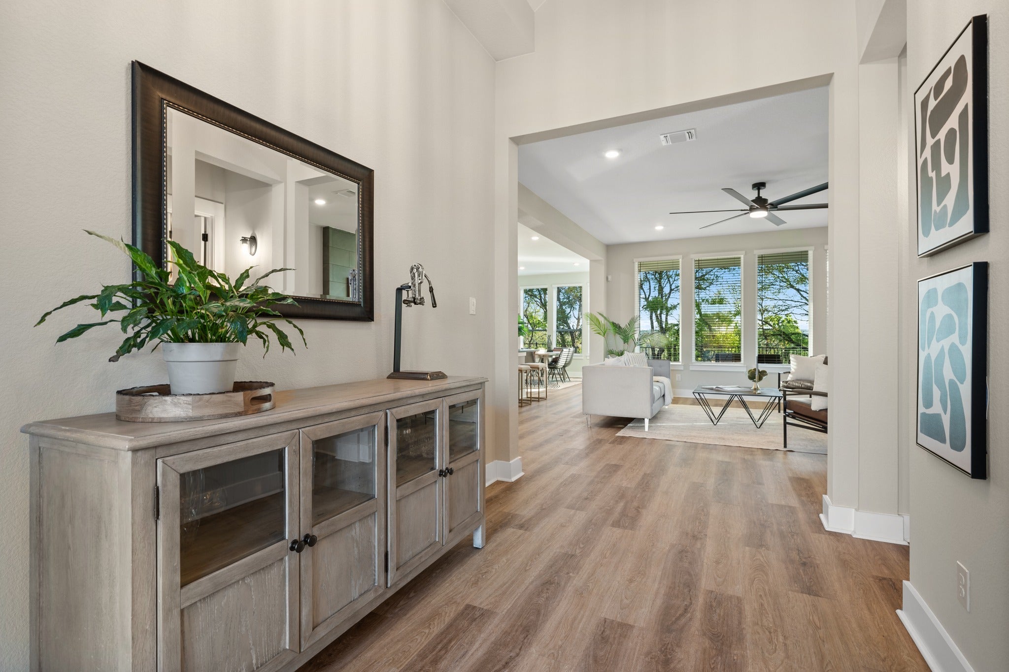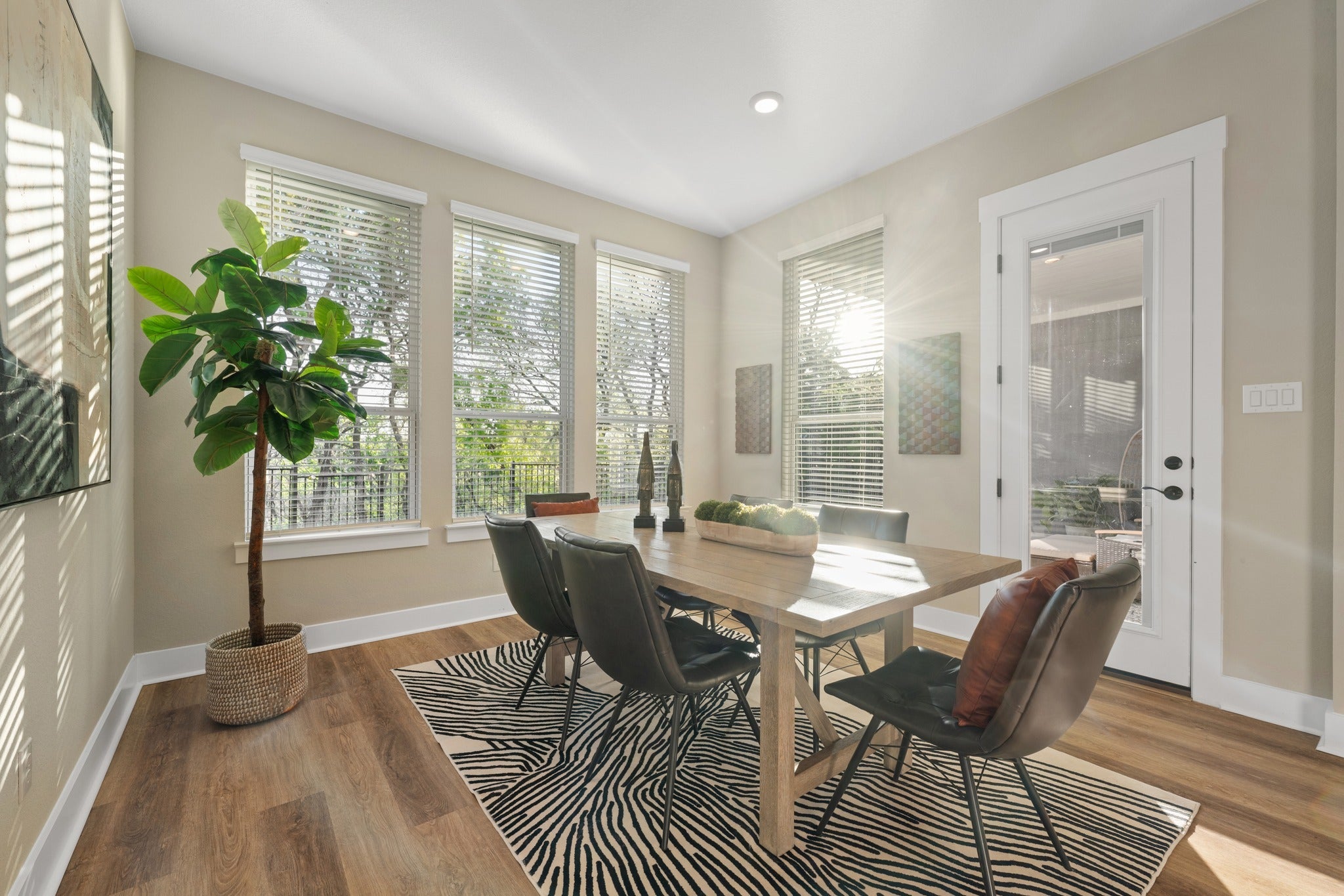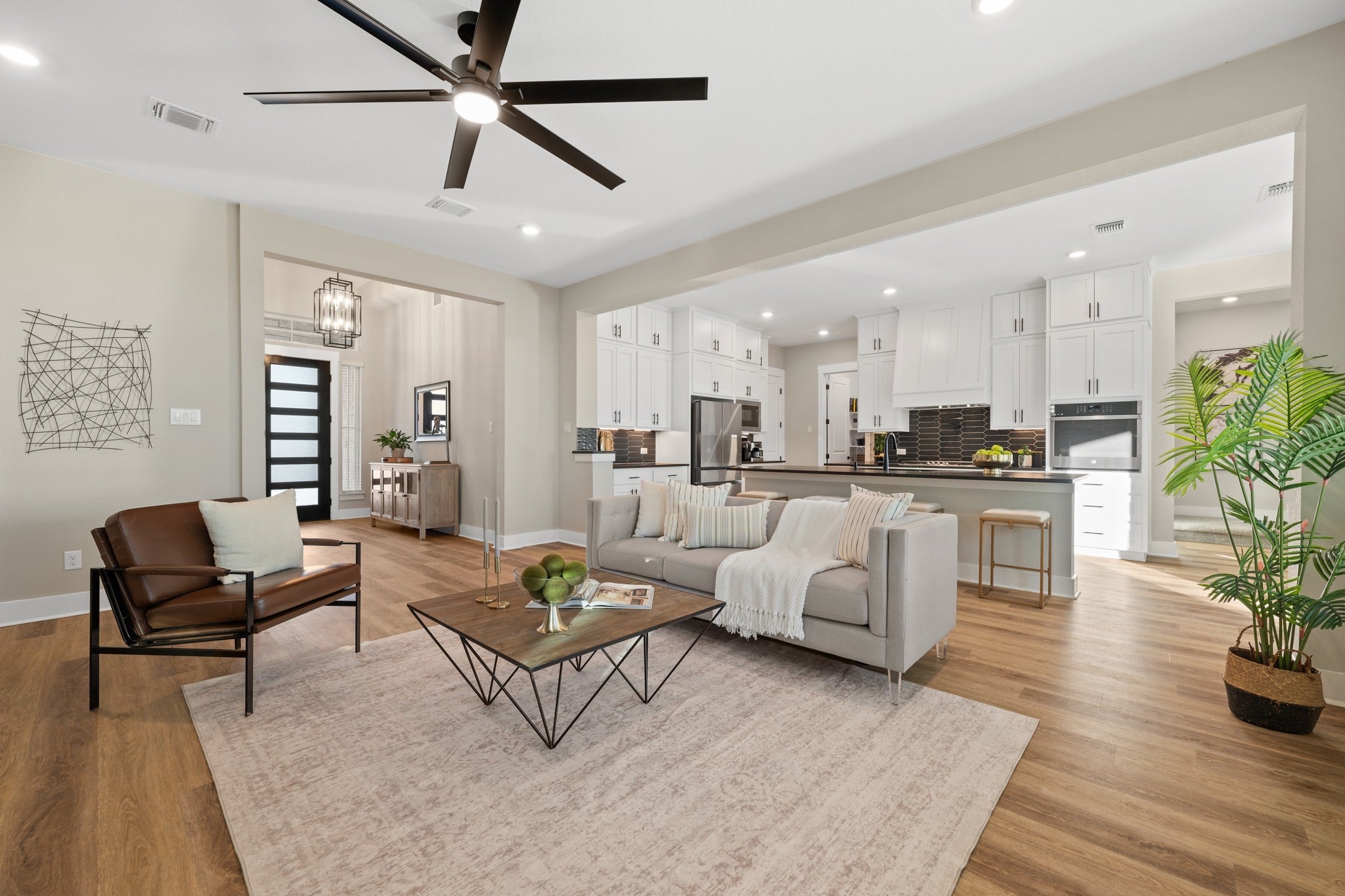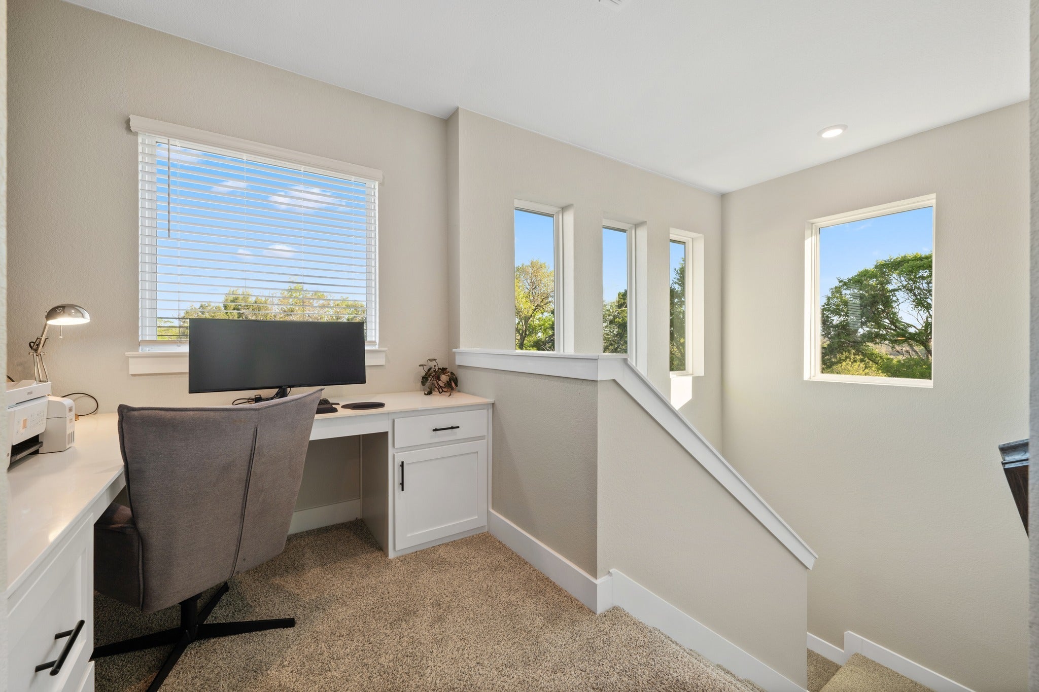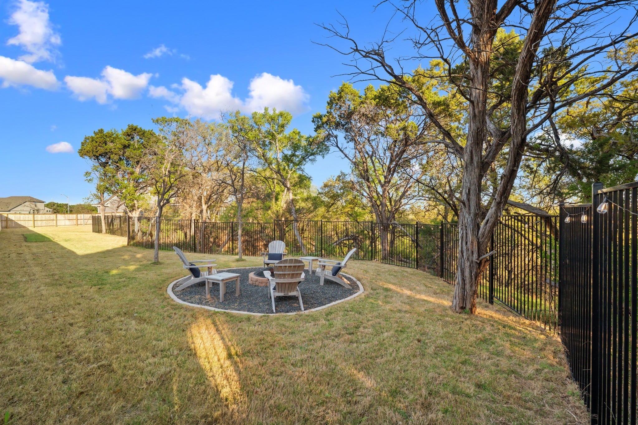 Situated on a private cul-de-sac in the exclusive Woodlands section of Bryson—comprised of only 14 homes—this property offers a level of space and privacy rarely found within a master-planned community. Set on approximately 0.70 acres, the homesite extends beyond the traditional backyard and includes OWNERSHIP of the natural ravine below. Mature trees, preserved green space, and frequent deer sightings create a setting that feels tucked away while still connected to the neighborhood. Built in 2024 by Chesmar Homes, this two-story home has unique features throughout. The southeast-facing orientation allows for consistent natural light throughout the day, plus those cool Summer nights. One of the standout features is the rare half-circle driveway (the ONLY one in Bryson), paired with a 3-car garage. Inside, expansive windows frame treetop views and bring in natural light in every room. The kitchen stands out with black leathered quartz countertops, white cabinetry, a bold backsplash, built in appliances, and an oversized island that opens seamlessly to the living and dining spaces. A dedicated study and upstairs game room provide flexibility for both work and everyday living. The primary suite offers a freestanding soaking tub, walk-in shower, dual vanities, and a spacious walk-in closet. Outdoor living includes a covered patio and second-story balcony overlooking the ravine—ideal for quiet mornings or evenings taking in the views. The backyard offers ample space for customization. Bryson is known for its strong sense of community and well-maintained amenities. Residents enjoy a resort-style pool and splash pad, playground, dog park, fire pit gathering area, miles of private trails, and “The Backyard” amenity center overlooking a stocked catch-and-release pond. Conveniently located near upcoming commercial developments including Costco, Target, and Walmart, along with easy access to Northline, dining, retail, and the CapMetro Rail Station.