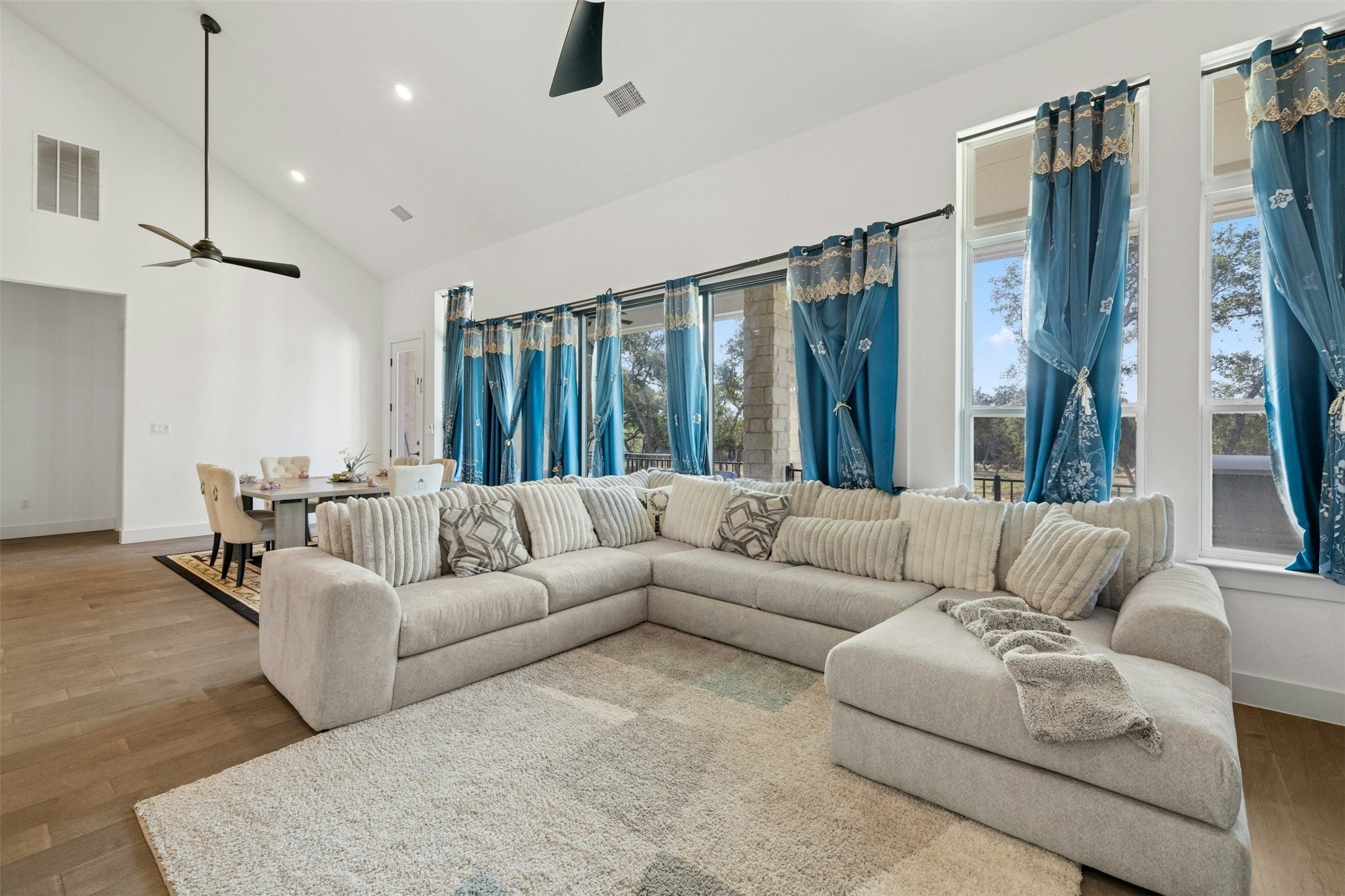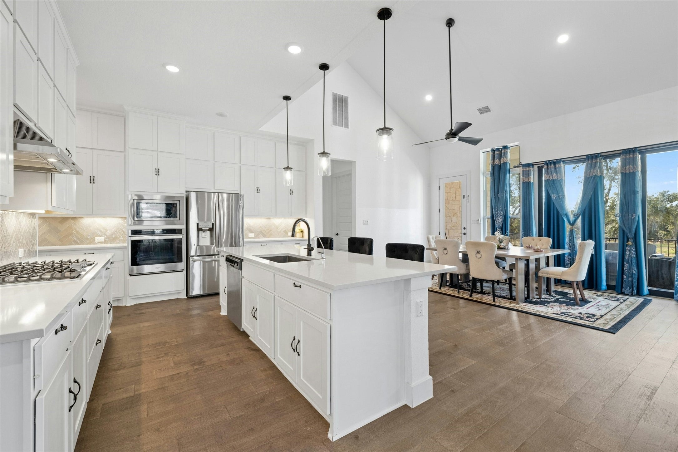 Discover the perfect blend of space, functionality, and style in this 5-bedroom, 4-bathroom home on a desirable corner lot spanning just over an acre in Liberty Hill. Designed for modern living, the open-concept layout features a soaring two-story living area with sliding glass doors that seamlessly connect to the expansive backyard. At the heart of the home, the chef’s kitchen offers generous counter space, a walk-in pantry, and effortless flow into both the casual and formal dining areas. The main level also includes a private guest suite with a full bath, a dedicated study, and a well-appointed primary suite featuring a freestanding tub, a walk-in shower, and a walk-in closet with direct access to the laundry room for added convenience. Upstairs, three additional bedrooms, each with a walk-in closet, share two full bathrooms. A spacious game room overlooks the living area below, creating an open and connected feel throughout. With a three-car garage and a large covered patio, this home is designed for both comfort and entertaining. Zoned to Liberty Hill ISD and set in a serene location, it offers the ideal blend of privacy and convenience.