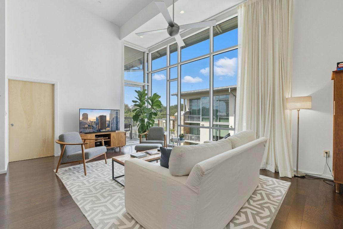 Introducing Residence 6603 at BartonPlace – a stunning penthouse that combines architectural drama with modern living. Soaring 18-foot barrel-arched ceilings and walls of floor-to-ceiling glass create a light-filled central living space, blending style and comfort in a bright, inviting space. The primary suite is a cozy retreat, featuring a rare personal terrace and a luxurious bath with walk-in shower and soaking tub. A versatile guest bedroom doubles beautifully as a home office, offering flexibility for today’s lifestyle. Ideal location features few neighboring residences and easy access to the rooftop terrace, offering over 1,000 SF of outdoor living. Premium parking and garage storage further elevate the convenience and quality of this remarkable residence. BartonPlace blends modern luxury with everyday convenience and a vibrant, outdoor-focused lifestyle, earning its reputation as one of Austin’s most desirable condo communities. Residents enjoy access to exceptional amenities, including a heated saltwater pool with lounging and grilling areas, four rooftop terraces with BBQ stations, beautifully landscaped outdoor spaces, a community garden, and an Owner’s lounge with a kitchenette. Additional features include a private guest suite for overnight visitors, a well-equipped fitness room, a dedicated dog run, and 24-hour concierge service within a secure, gated setting.