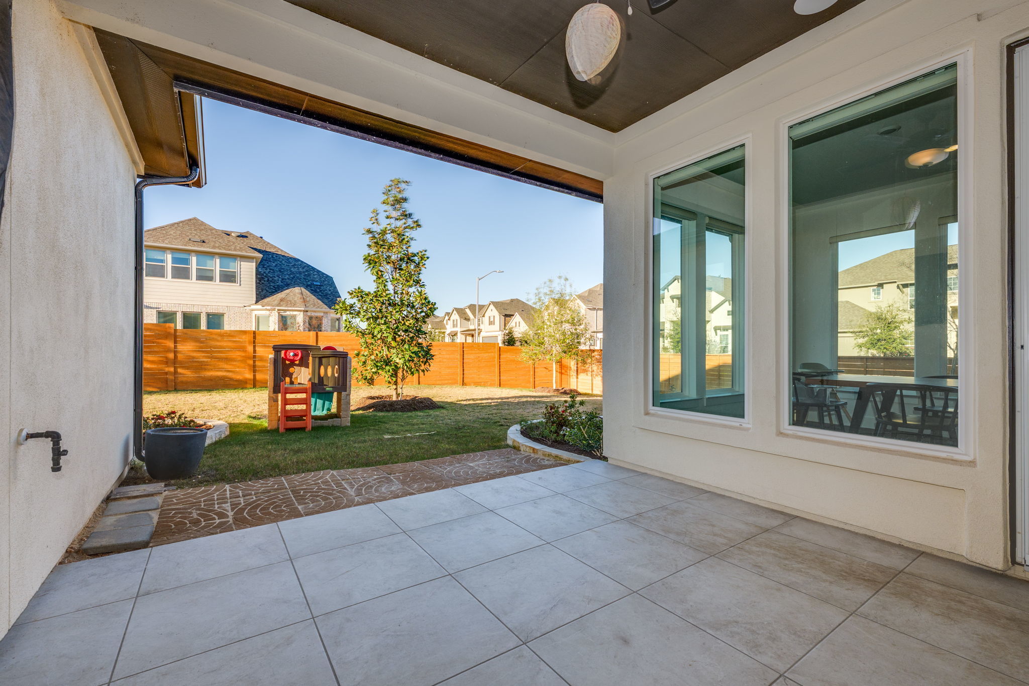 - No Exterior Steps, Private Yard, Rain Gutters