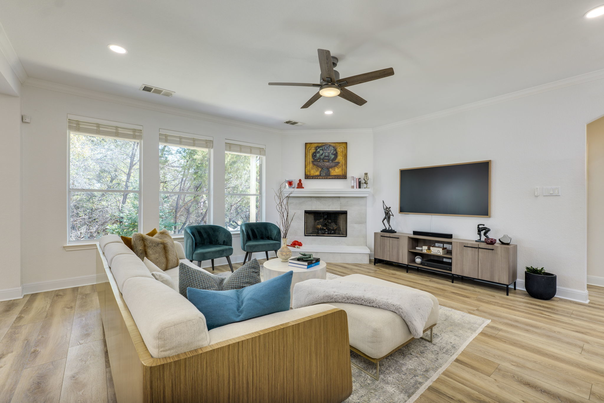 Tucked against a peaceful greenbelt in the heart of Steiner Ranch, 12200 Capitol Saddlery Trail offers the kind of privacy and serenity that’s hard to find — and even harder to leave. From the moment you step inside, natural light pours through expansive windows, drawing your eye to the lush green backdrop beyond. Thoughtfully updated throughout, this 4-bedroom, 3 full and 1 half bath home blends modern comfort with timeless warmth. The main level lives beautifully, with a spacious primary suite offering a quiet retreat at the end of the day. The open-concept living and kitchen spaces are designed for connection — morning coffee with views of the trees, effortless entertaining, and relaxed evenings at home. Upstairs, three additional bedrooms provide room to grow, host, or create the perfect work-from-home setup. Every space feels intentional and inviting. Step outside to your private backyard oasis backing directly to the greenbelt — no rear neighbors, just nature. Whether it’s grilling on a summer evening or unwinding under the Texas sky, this home delivers the lifestyle Steiner Ranch is known for. Located within highly acclaimed Leander ISD and just minutes from parks, pools, trails, and Lake Austin access, this is Northwest Austin living at its finest.