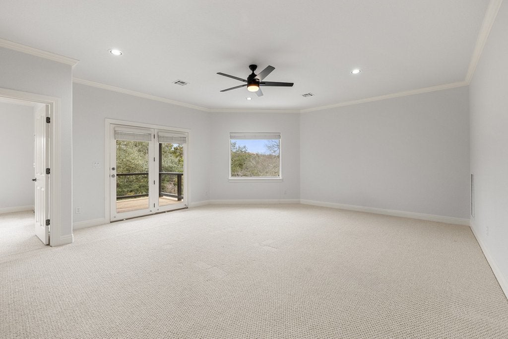 See the Feature List! Welcome to the Foothills of Barton Creek, a gated pocket neighborhood minutes from 3 Barton Creek golf courses, Omni Barton Creek resort, & exemplary private schools. 5 Bedrooms, 5 Bathrooms with 4587 SF (mostly downstairs) on an acre lot. The house is set back from the street with a driveway that leads to a 3-car garage with an added parking circle. Over $40K was spent on landscape improvements. A 2025 pool was added with fountains & an inline cleaning system (no unsightly Polaris). The fully fenced large backyard has plenty of room for people & pets with a rear native section. Step inside through the double front door & a wall of windows are visible from the living room. No neighboring houses are visible from the back windows, just the pool & trees, feel free to keep the motorized shades open. The kitchen nearby has an adjoining dining room with another gas log fireplace & more windows with views of treetops. The kitchen is inviting with a center island as well as separate counter seating on a Quartz waterfall counter. Thermador appliances & herringbone marble backsplash are nice touches. Near the kitchen is a wet bar with copper sink that leads to a barn door enclosing the office. The office has a second hidden door off the entry foyer which appears to be an art wall. This room with hardwood floors could also multi-purpose as a formal dining room. The primary suite is downstairs, along with 2 additional bedrooms. One bedroom has an ensuite bathroom while the other bedroom could be used as another living room/TV room. The primary bedroom is sizable with tray ceilings & many bright windows. The primary bathroom has a dual-head shower as well as a soaking tub with a closet that seems to never end. Upstairs are 2 more bedrooms with ensuite baths, and a game room/living room with an adjoining balcony. This home offers many flexible multi-use spaces that allow you to customize your living experience.